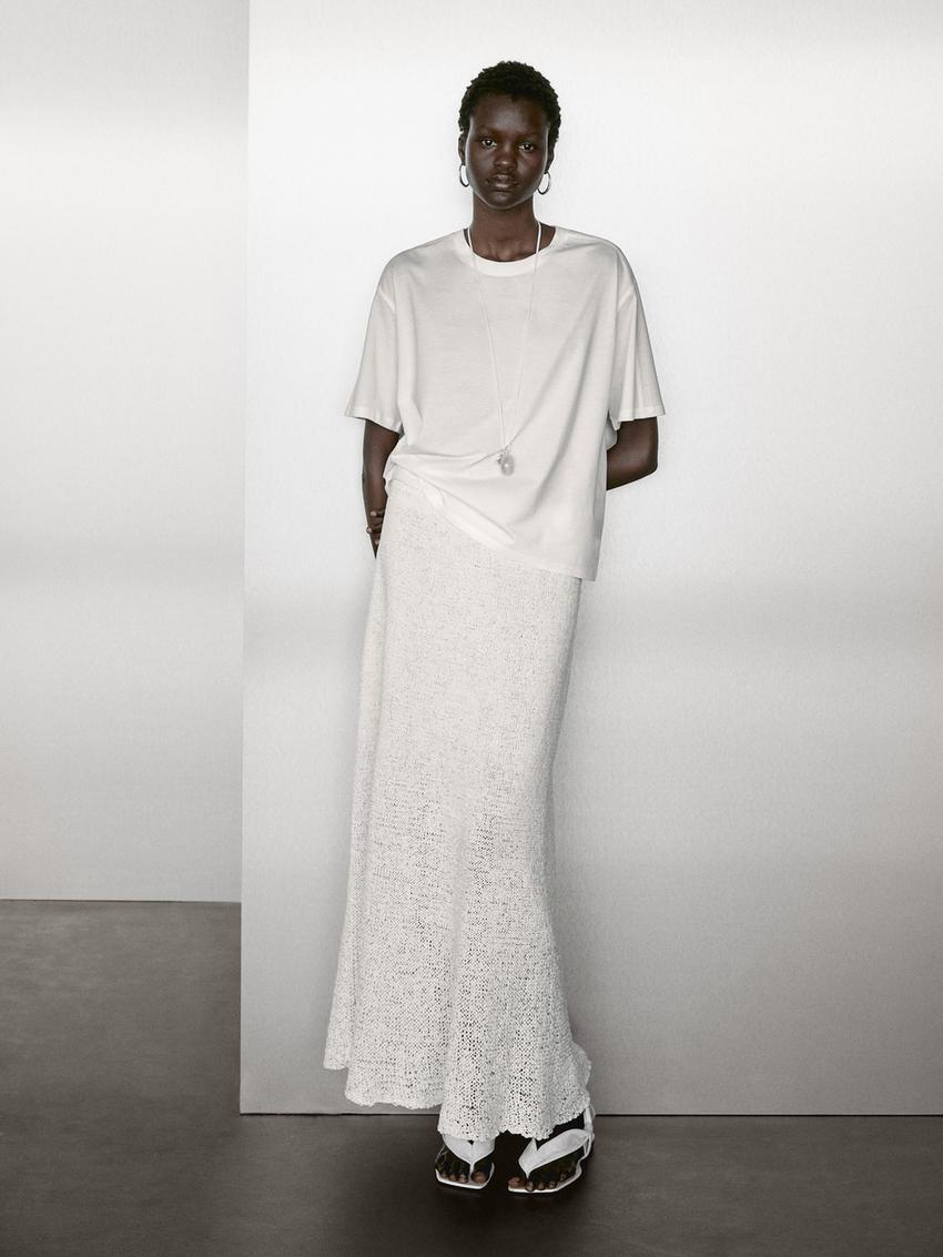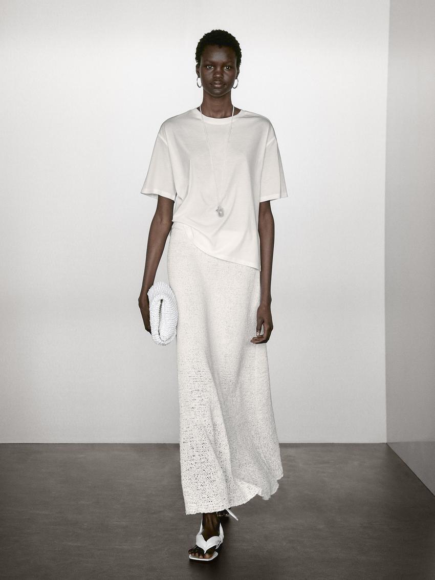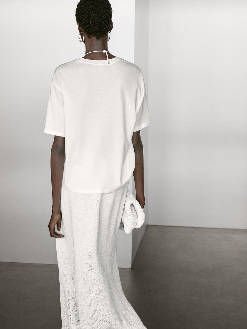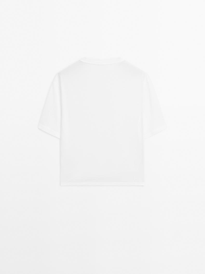 Massimo Dutti Футболка с декоративными швами на рукаве, белый