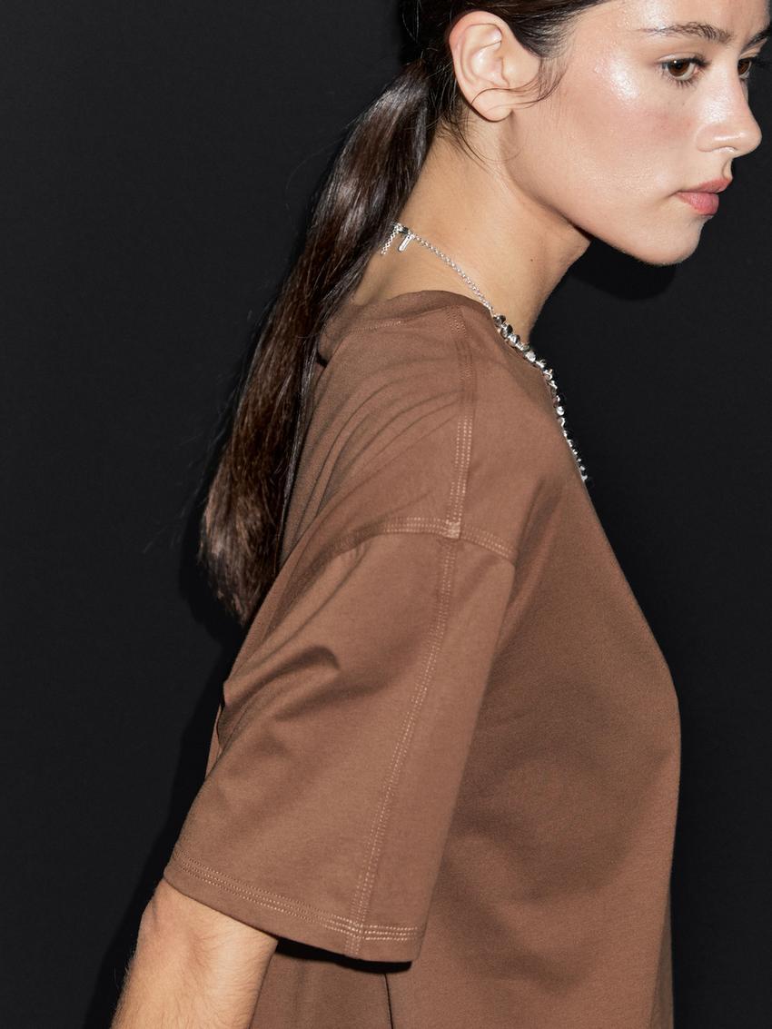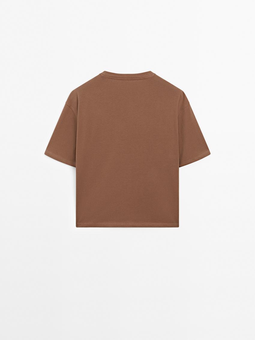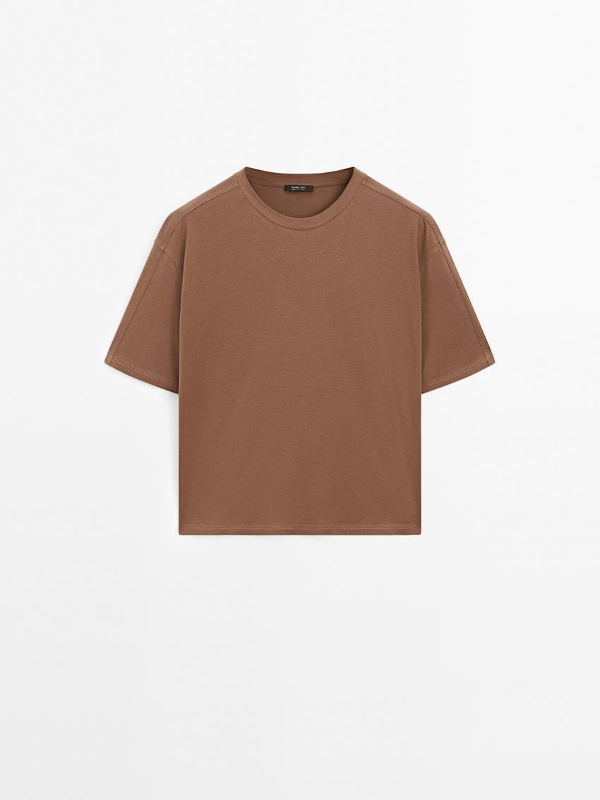 Massimo Dutti Футболка с декоративными швами на рукаве, коричневый