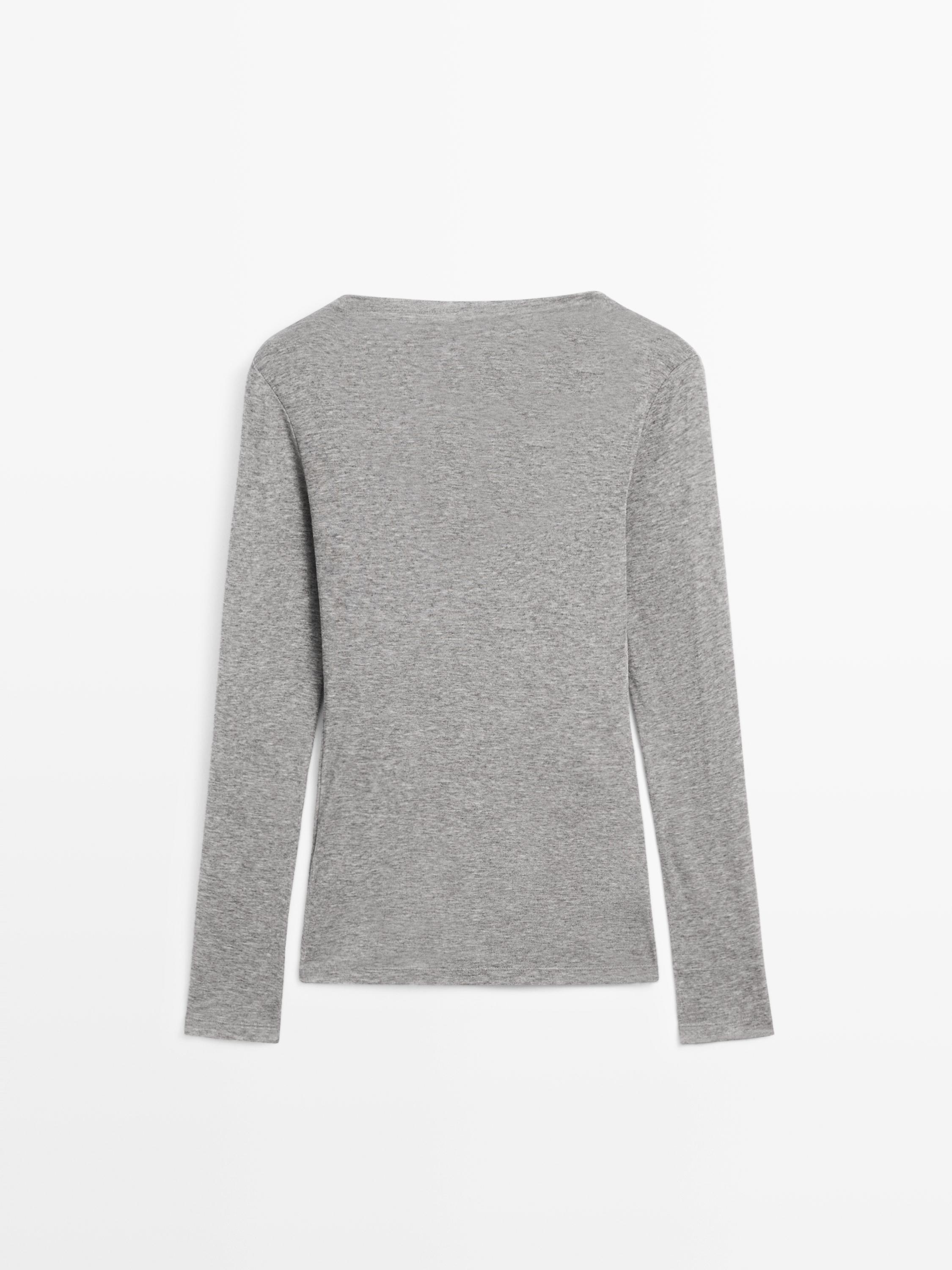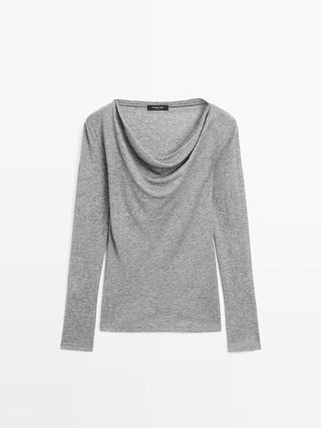 Massimo Dutti Футболка с длинными рукавами и драпированным вырезом, норка