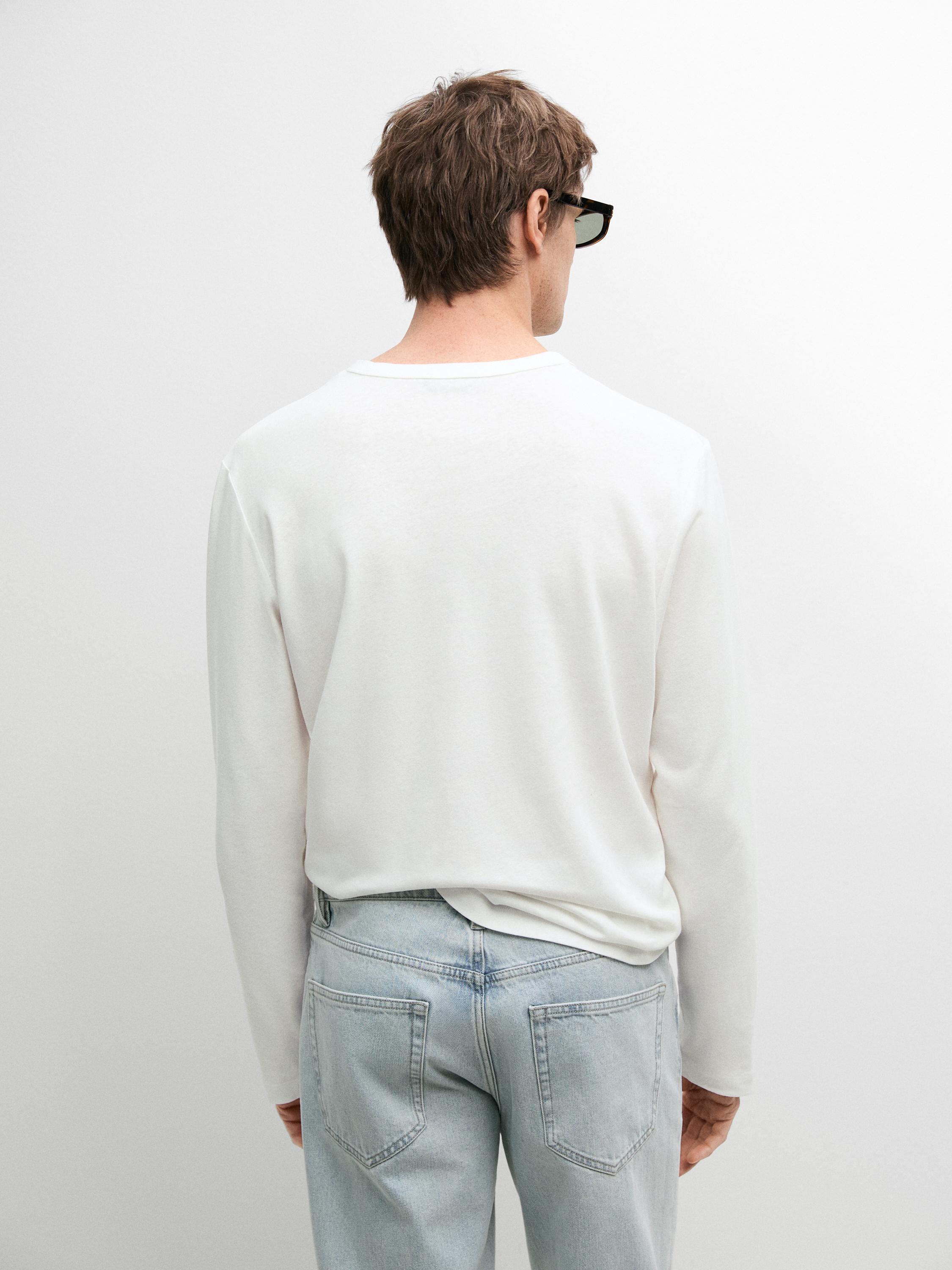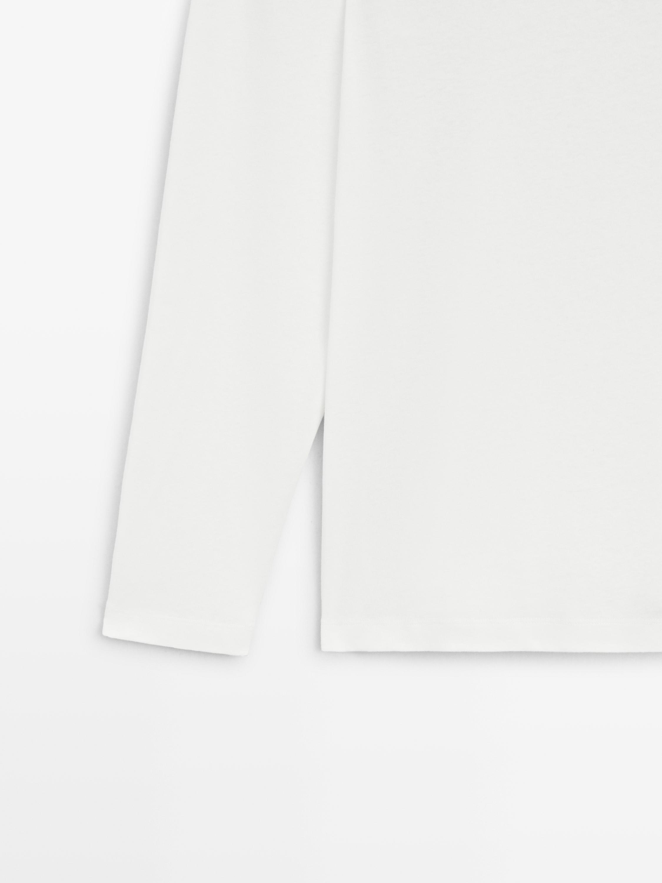 Massimo Dutti Футболка с длинными рукавами и воротником-стойкой, белый