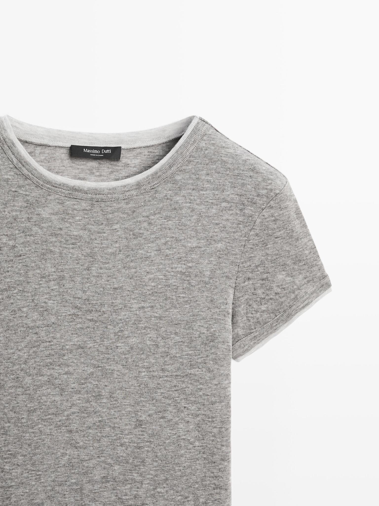 Massimo Dutti Футболка с двойной окантовкой, серый