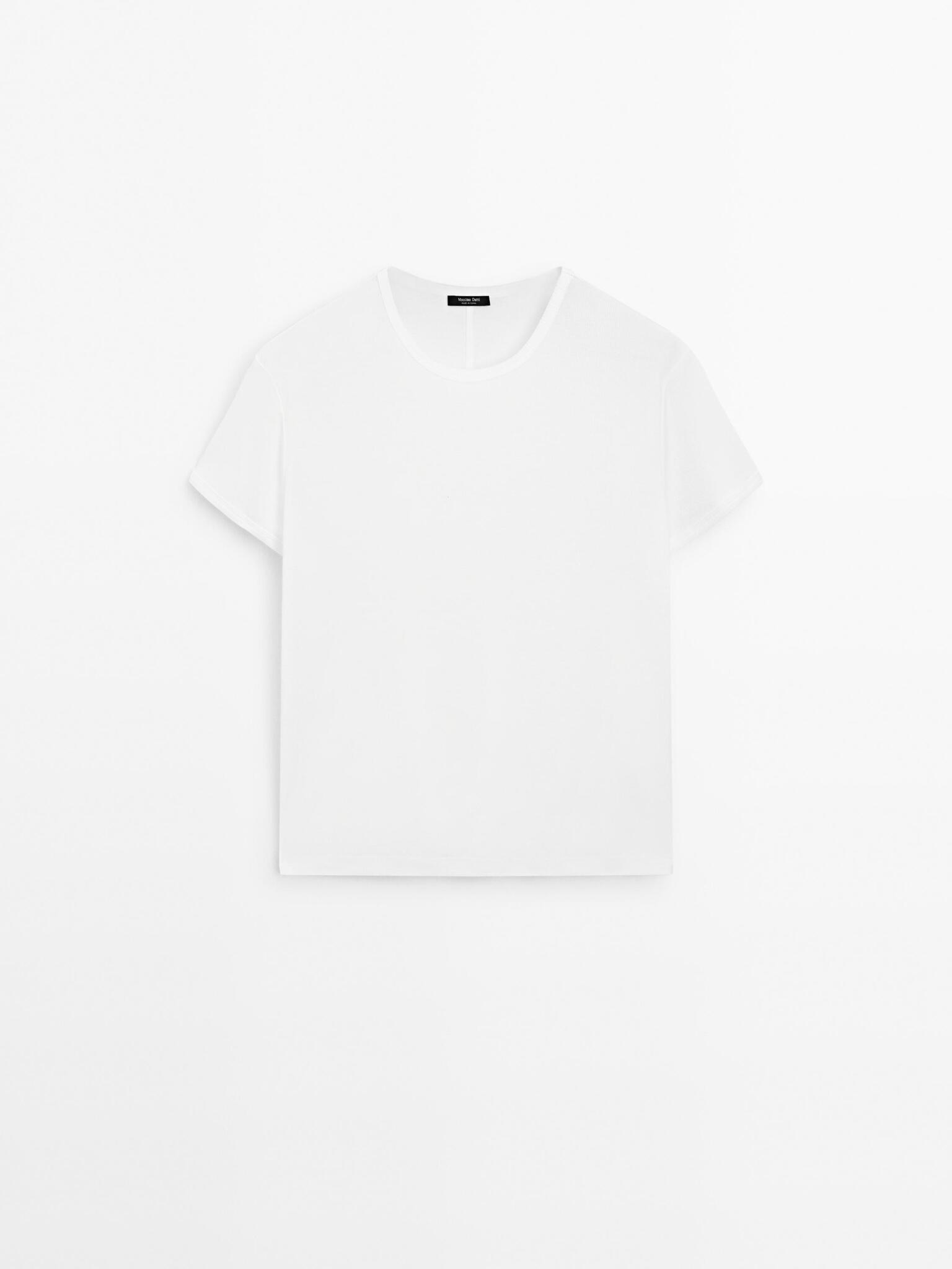 Massimo Dutti Футболка с коротким рукавом из 100% хлопка, белый