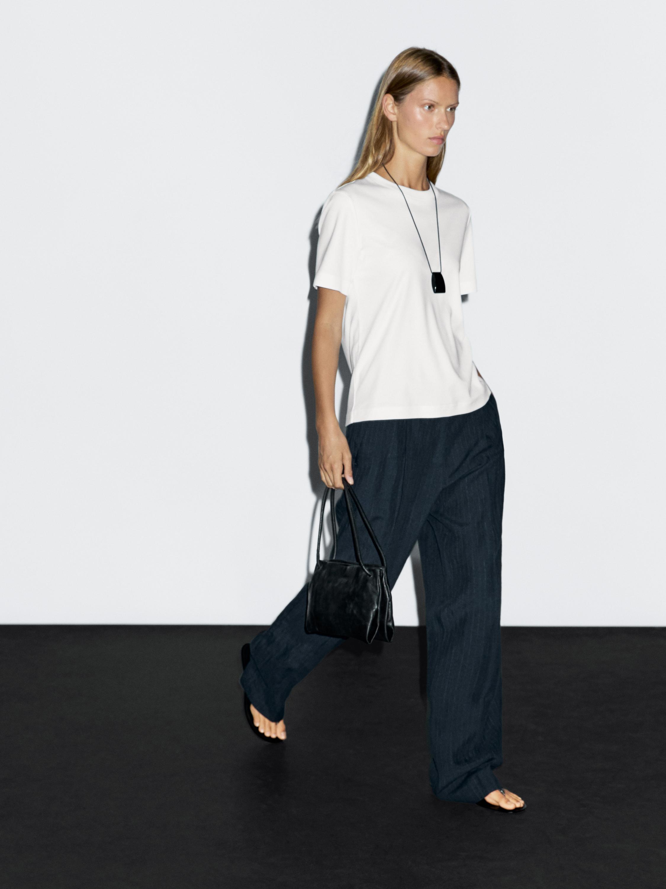 Massimo Dutti Футболка с коротким рукавом из 100% хлопка, белый