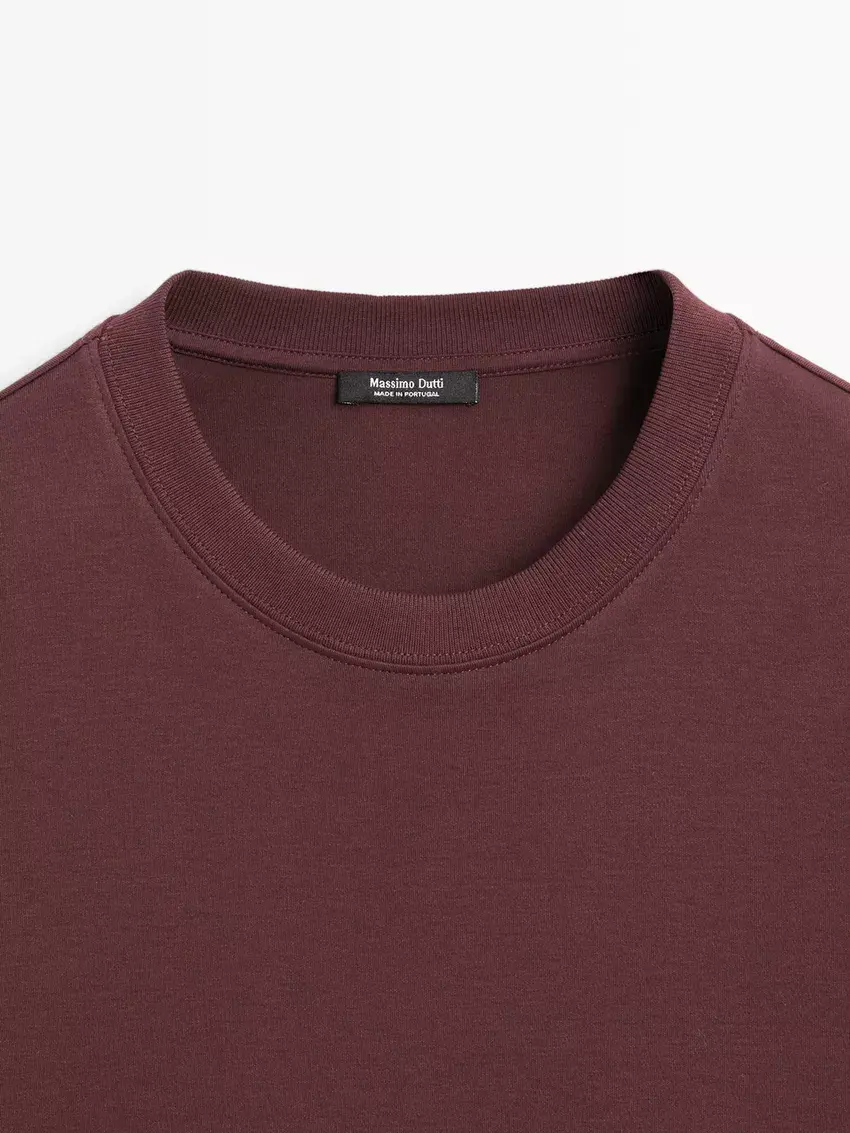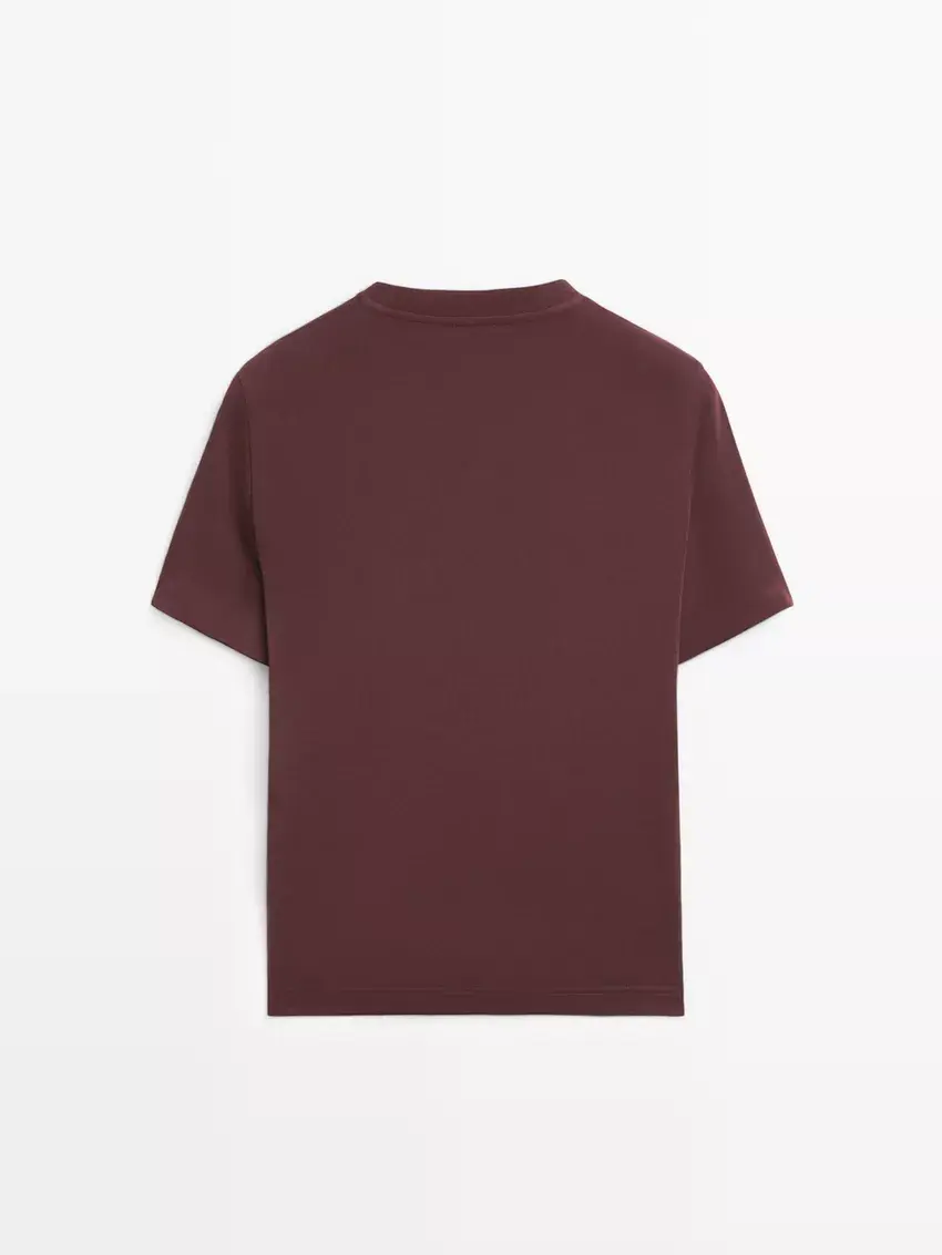 Massimo Dutti Футболка с коротким рукавом из 100% хлопка, бургунди