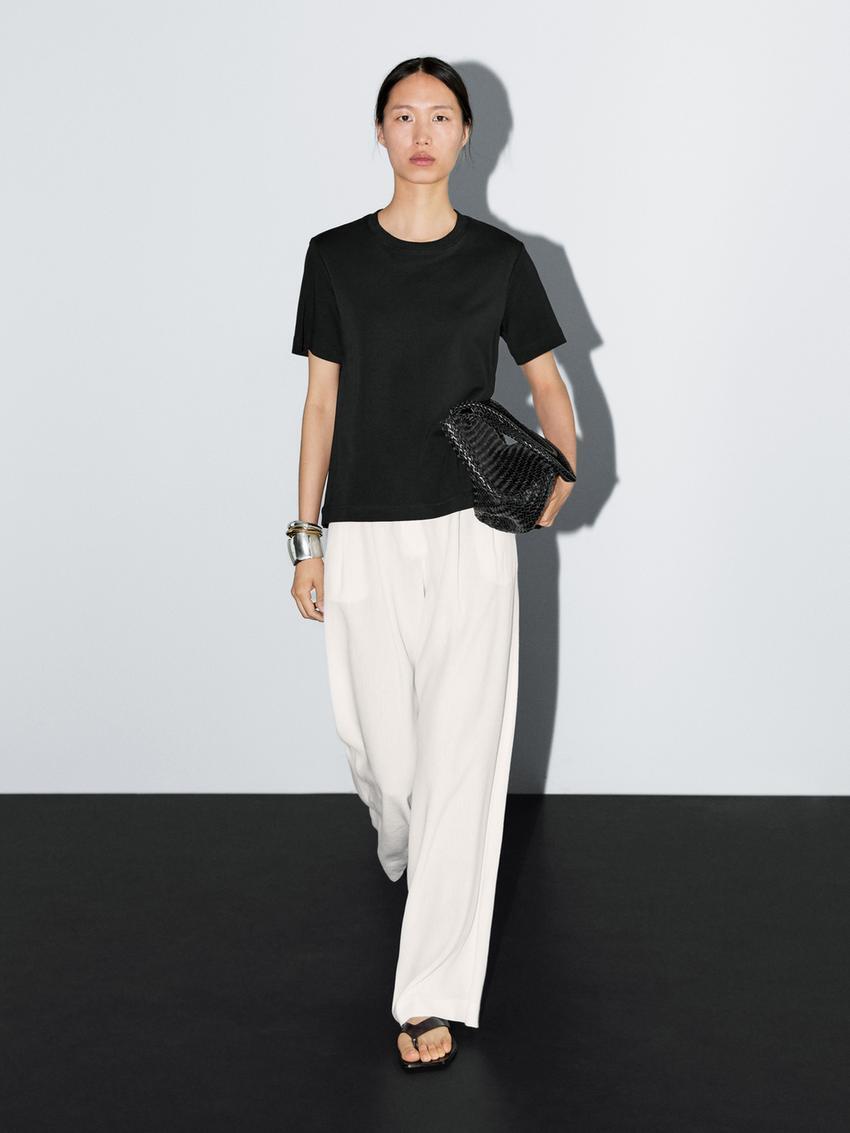Massimo Dutti Футболка с коротким рукавом из 100% хлопка, черный