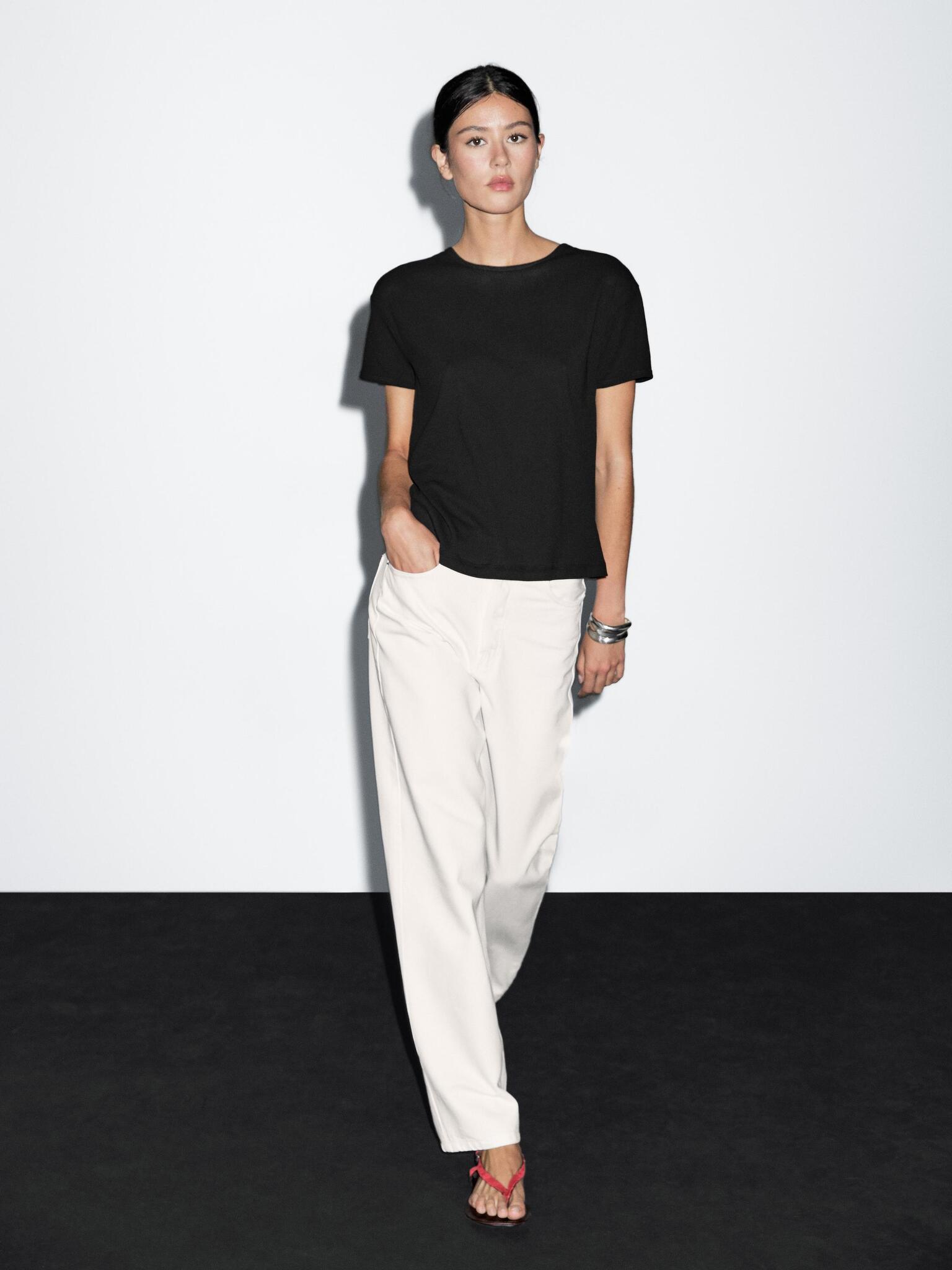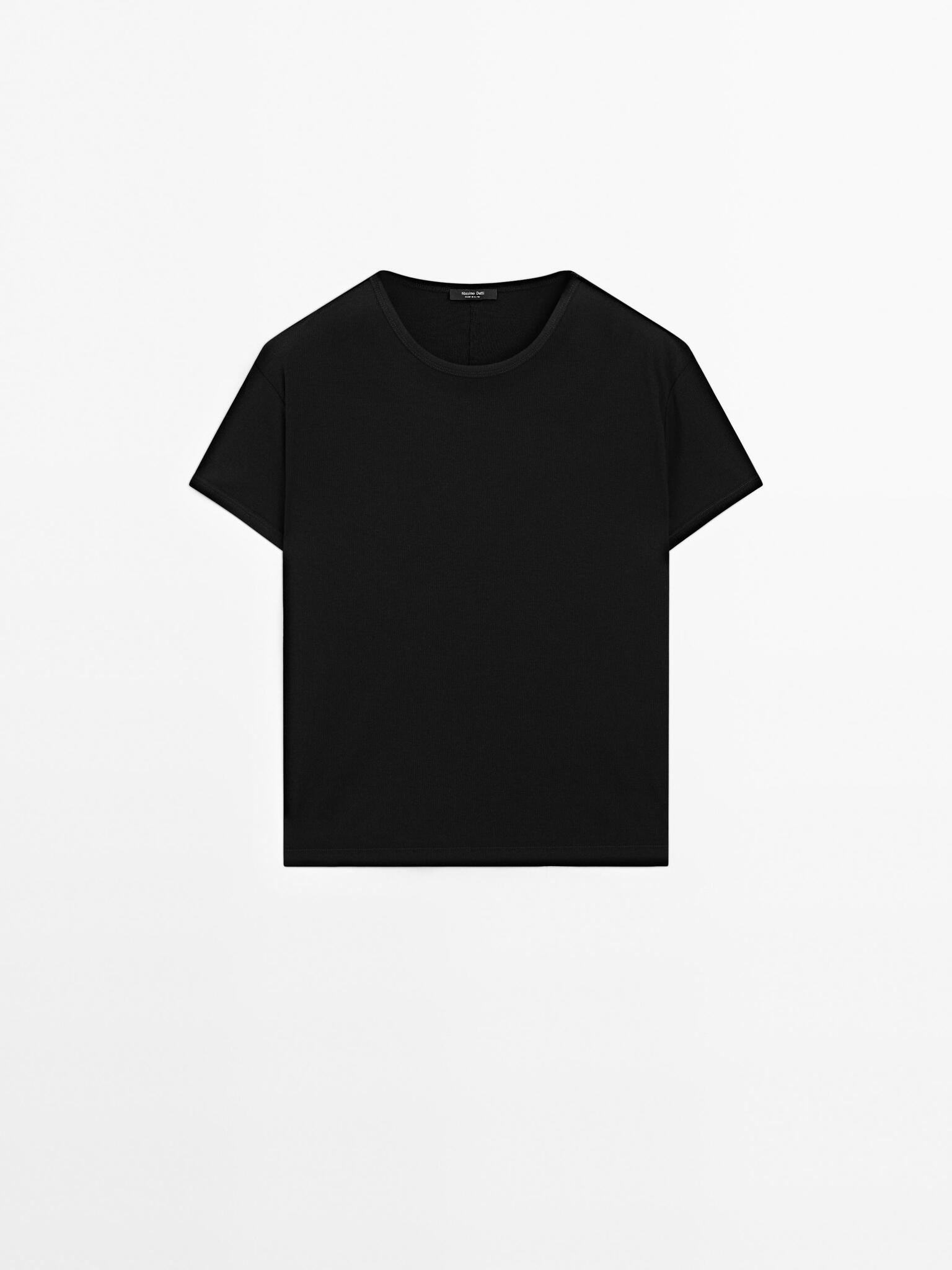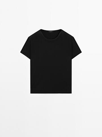 Massimo Dutti Футболка с коротким рукавом из 100% хлопка, черный