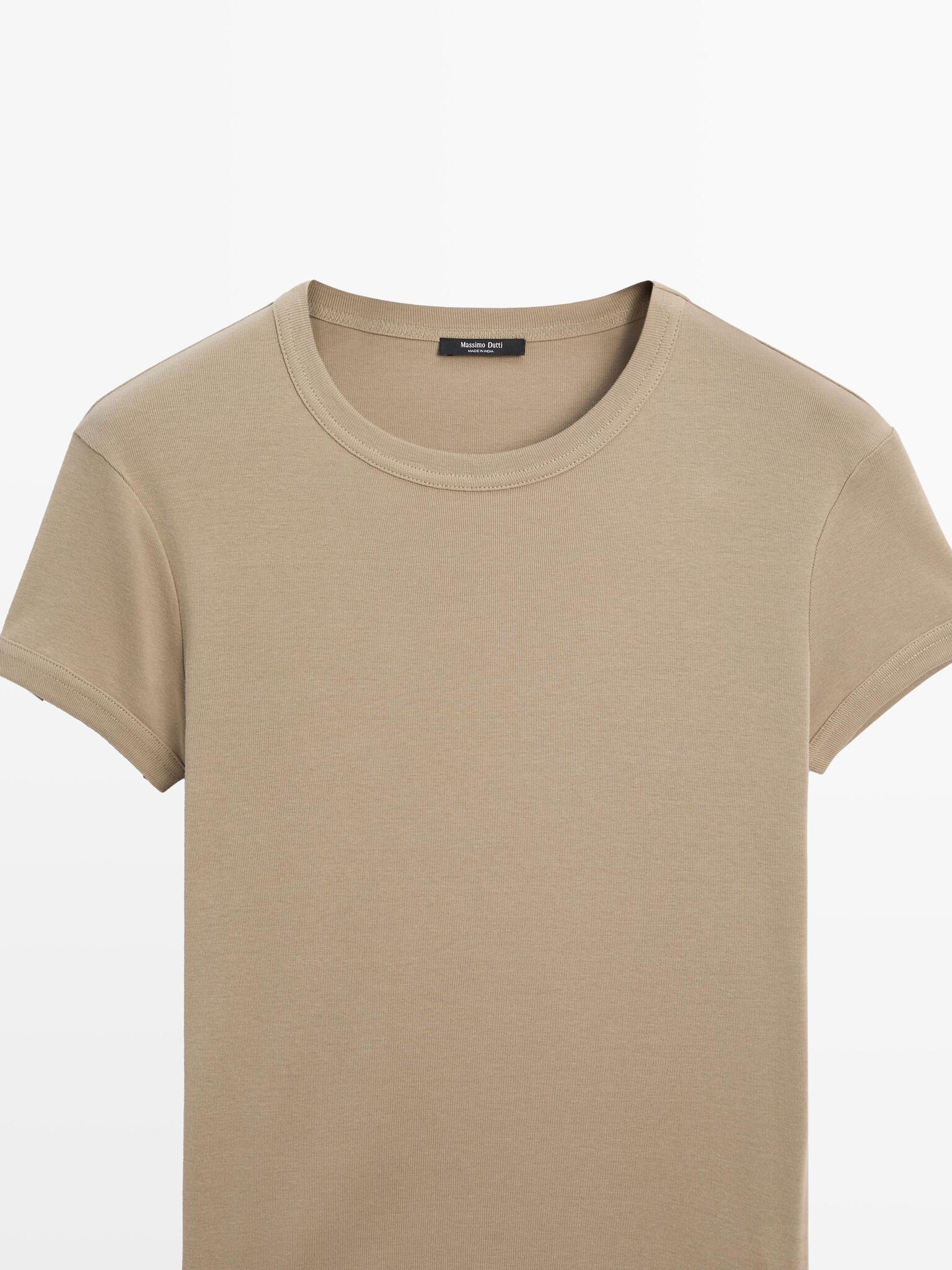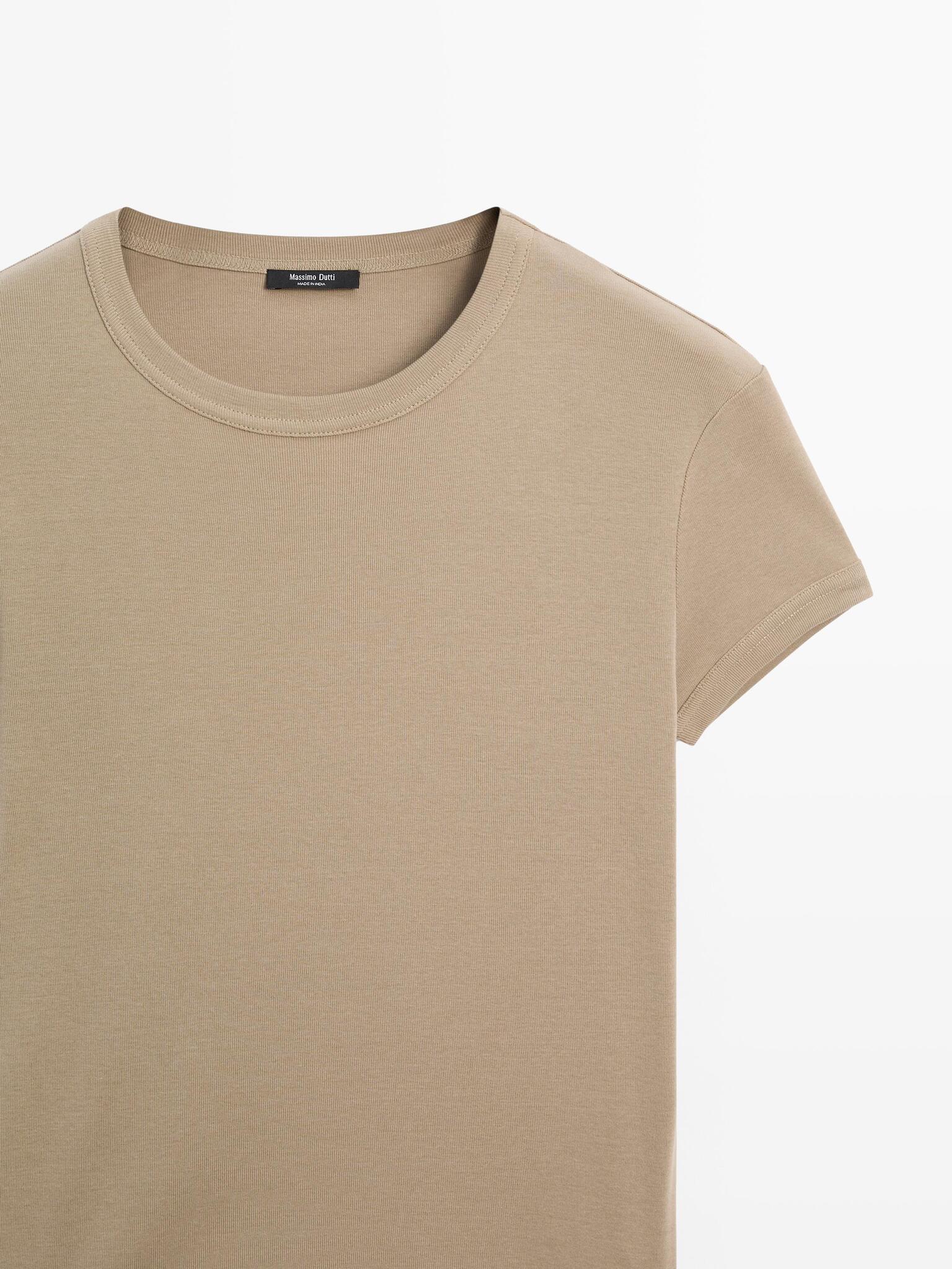 Massimo Dutti Футболка с коротким рукавом из 100% хлопка, дымчатый