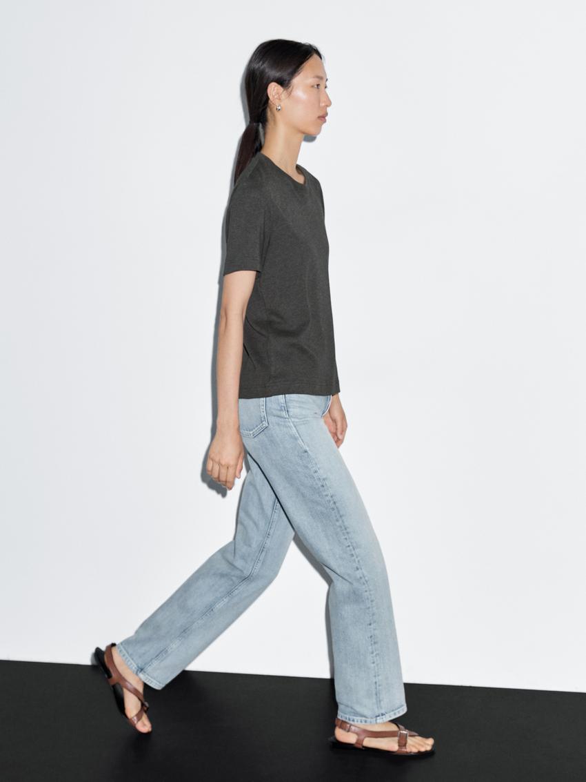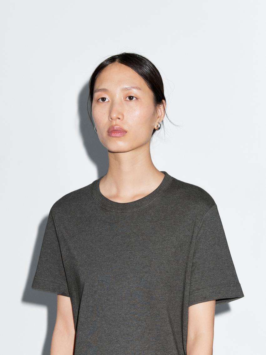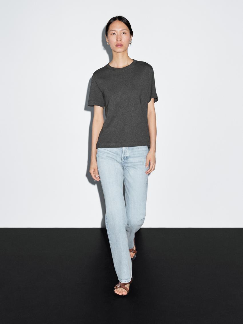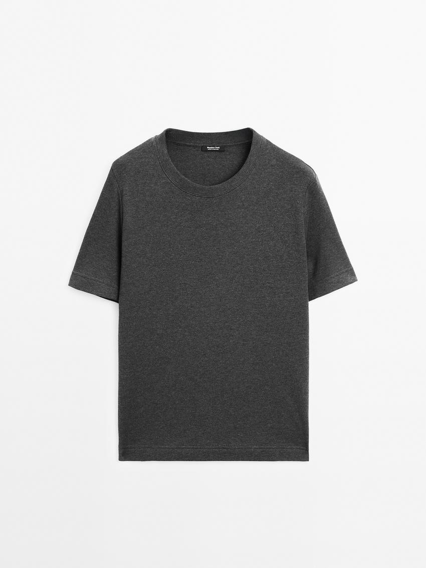 Massimo Dutti Футболка с коротким рукавом из 100% хлопка, серый