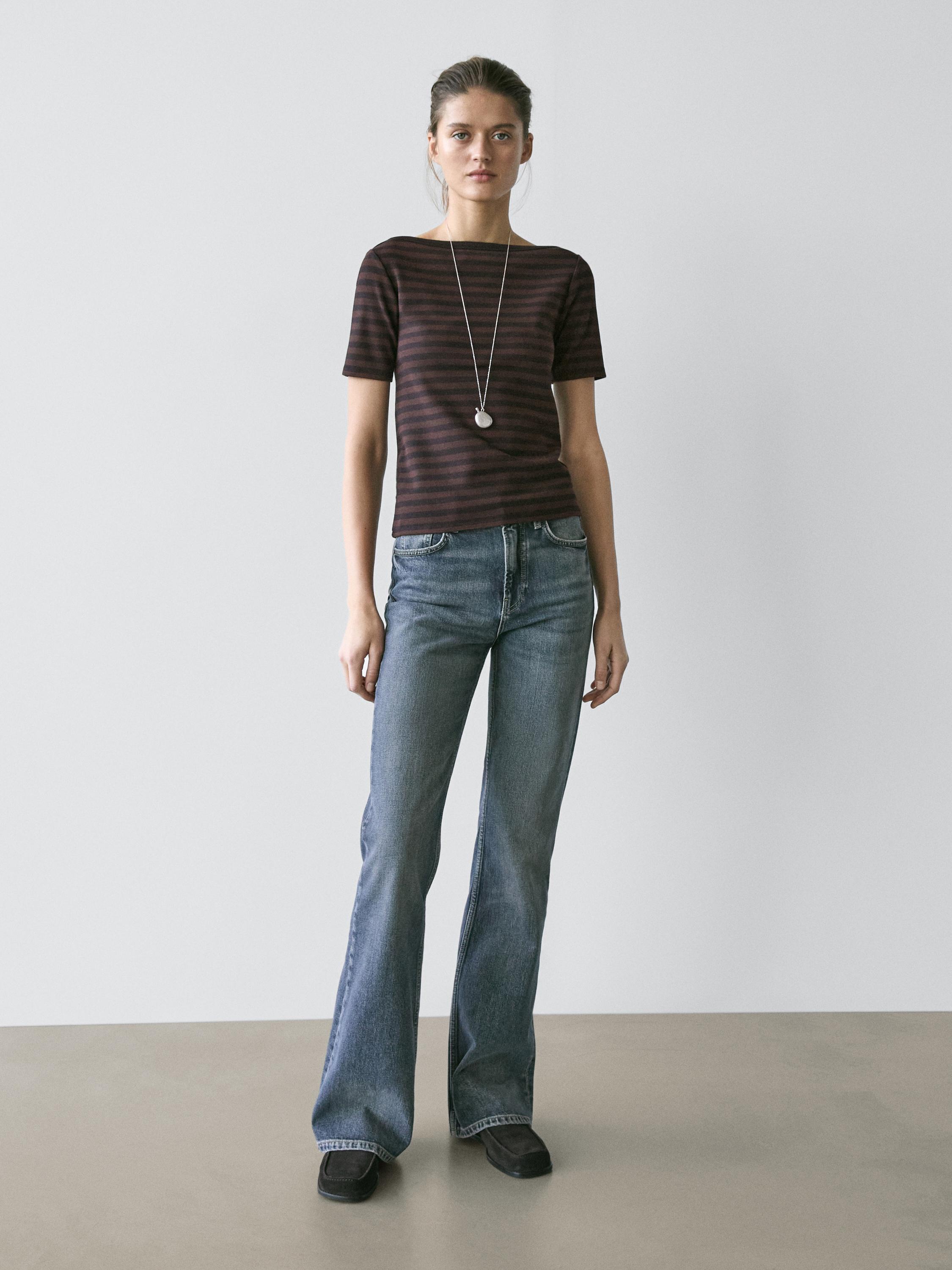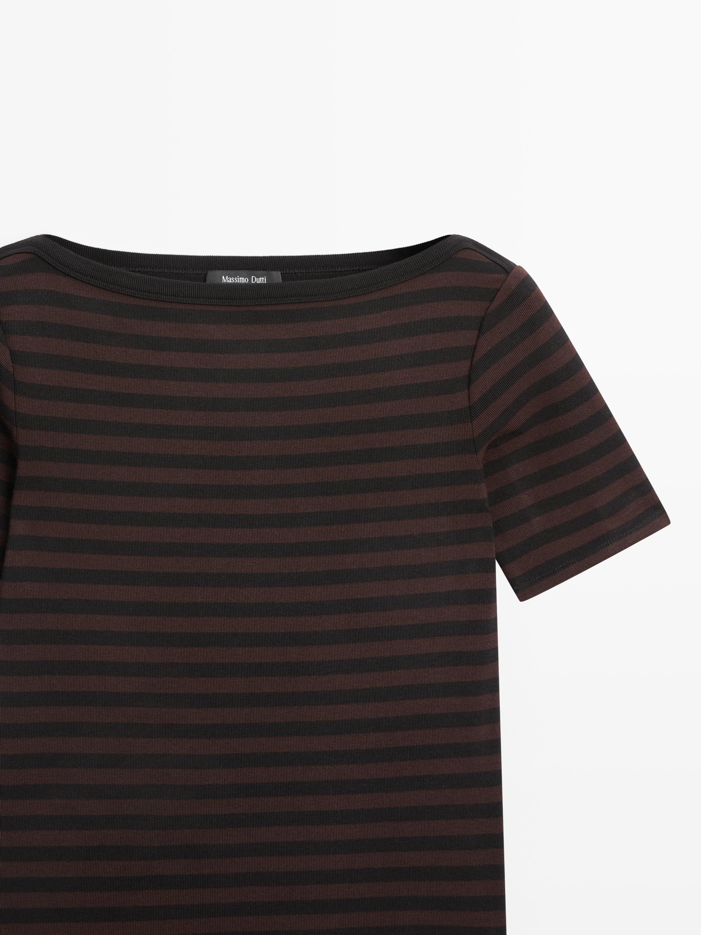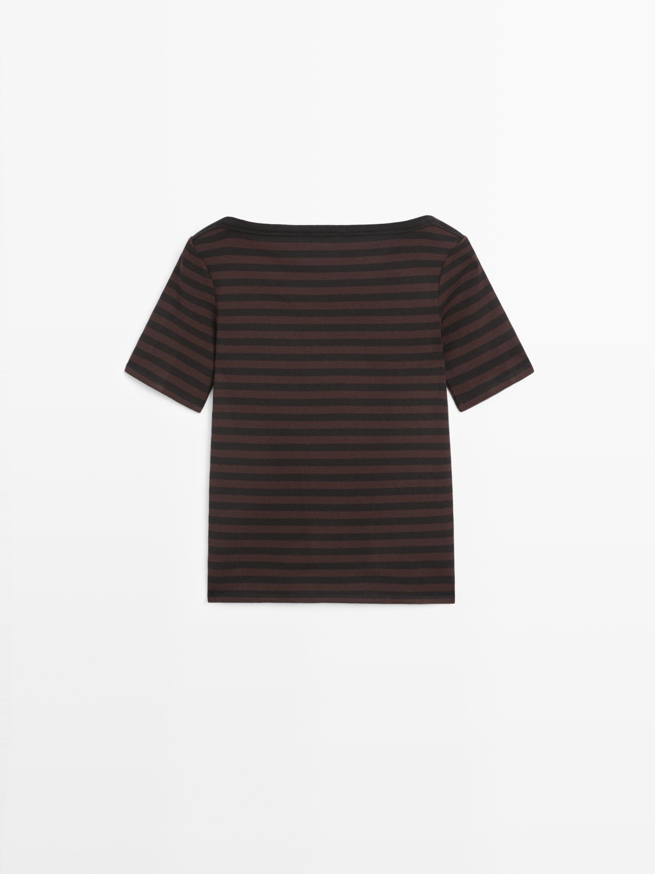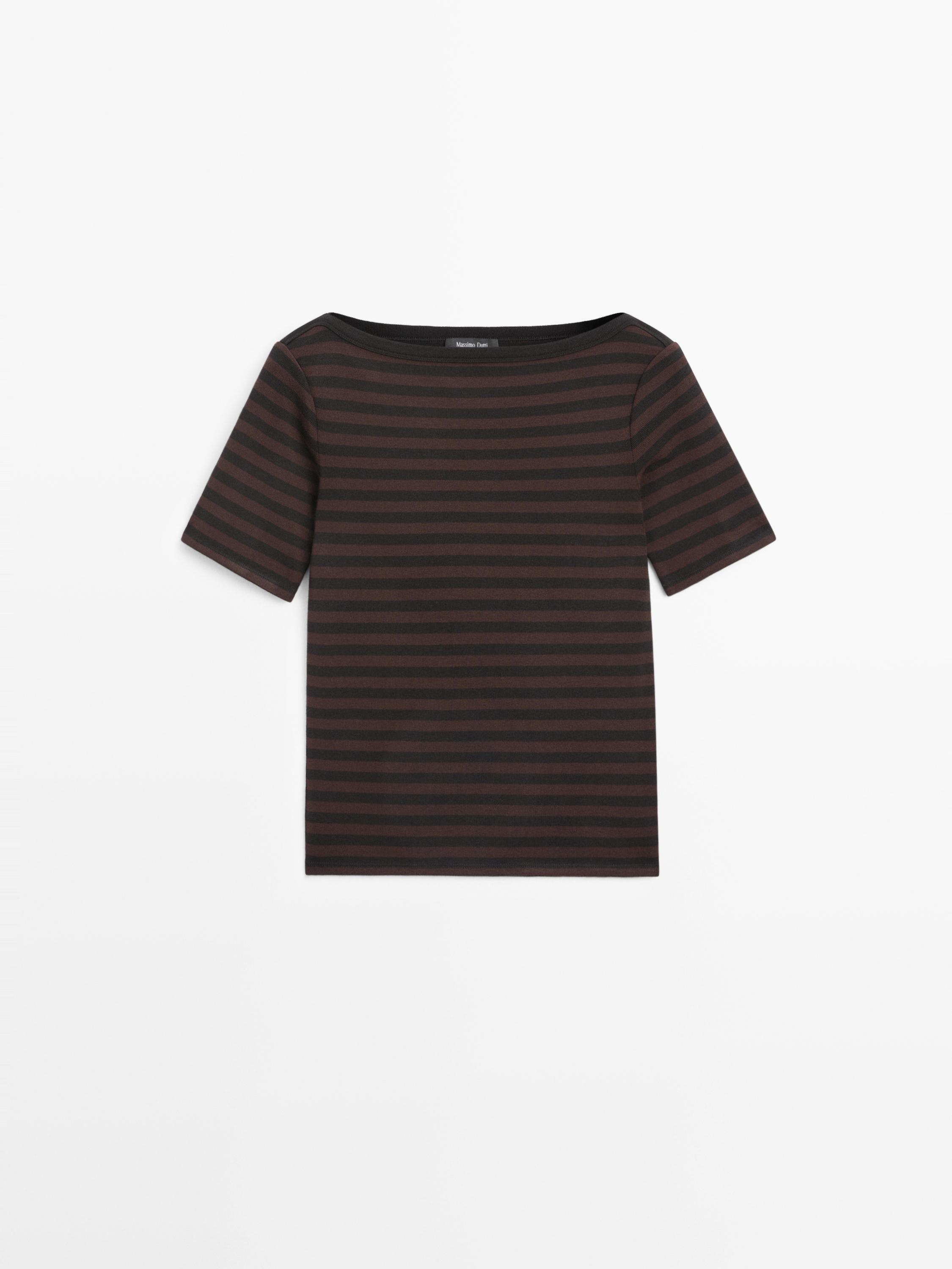 Massimo Dutti Футболка с короткими рукавами и широким вырезом, коричневый