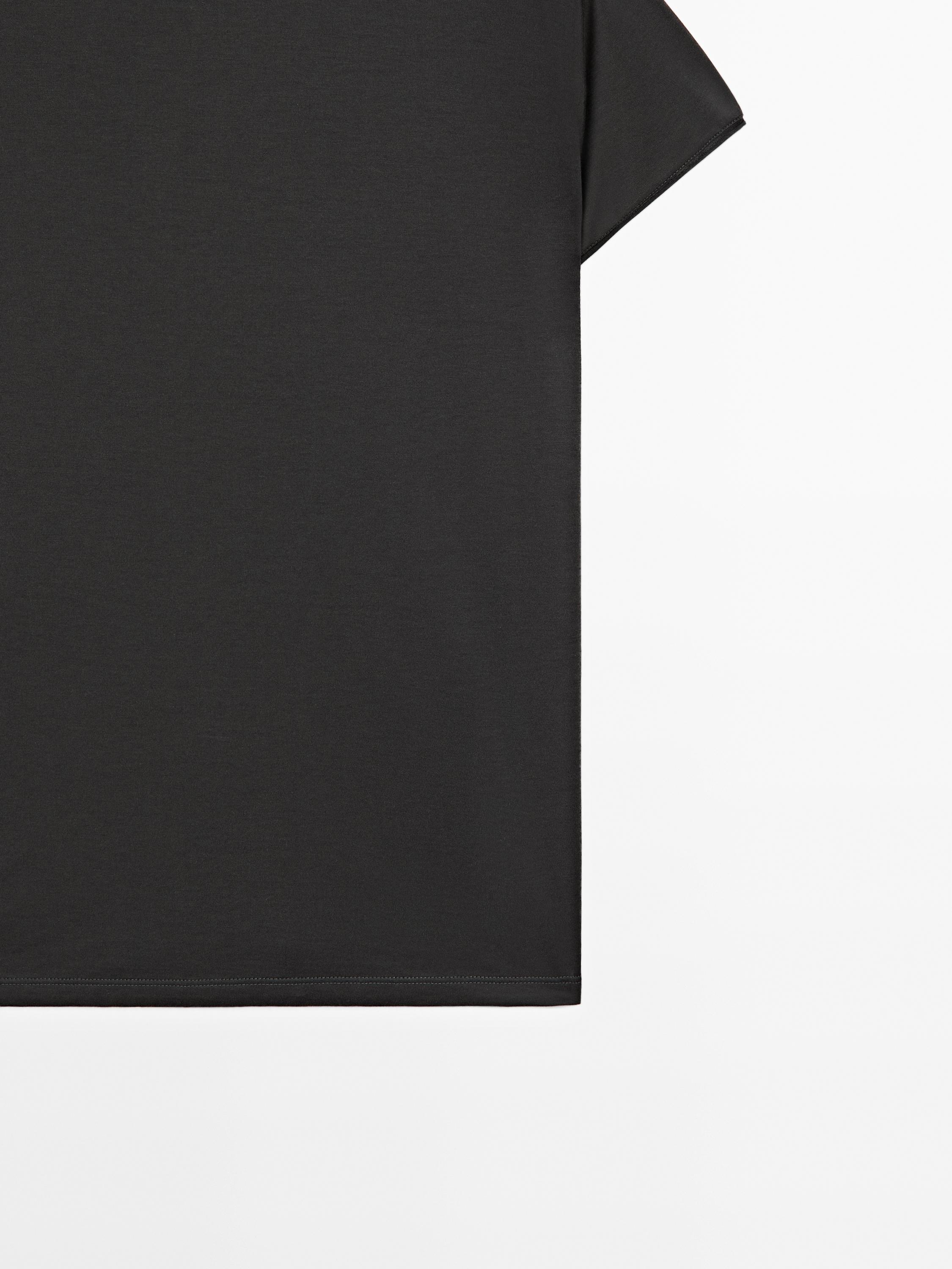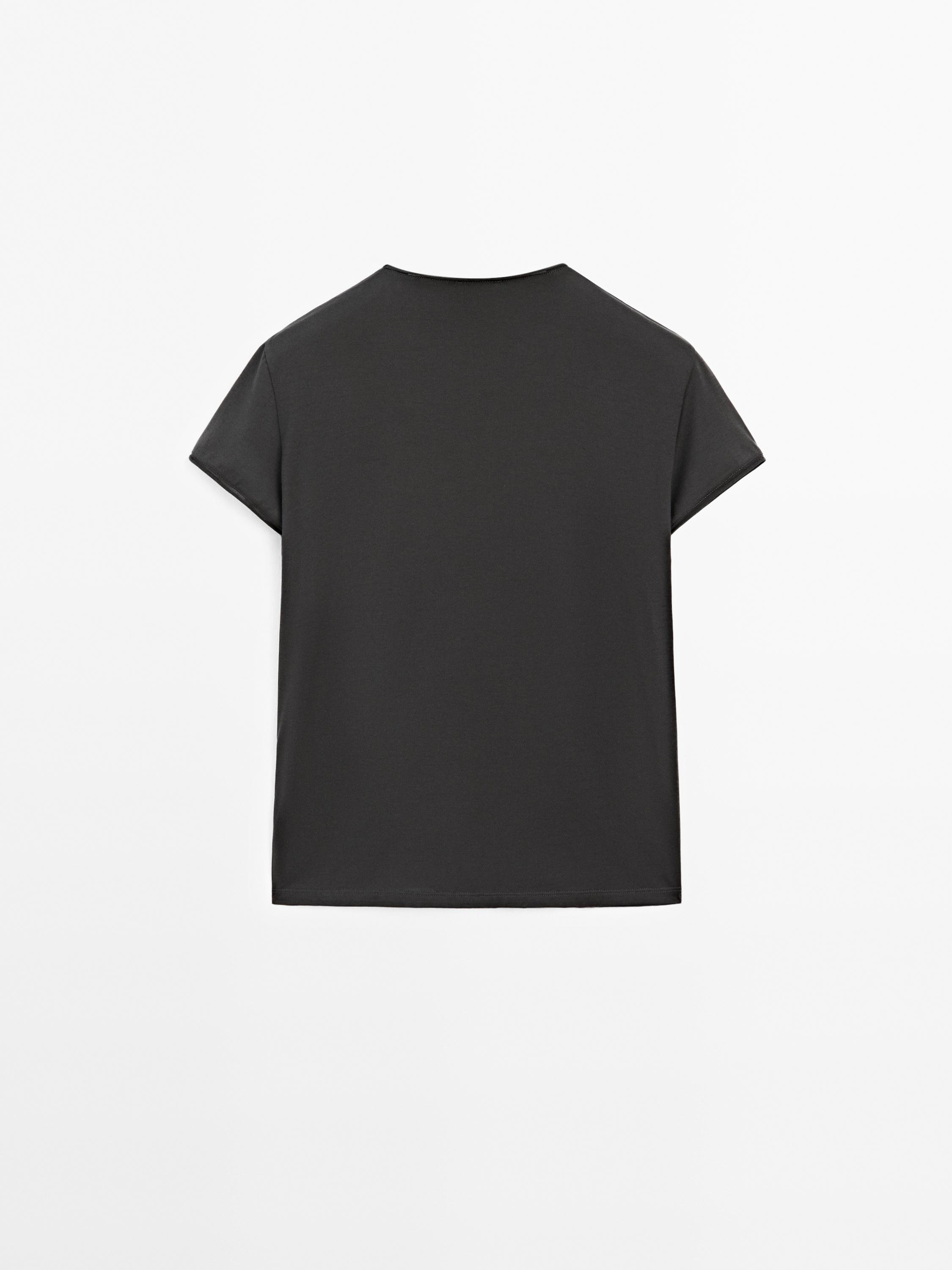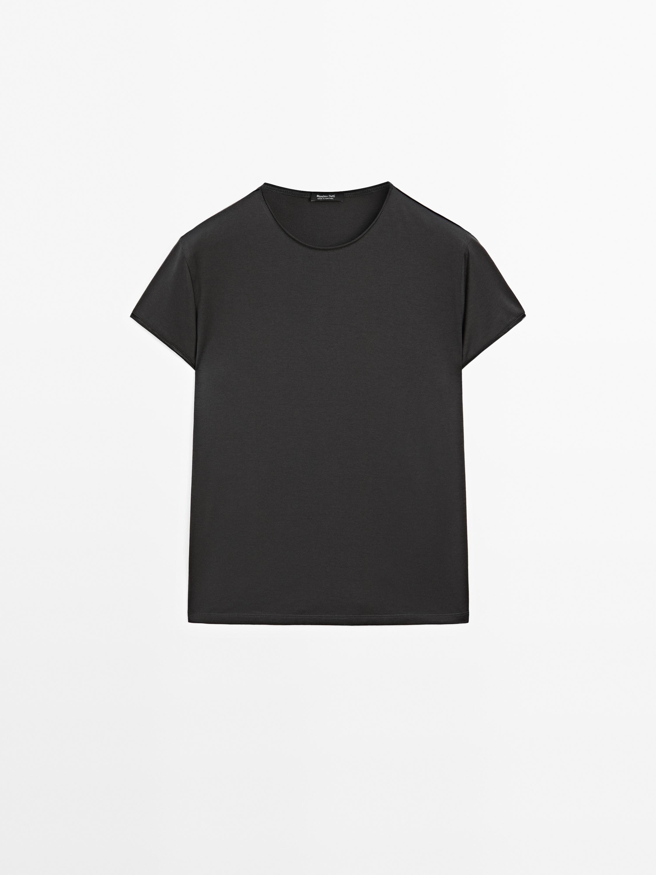 Massimo Dutti Футболка с короткими рукавами из 100% хлопка, свинцовый