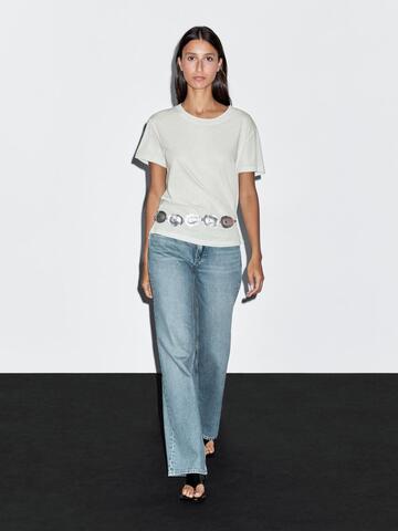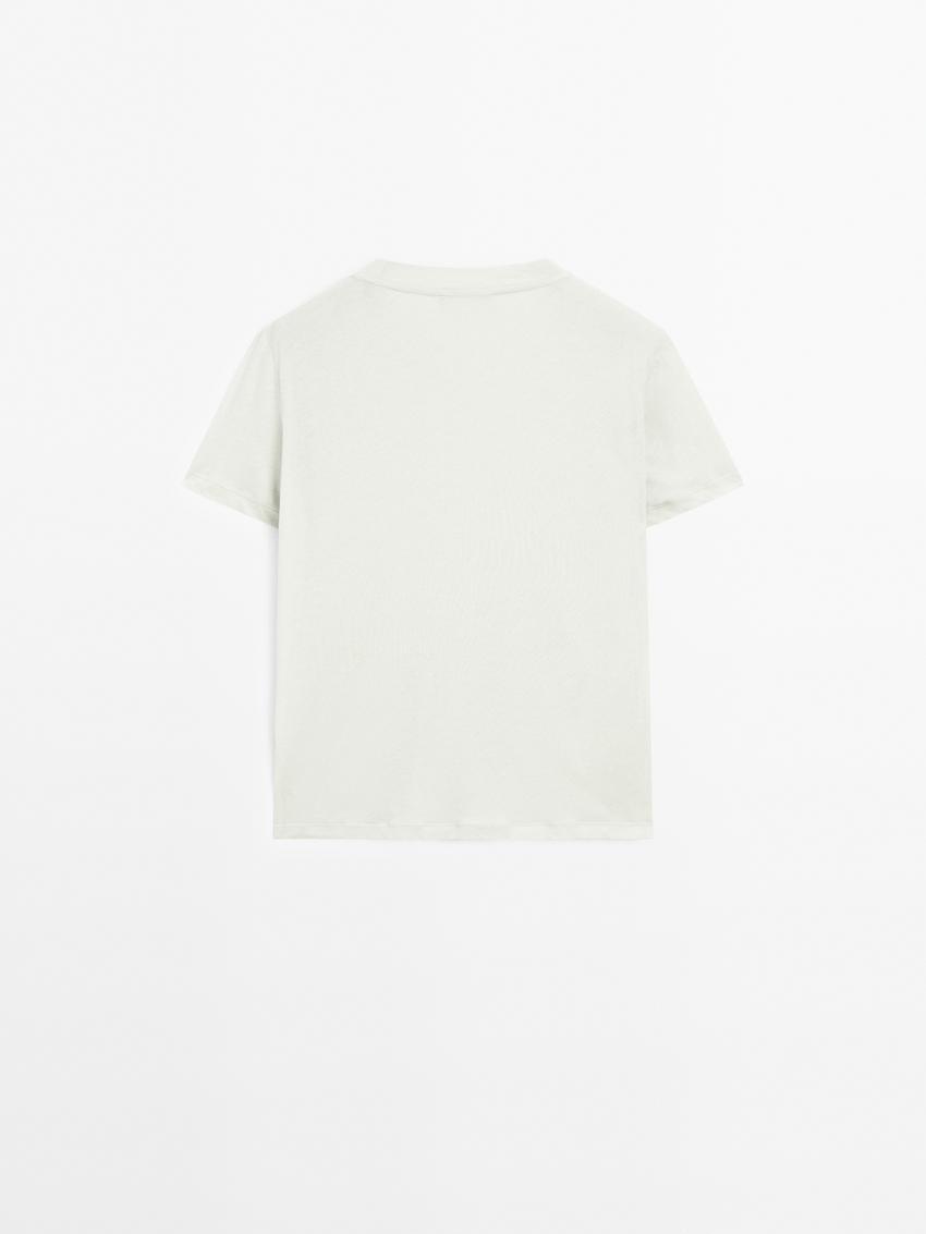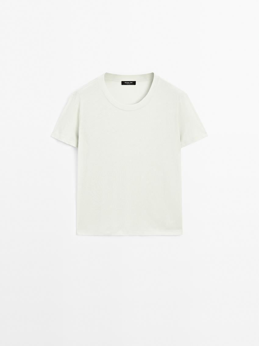 Massimo Dutti Футболка с короткими рукавами из 100% хлопка, водянисто-зеленый