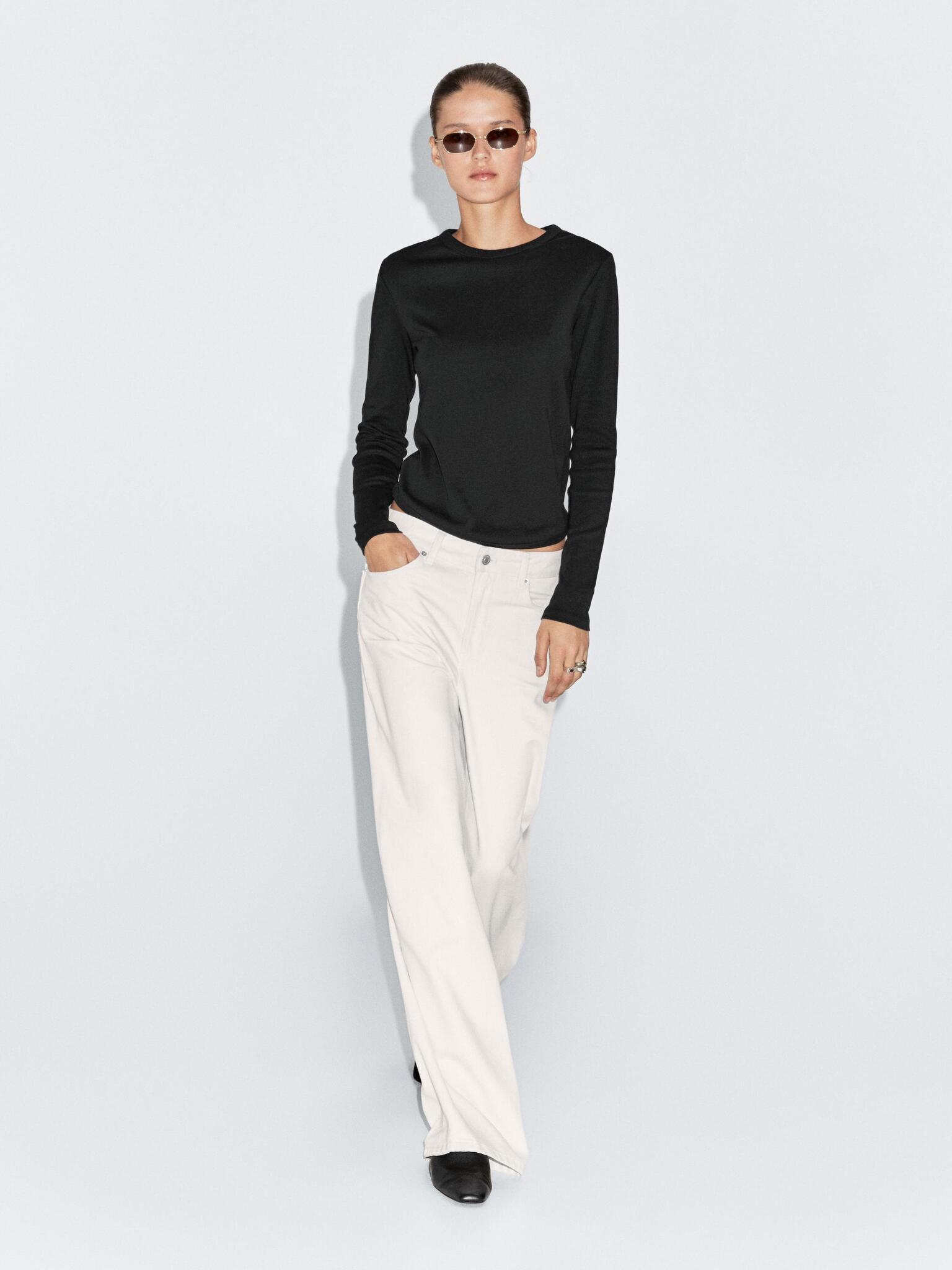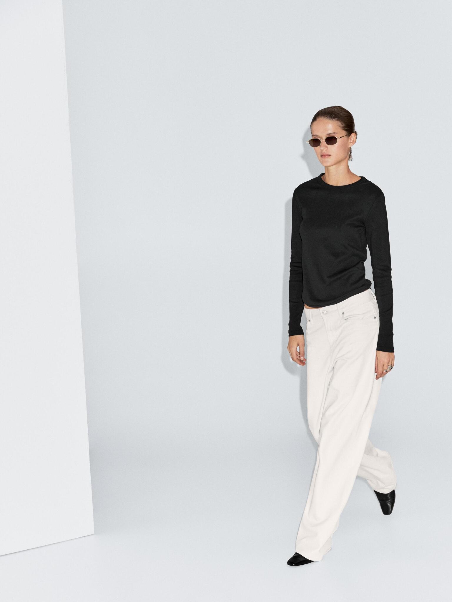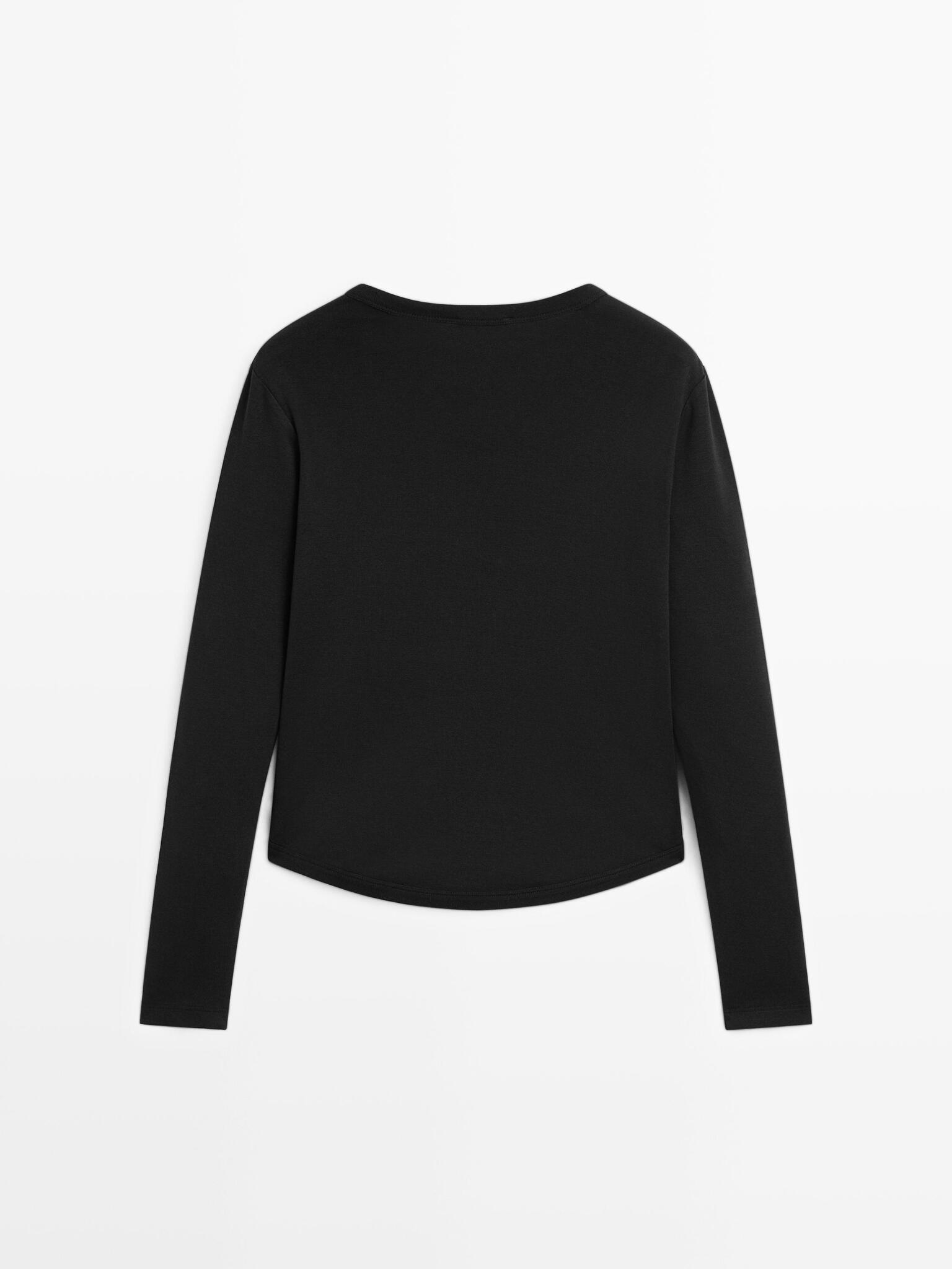 Massimo Dutti Футболка с закругленными краями и длинными рукавами, черный