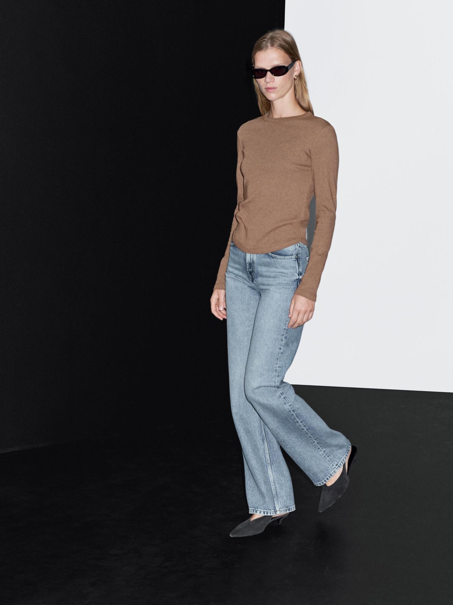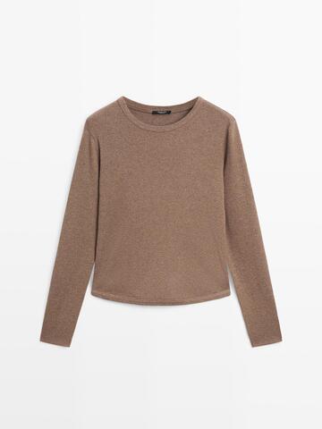 Massimo Dutti Футболка с закругленными краями и длинными рукавами, норка