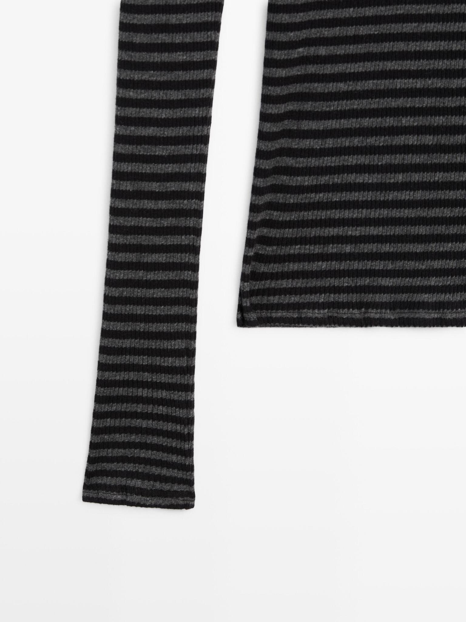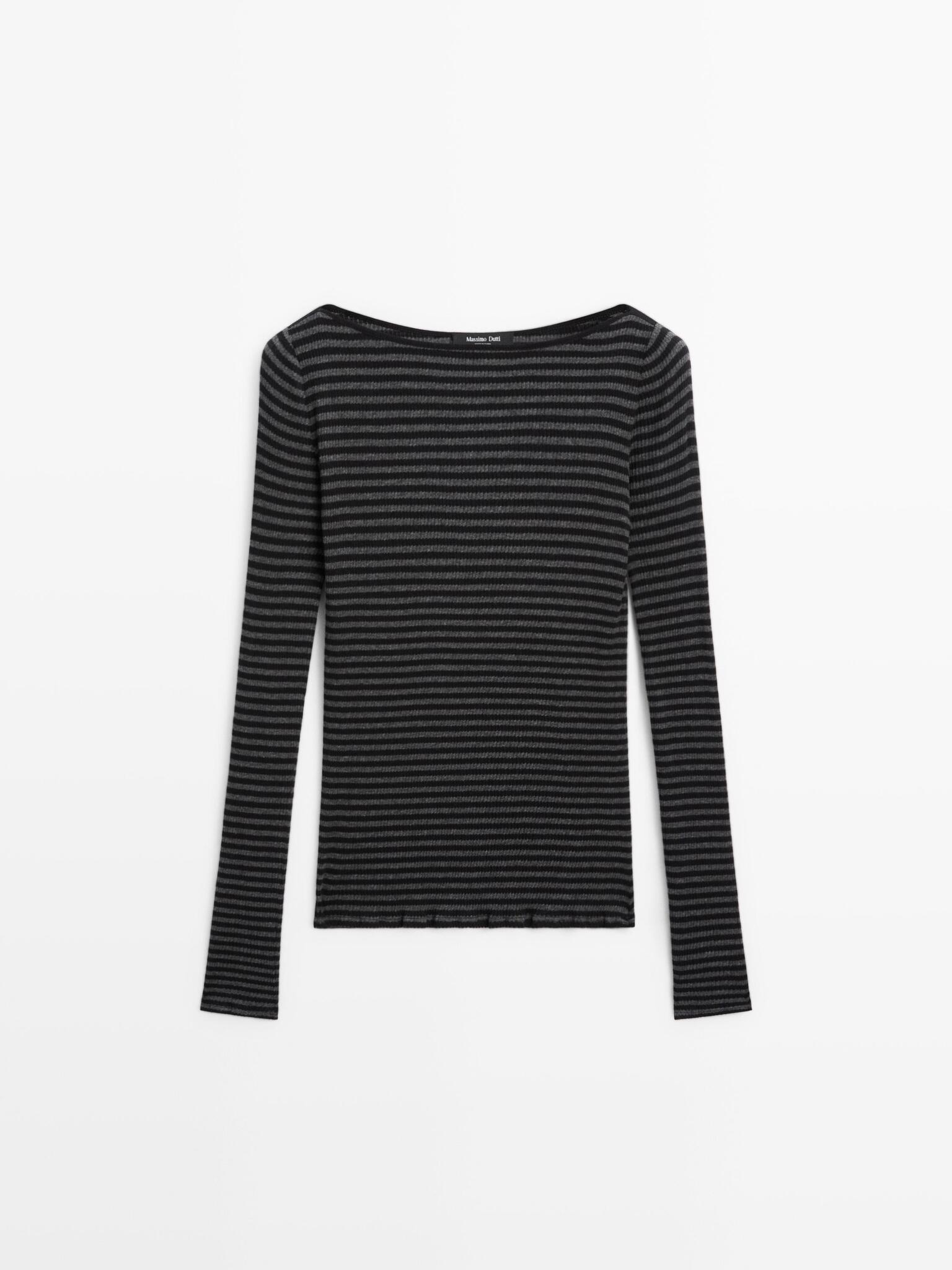 Massimo Dutti Футболка в полоску с длинными рукавами, черный