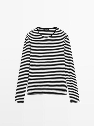 Massimo Dutti Футболка в полоску с длинными рукавами и контрастной отделкой, черный
