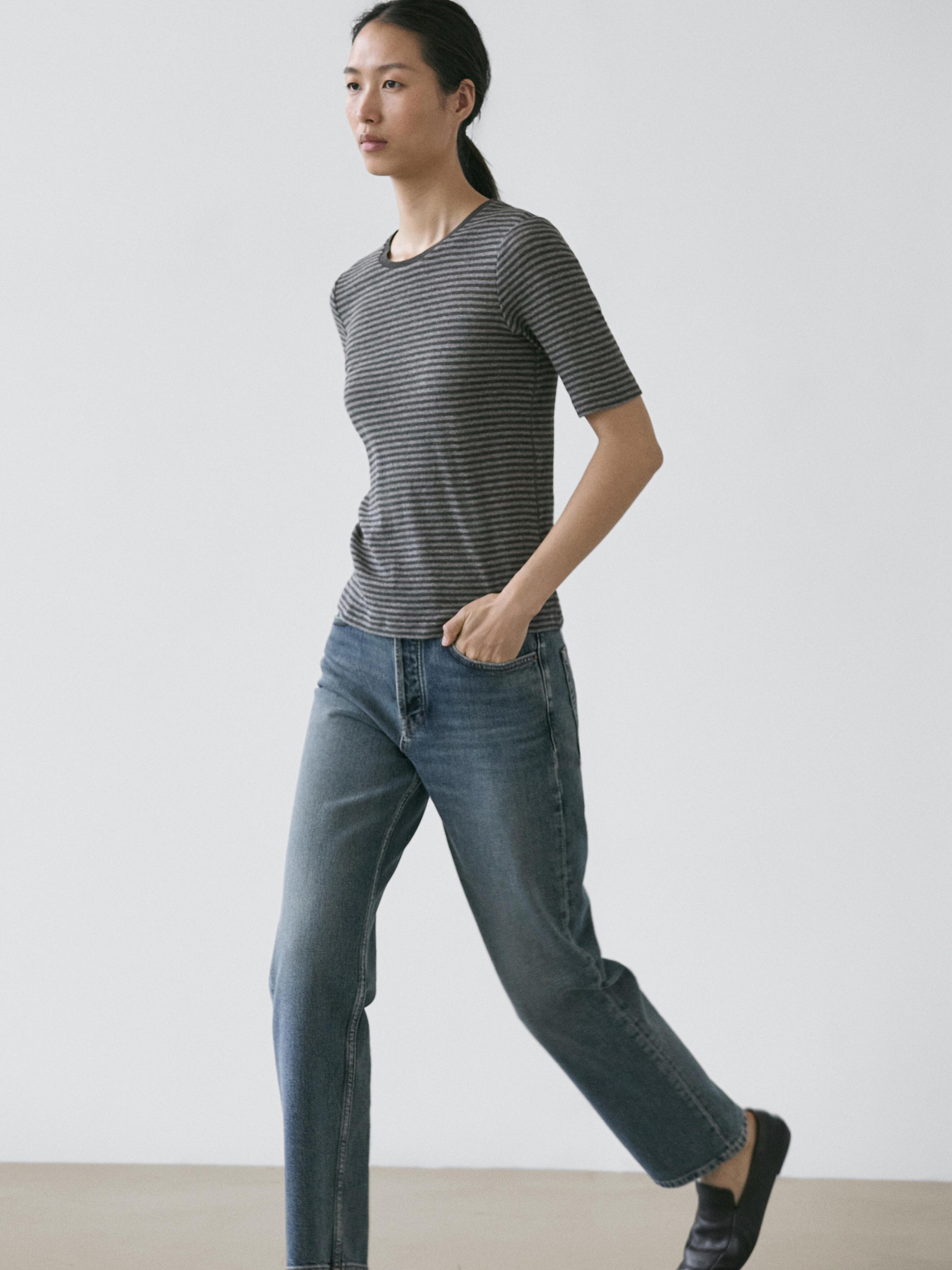 Massimo Dutti Футболка в полоску с короткими рукавами, серый