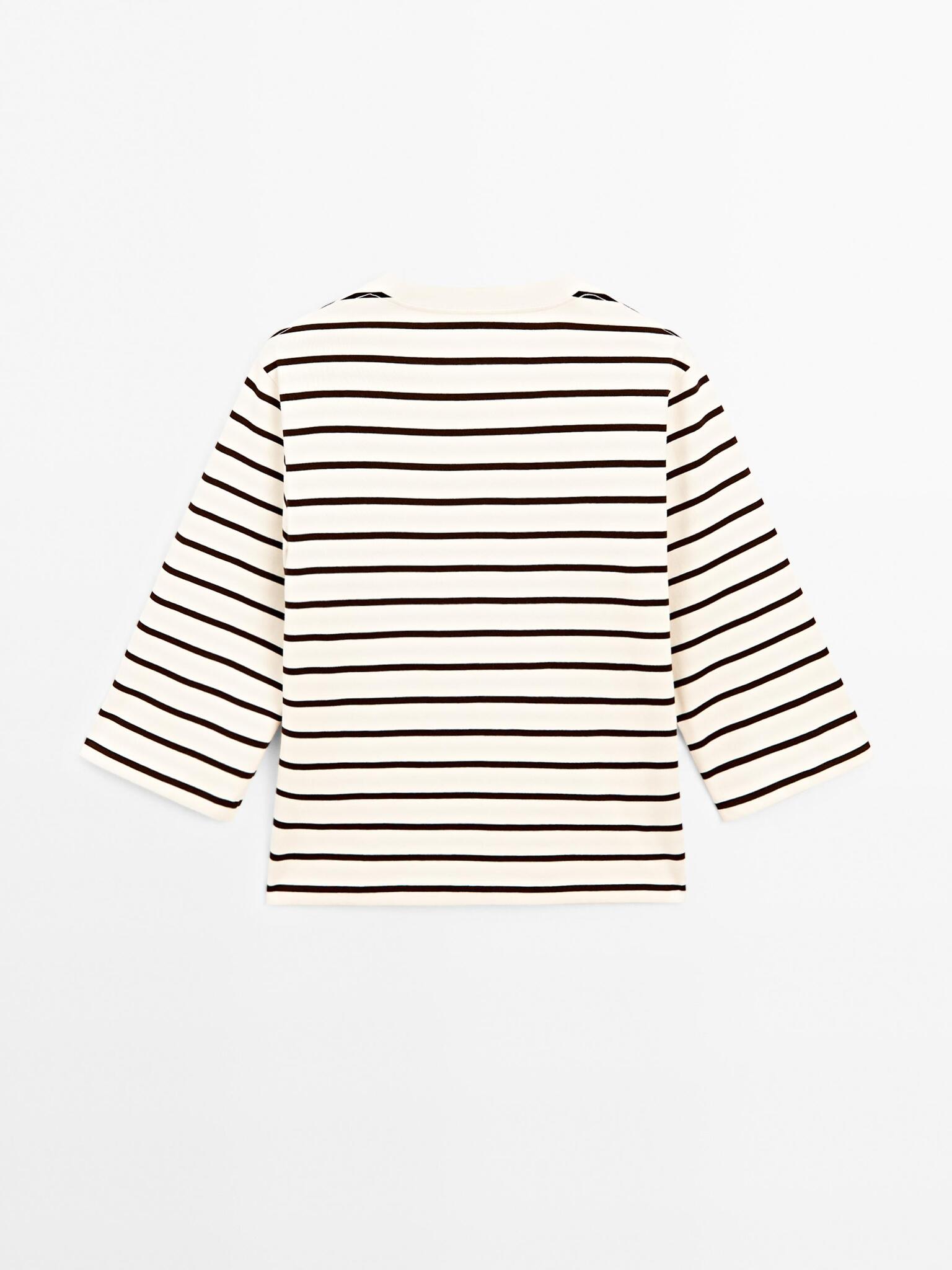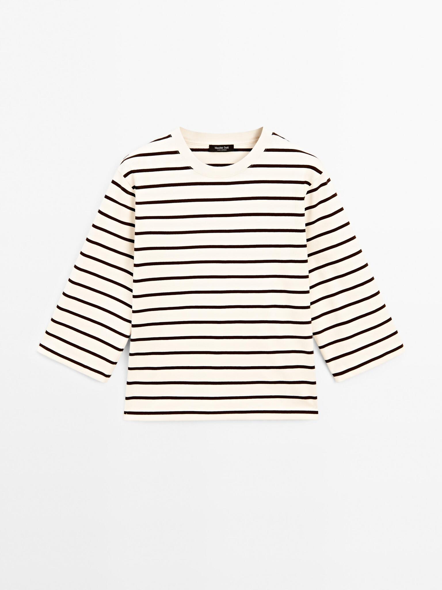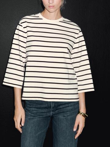 Massimo Dutti Футболка в полоску с рукавом 3/4, натуральный, кремовый