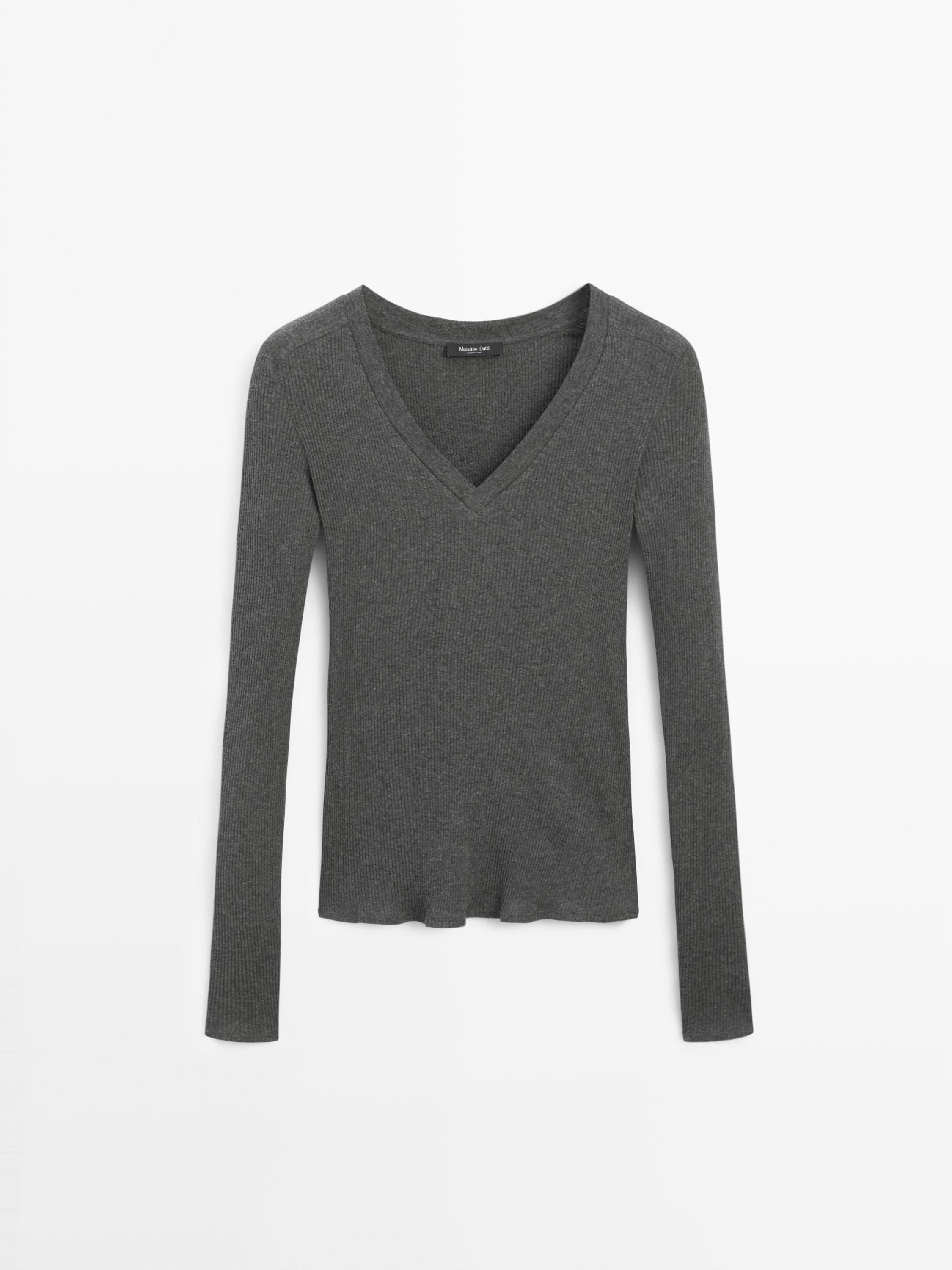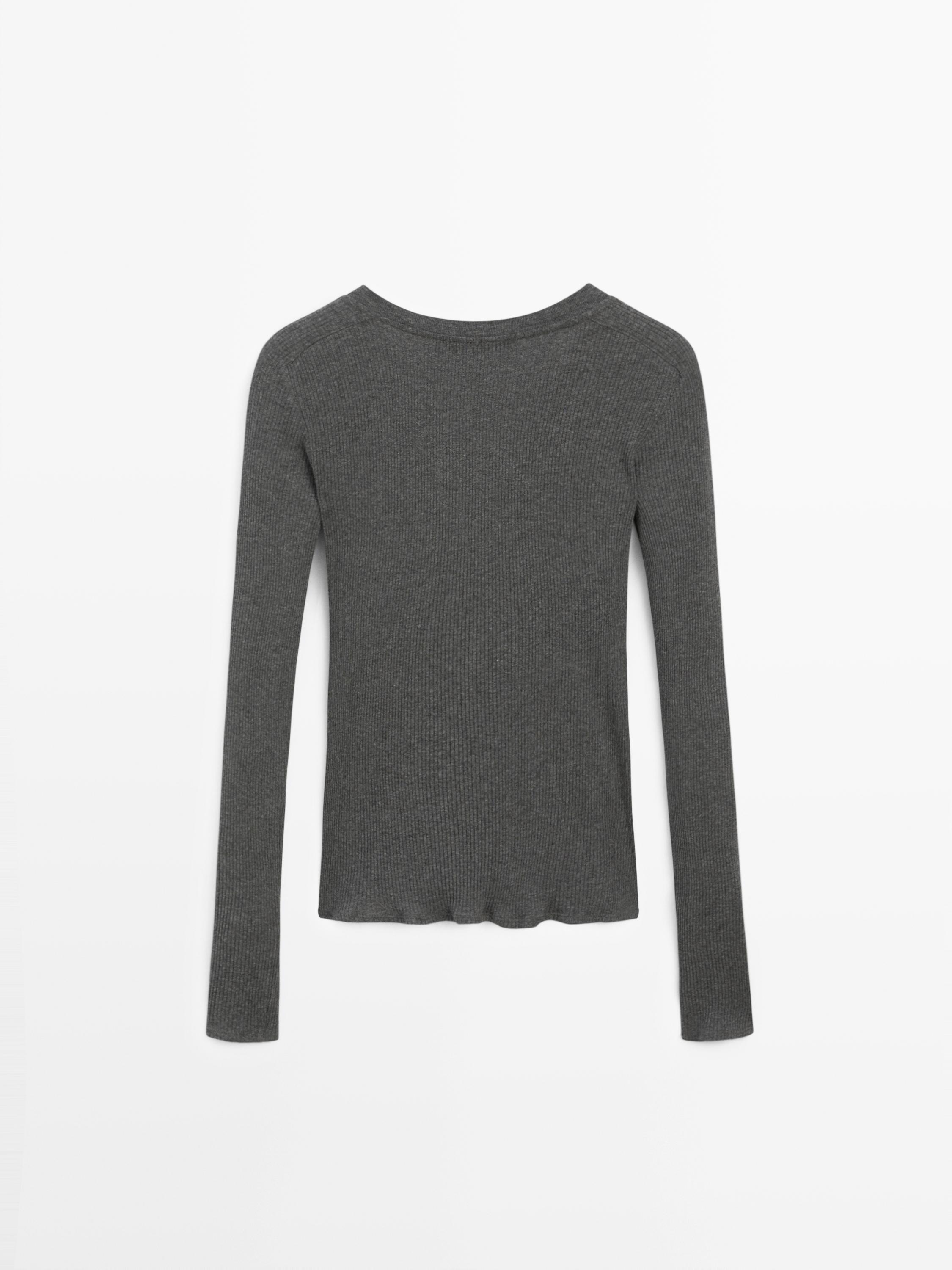 Massimo Dutti Футболка в рубчик с длинными рукавами, антрацитово-серый