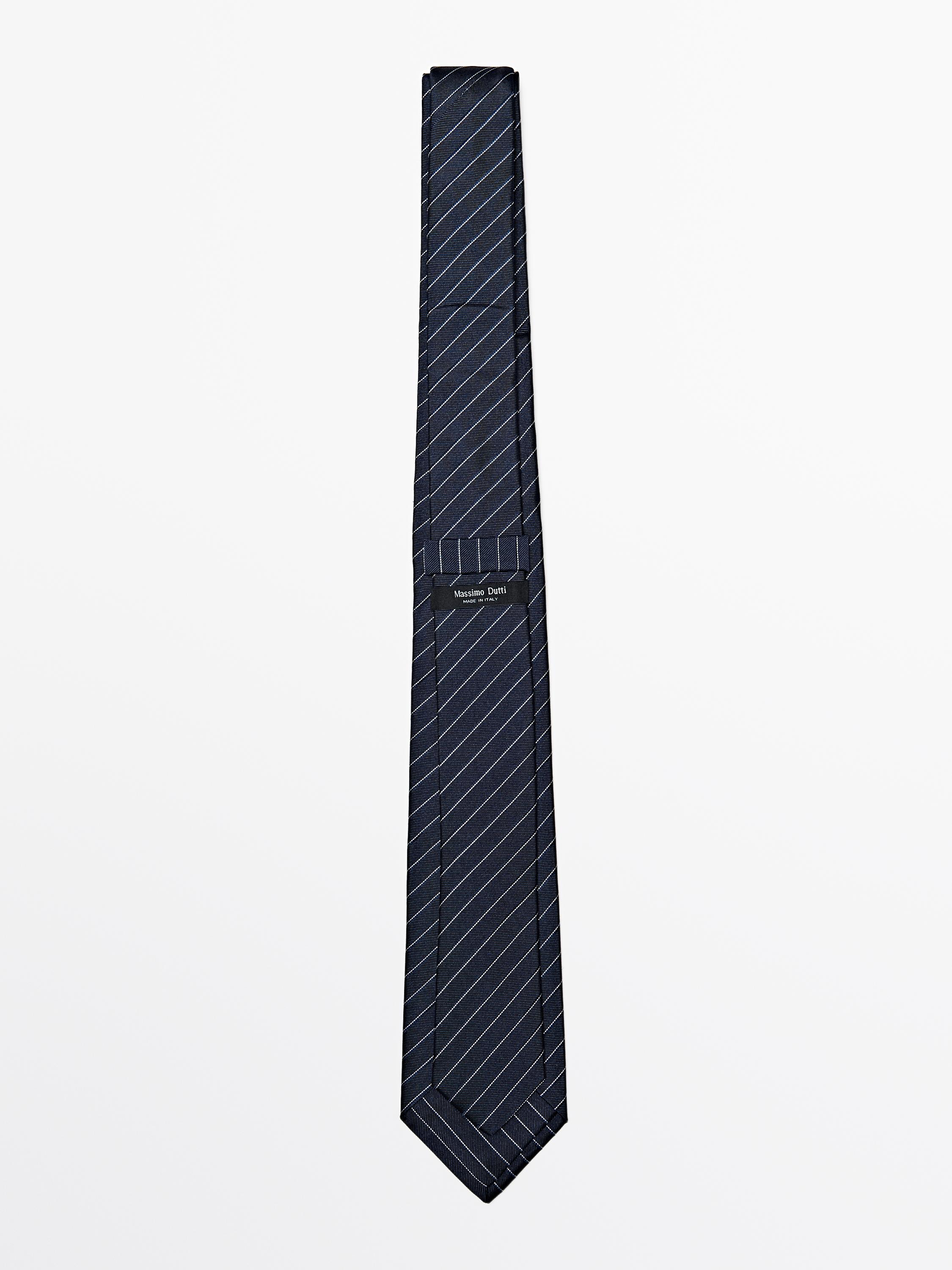 Massimo Dutti Галстук в полоску из 100% шелка, темно-синий
