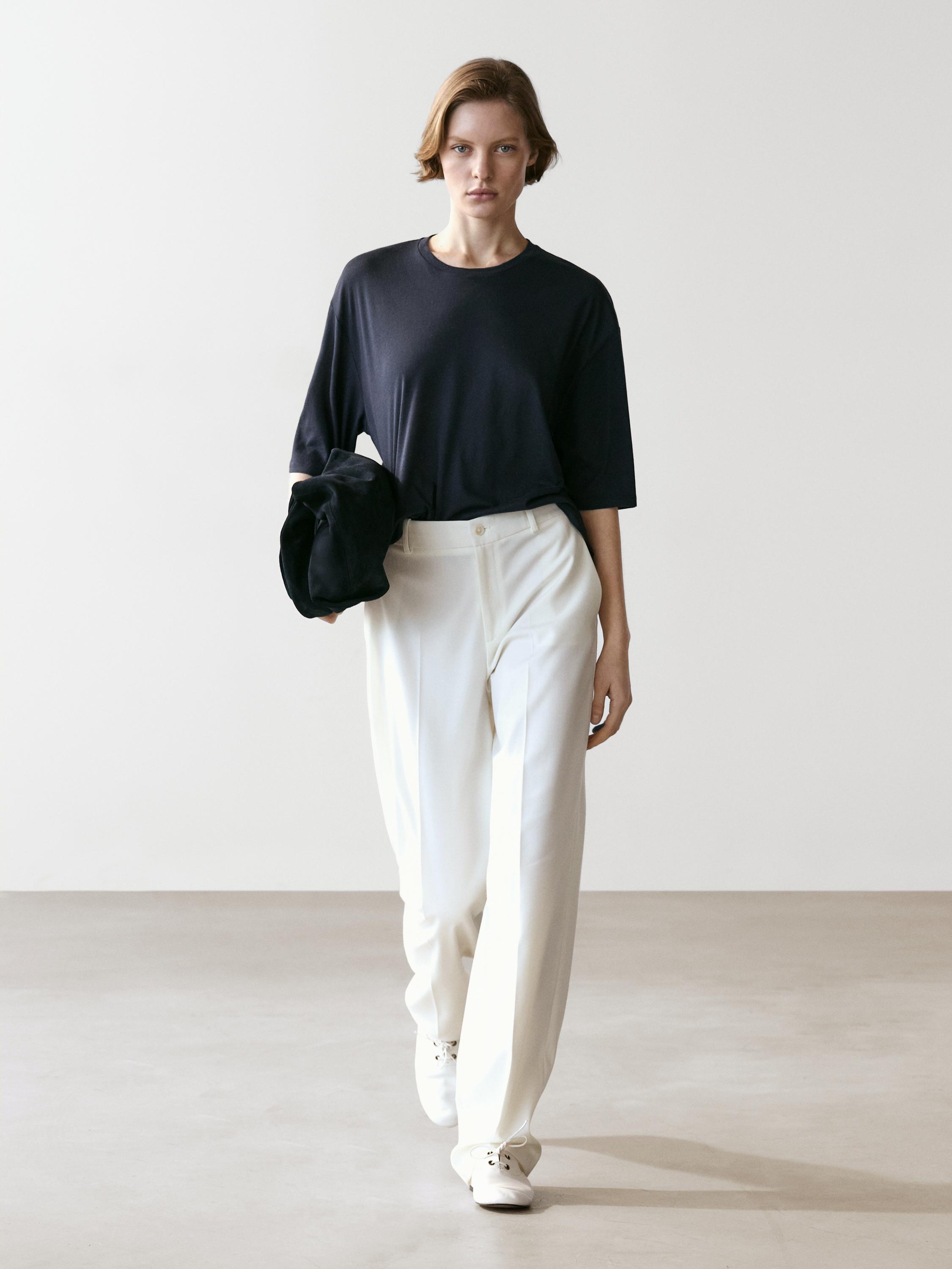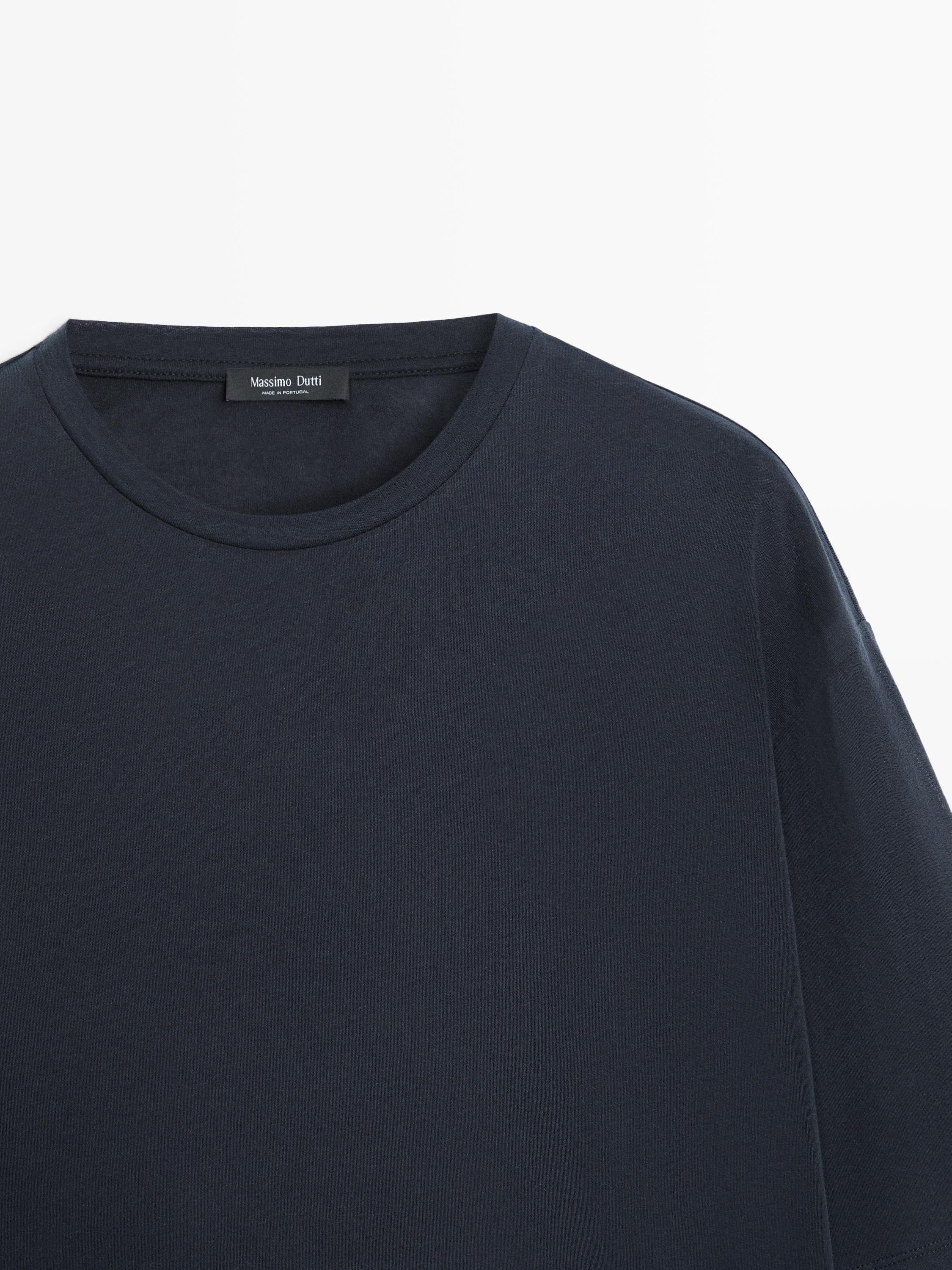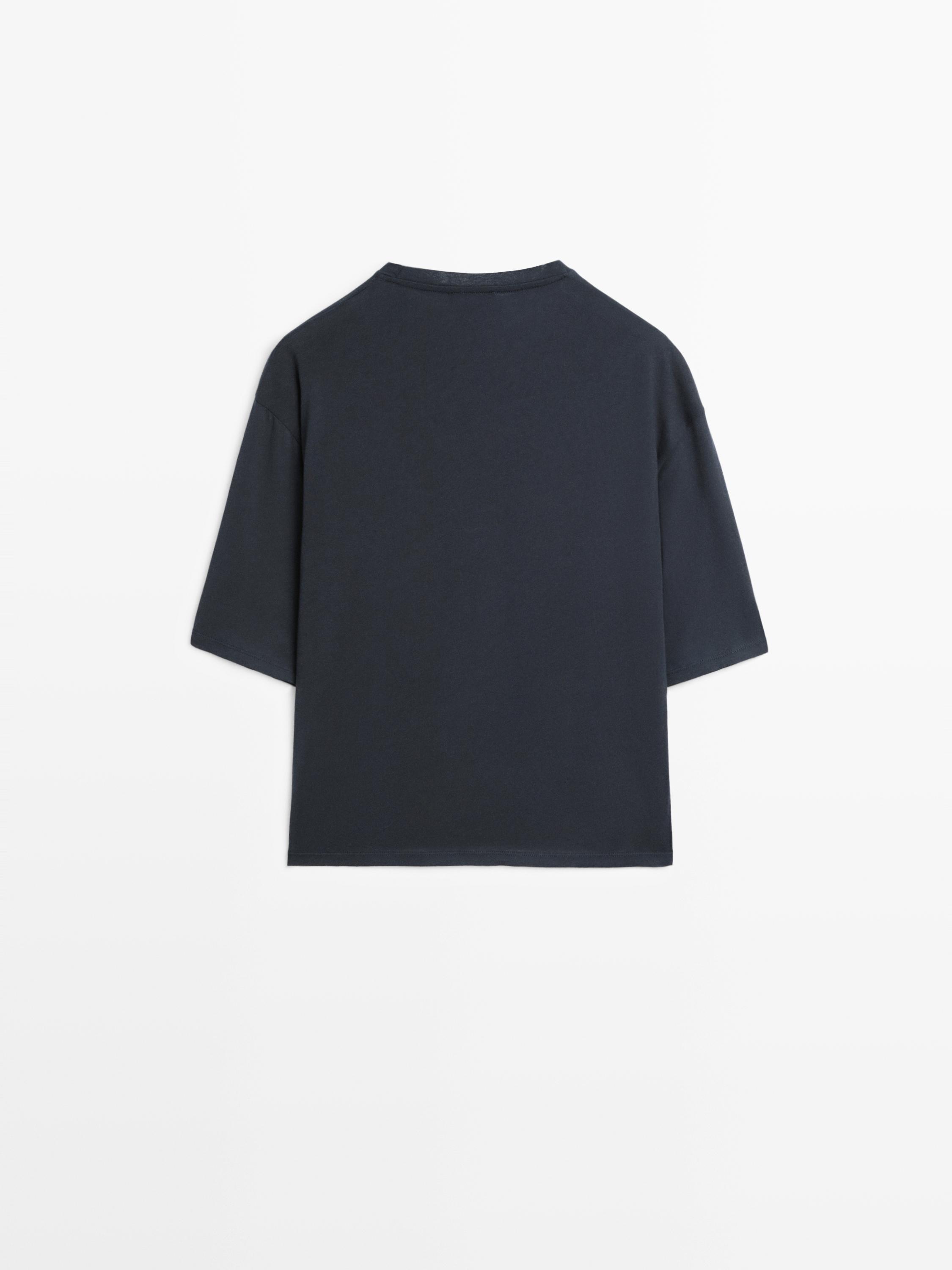 Massimo Dutti Хлопковая футболка оверсайз, темно-синий