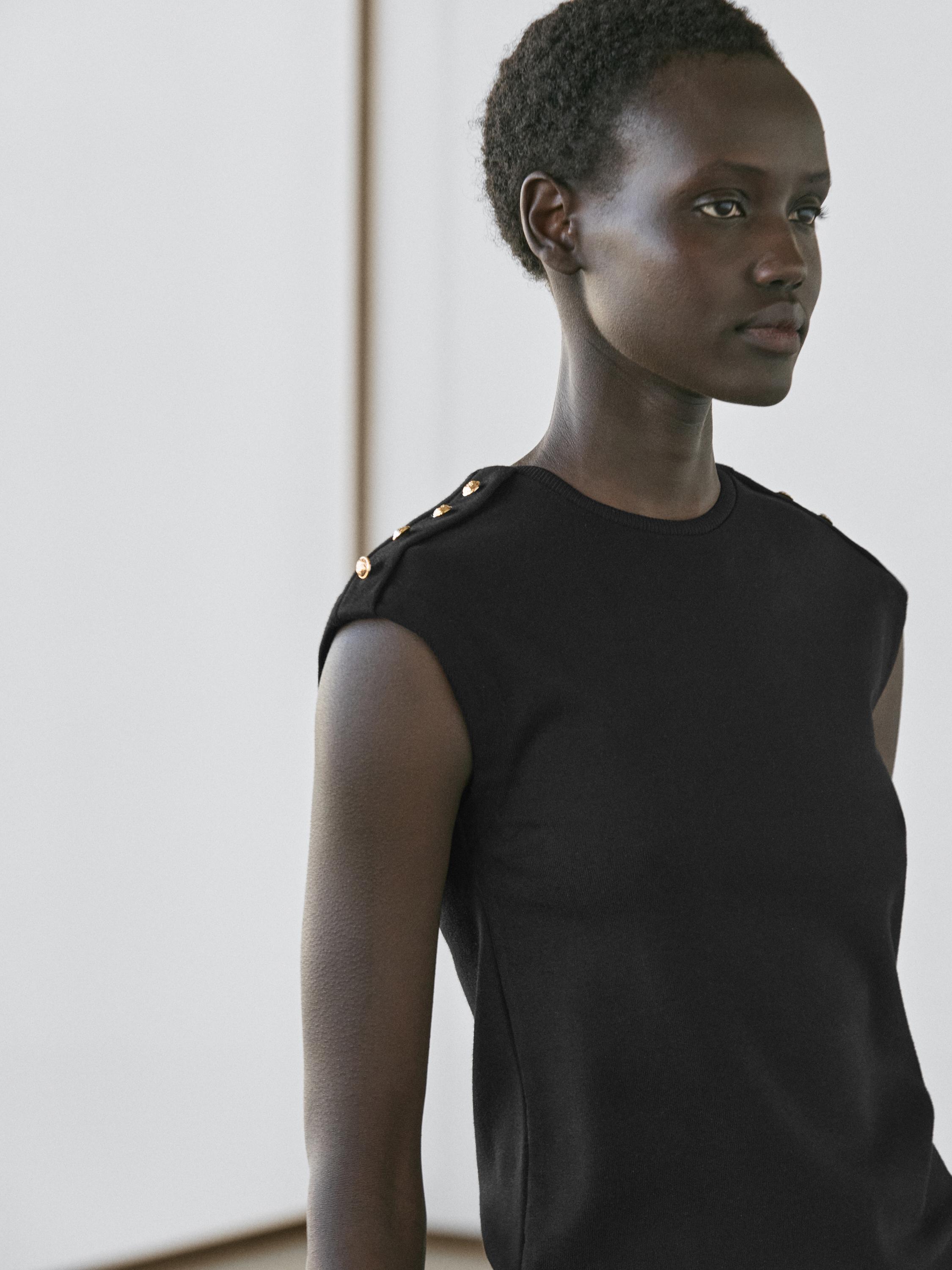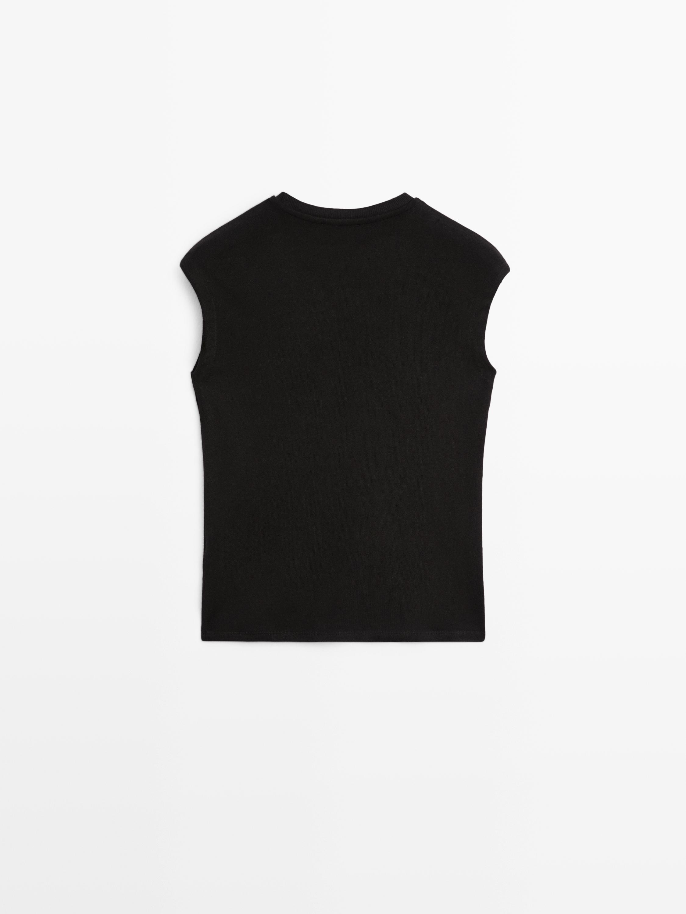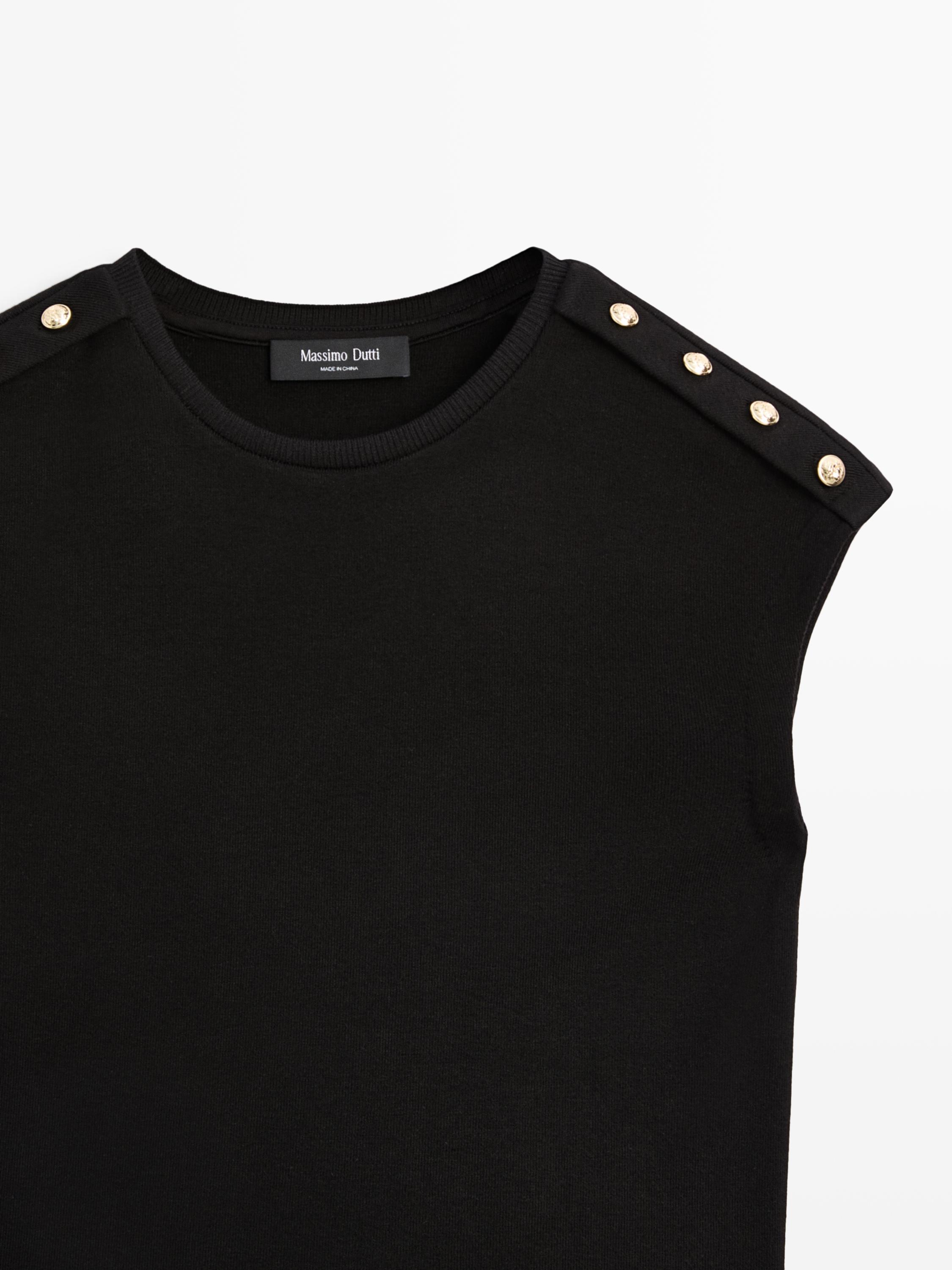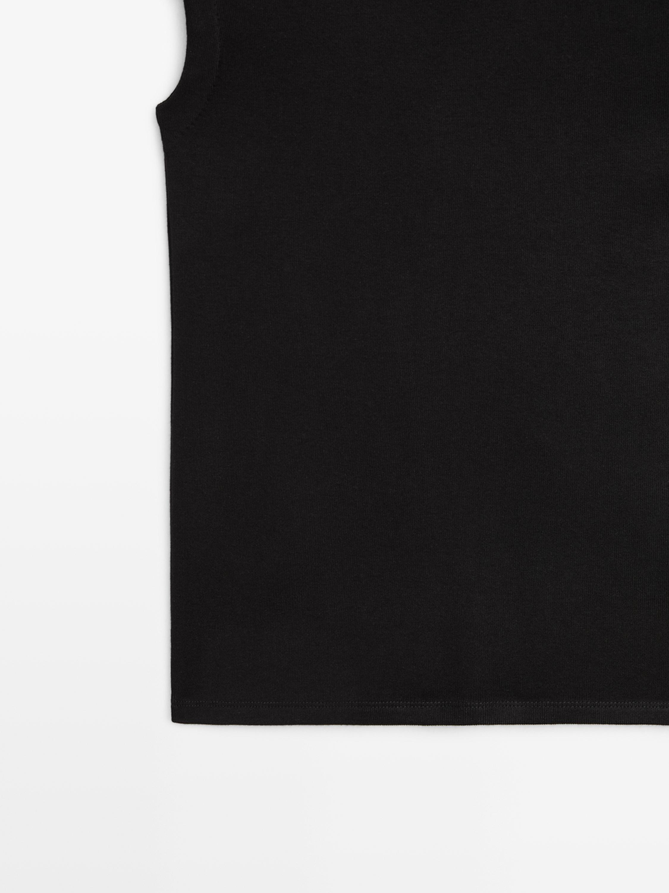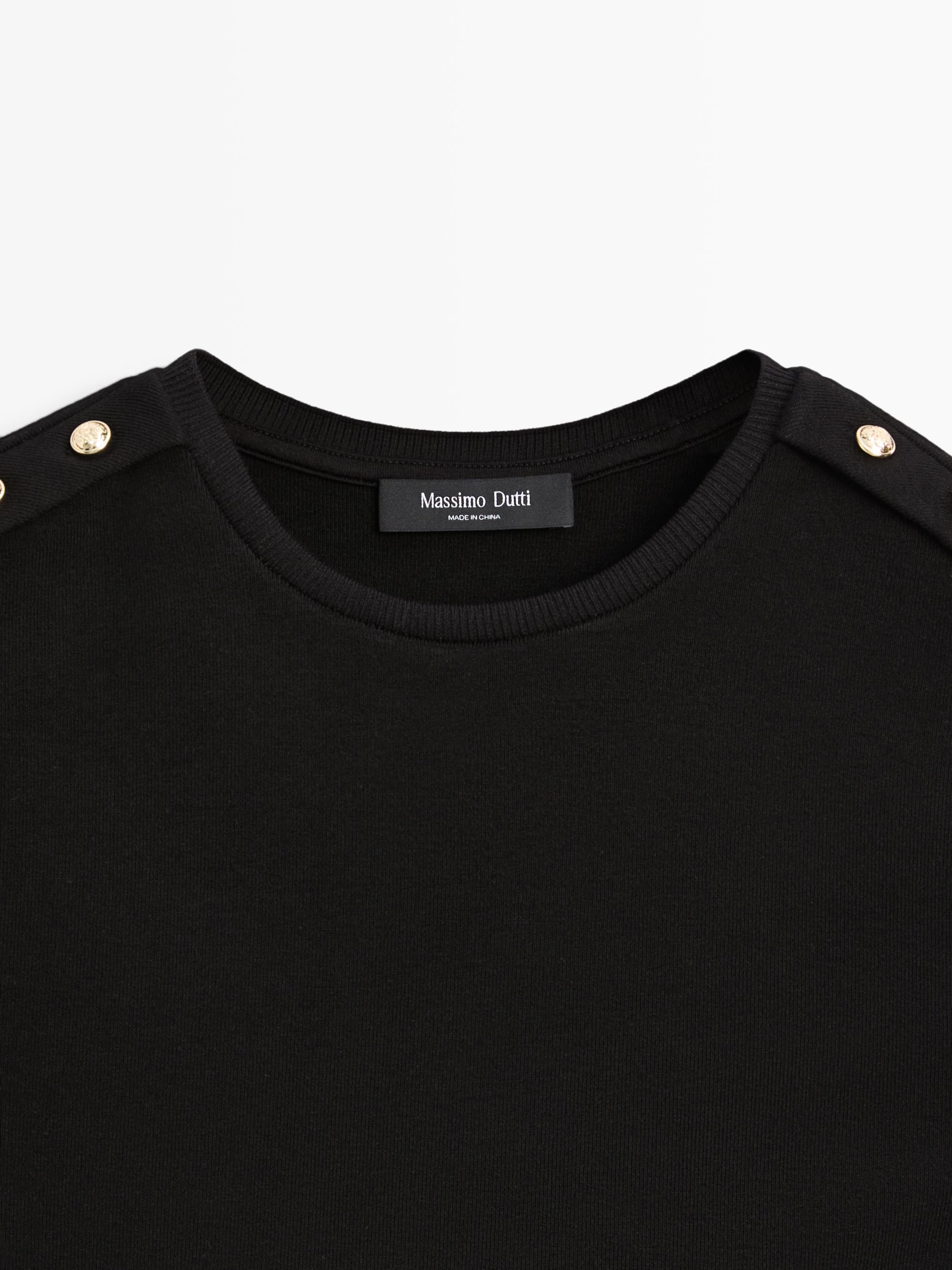 Massimo Dutti Хлопковая футболка с коротким рукавом, черный
