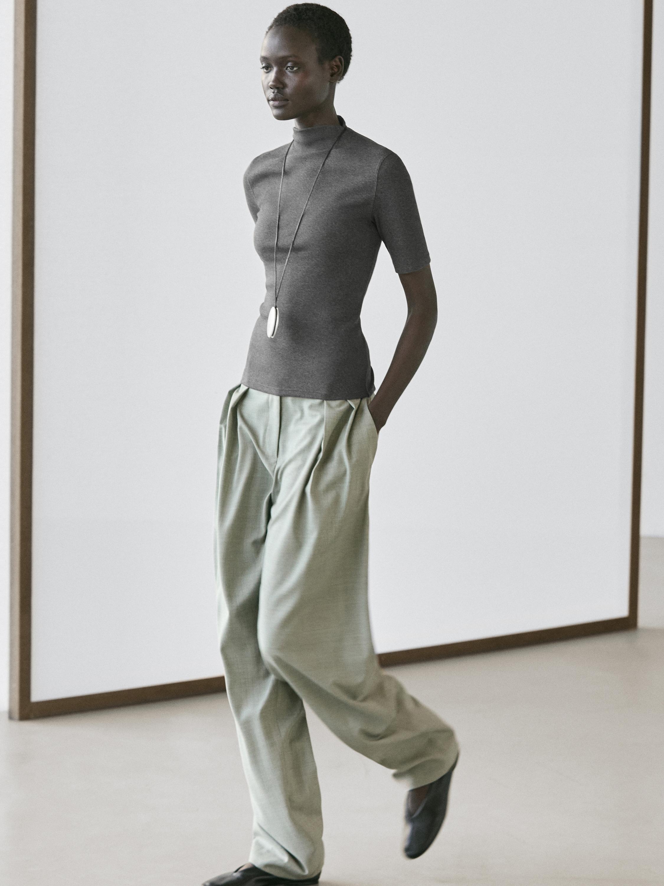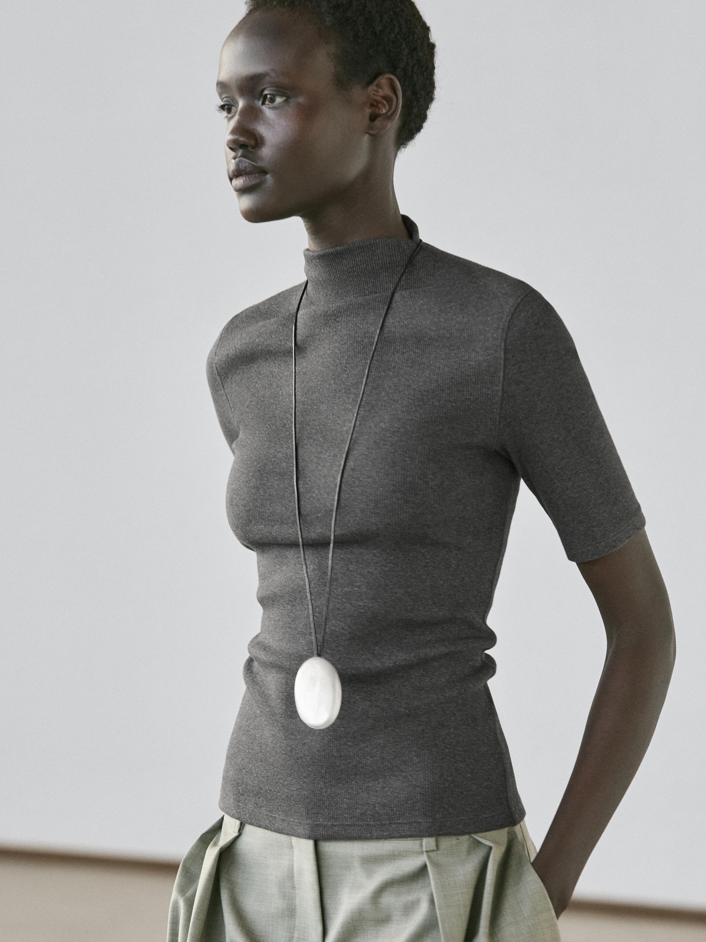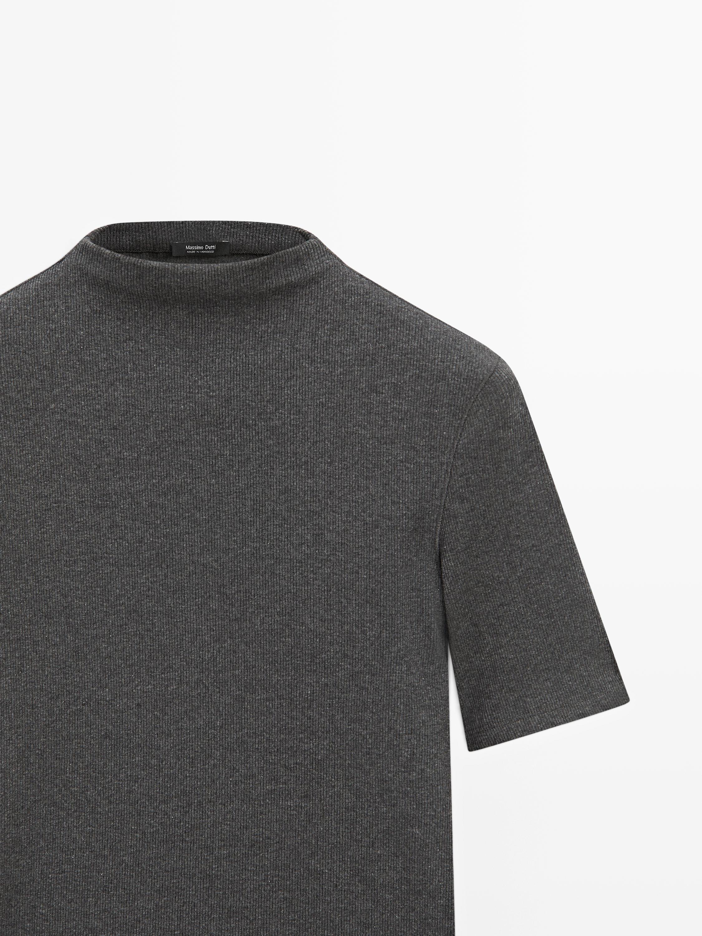 Massimo Dutti Хлопковая футболка с коротким рукавом, серый