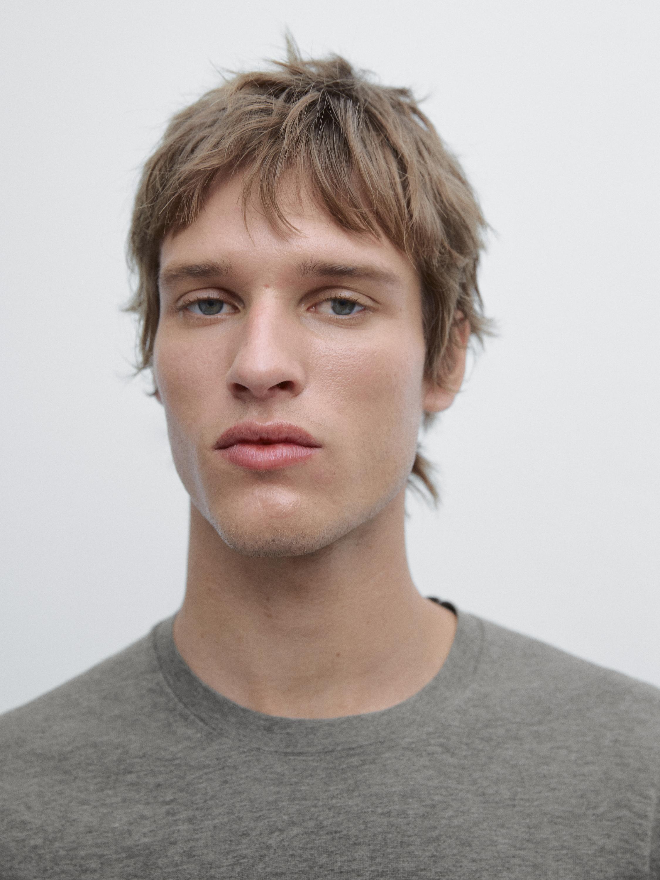 Massimo Dutti Хлопковая футболка с коротким рукавом, серый