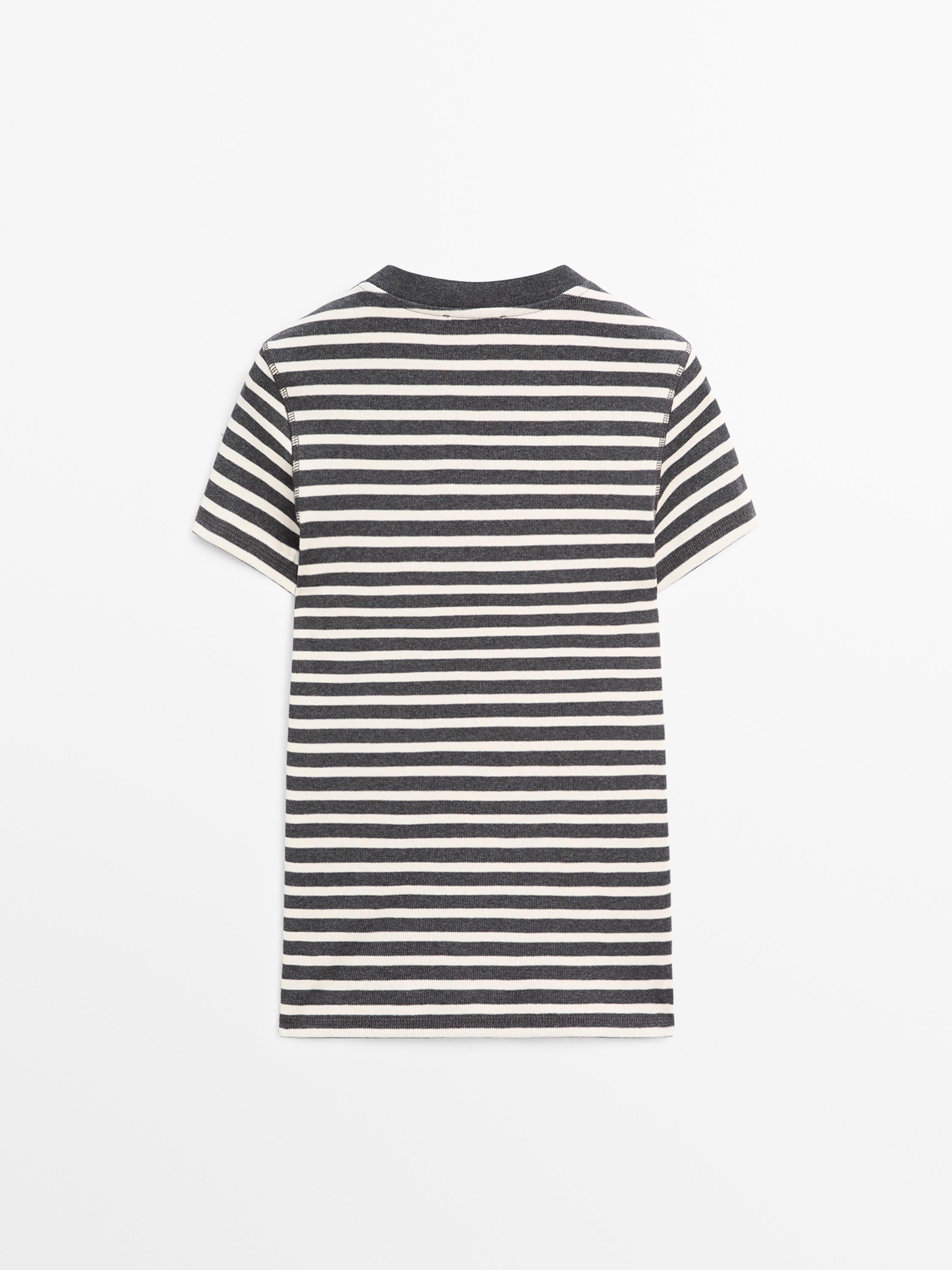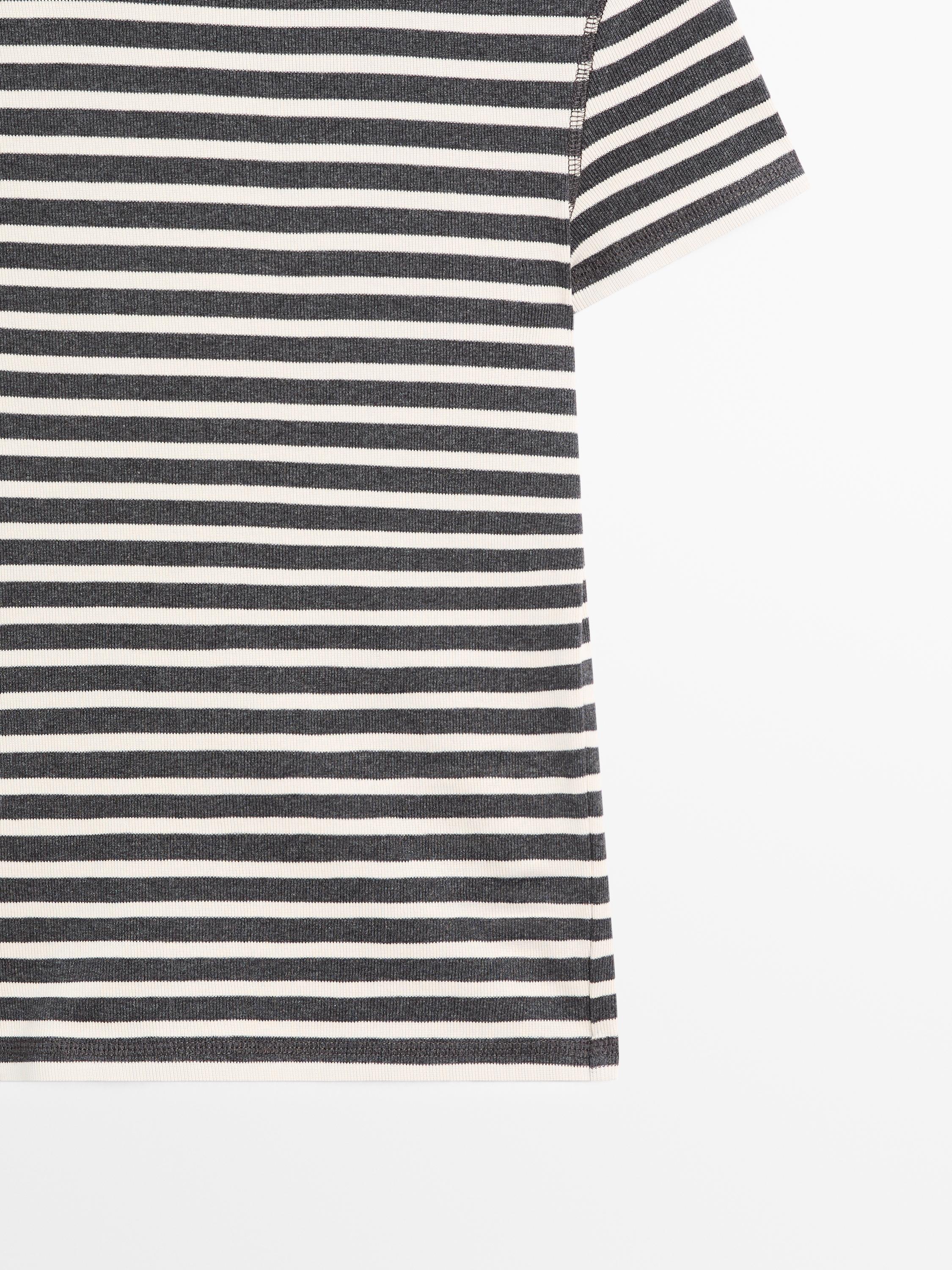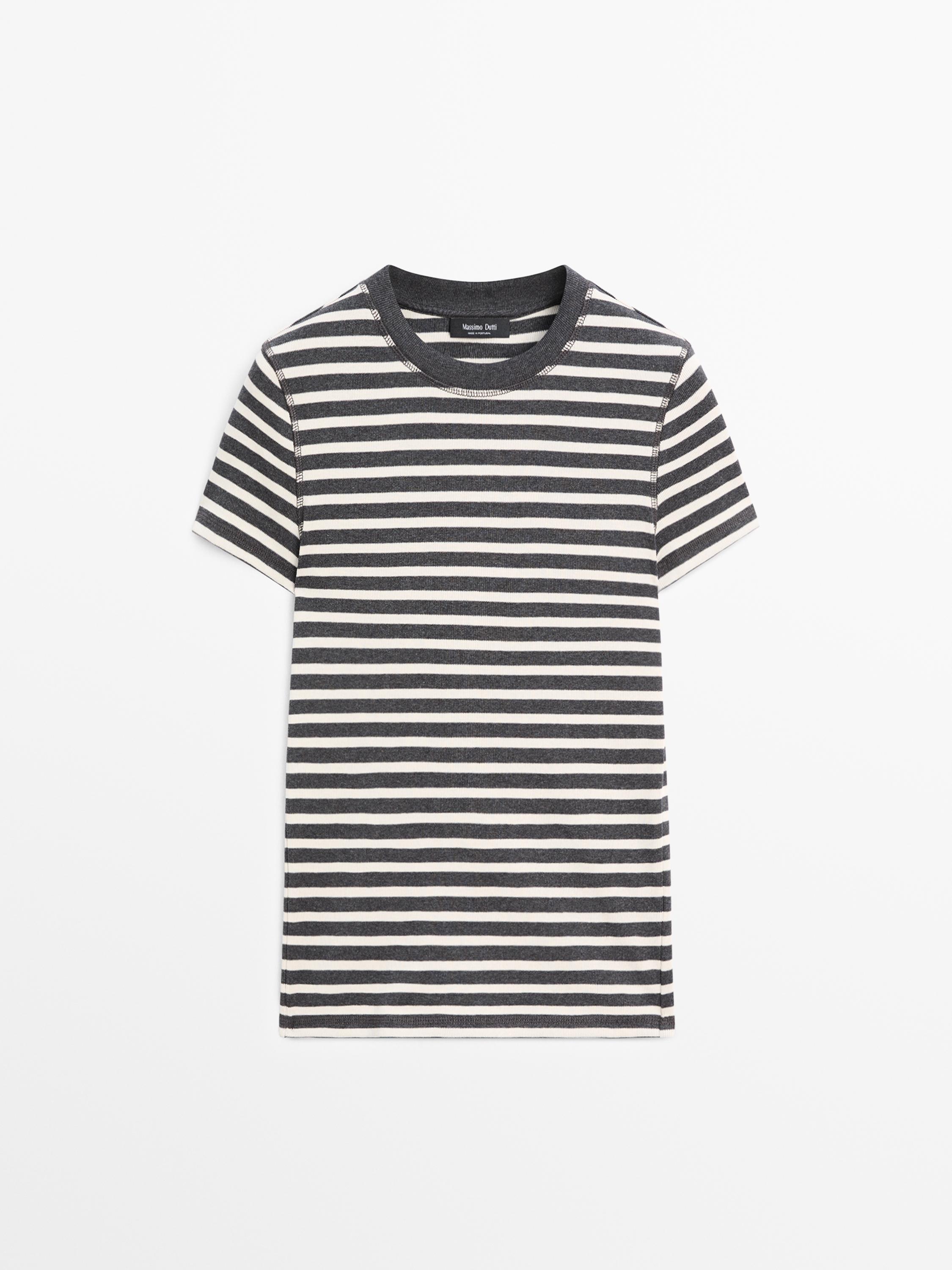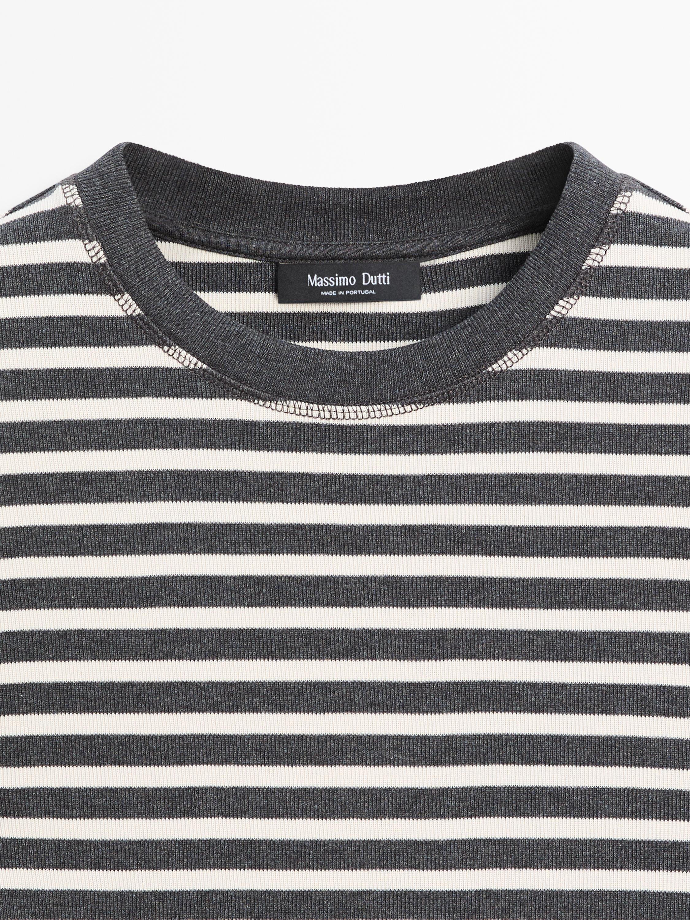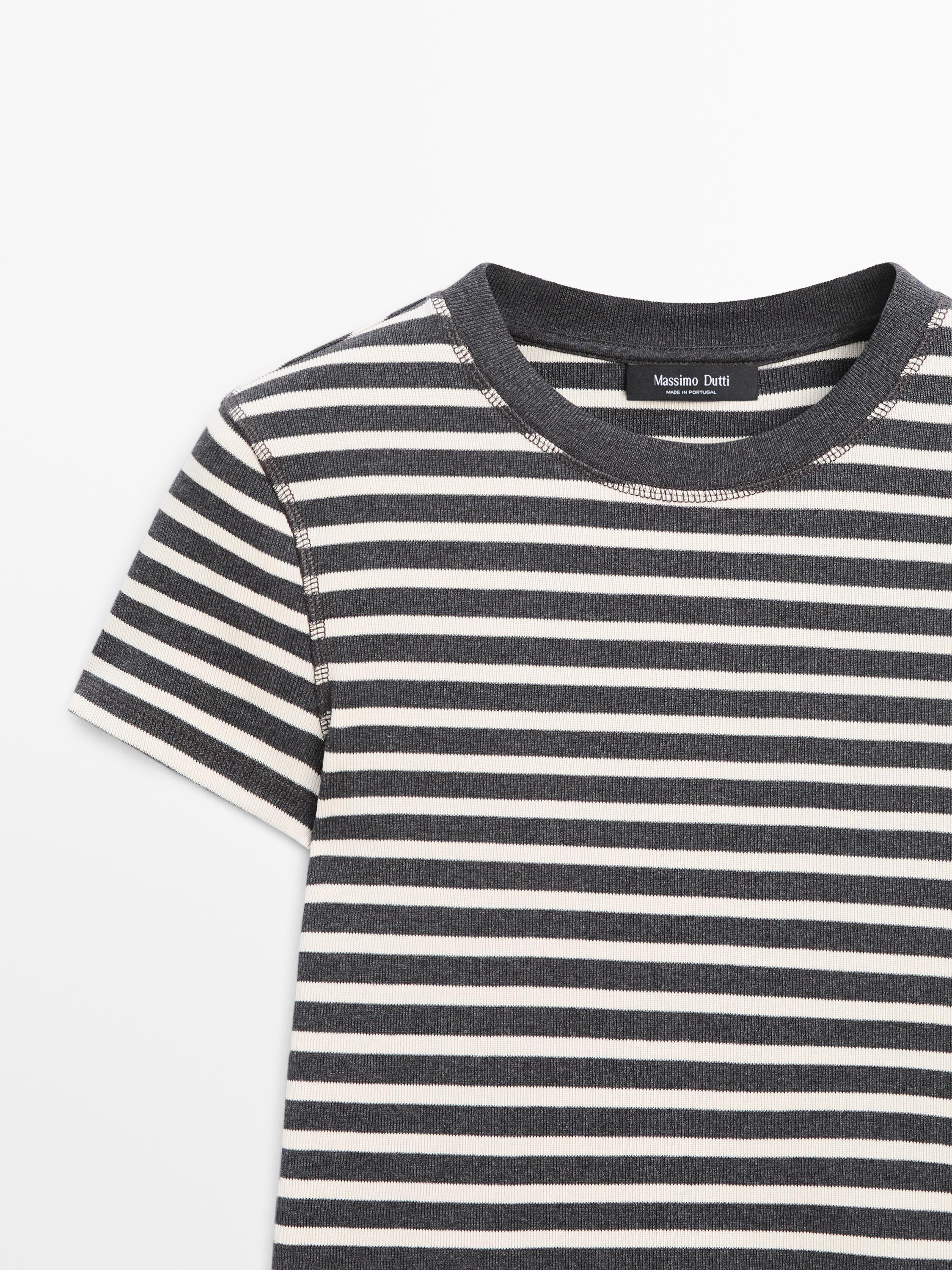 Massimo Dutti Хлопковая футболка в полоску, серый