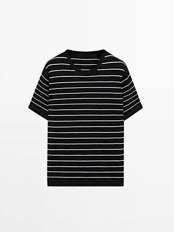Футболка из 100% хлопка. Круглый вырез. Короткие рукава. В полоску.