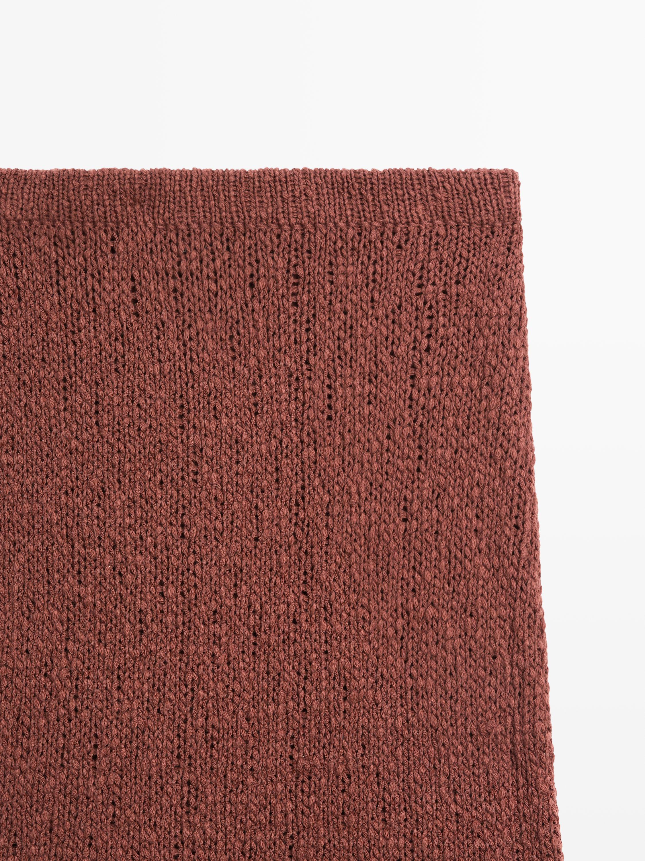 Massimo Dutti Хлопковая вязаная юбка миди, черепичный