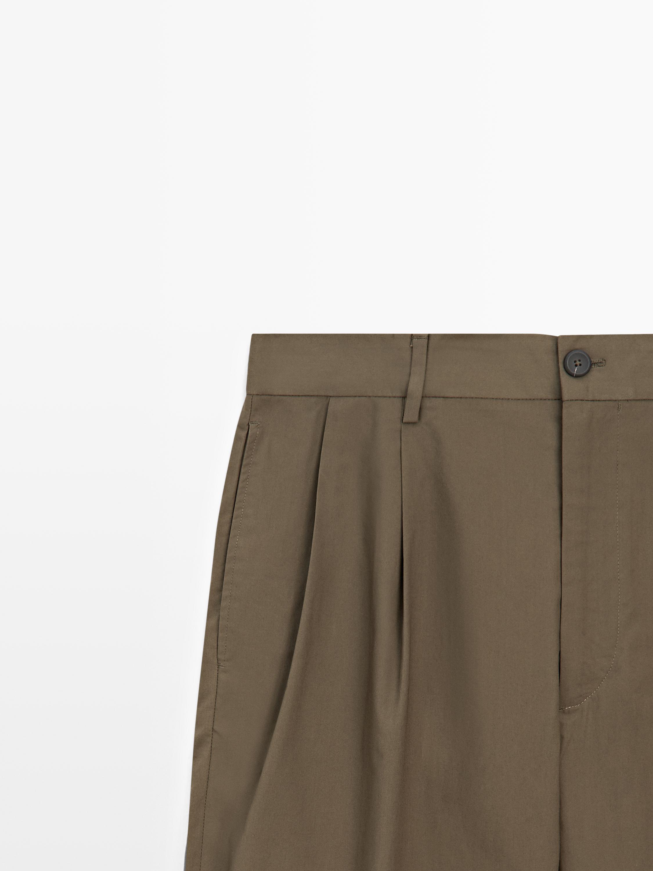 Massimo Dutti Хлопковые брюки с двойными вытачками, темно-зеленый