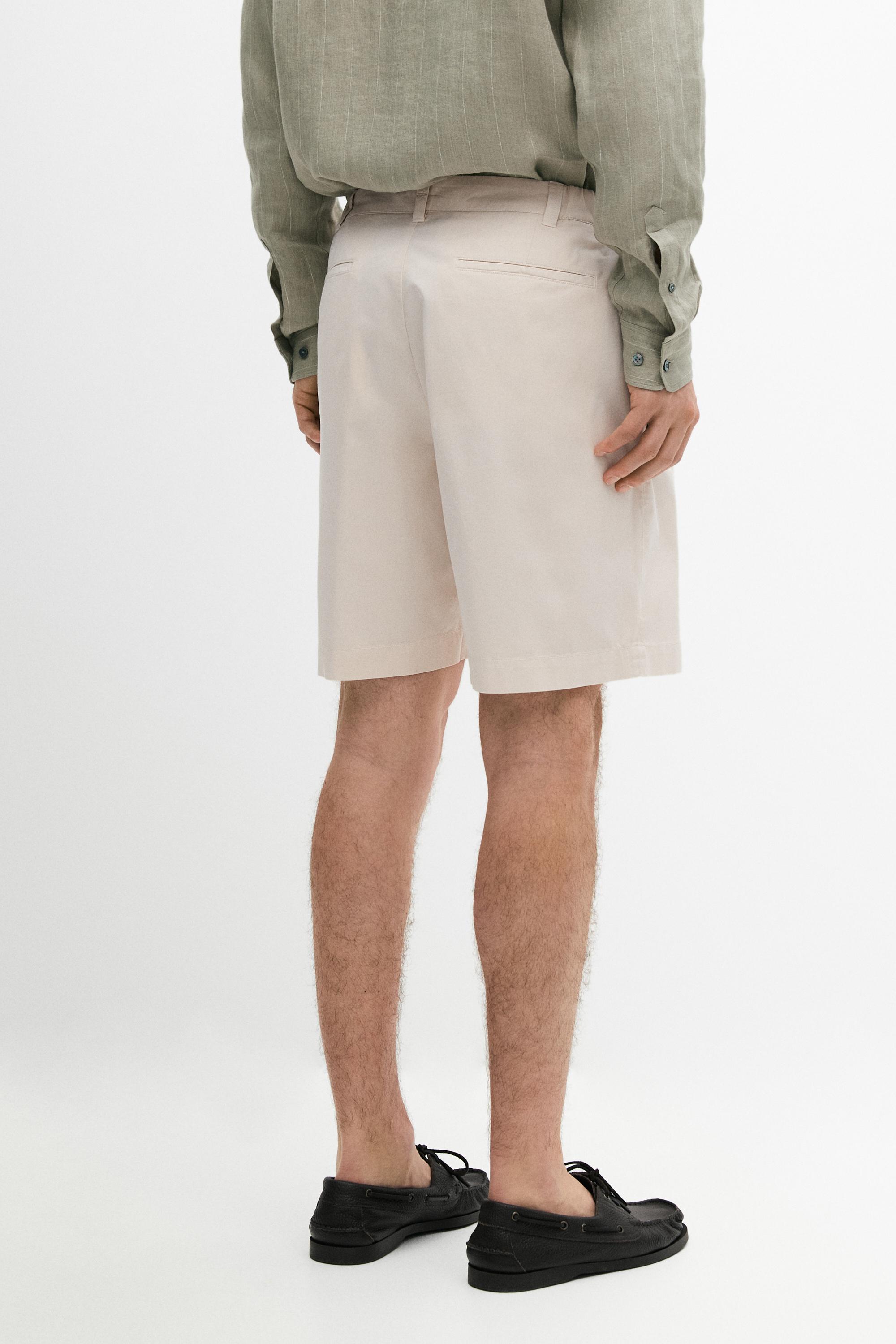 Massimo Dutti Хлопковые шорты-бермуды с декоративной отделкой на поясе, песочный