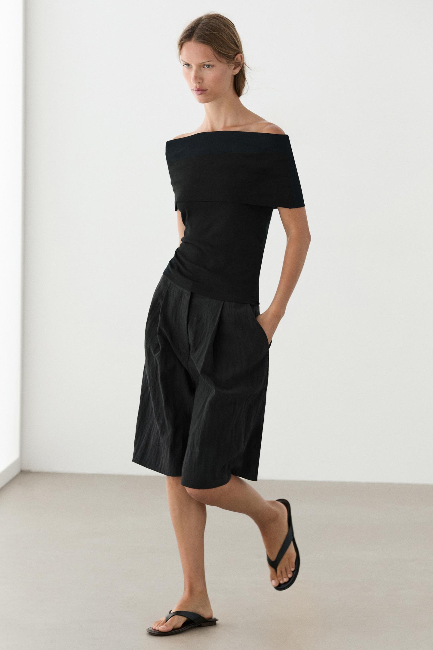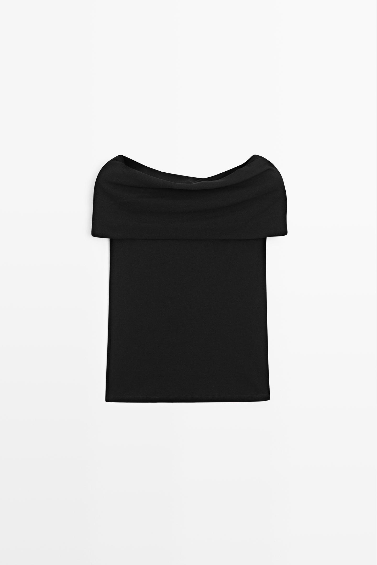 Massimo Dutti Хлопковый топ с открытыми плечами, черный