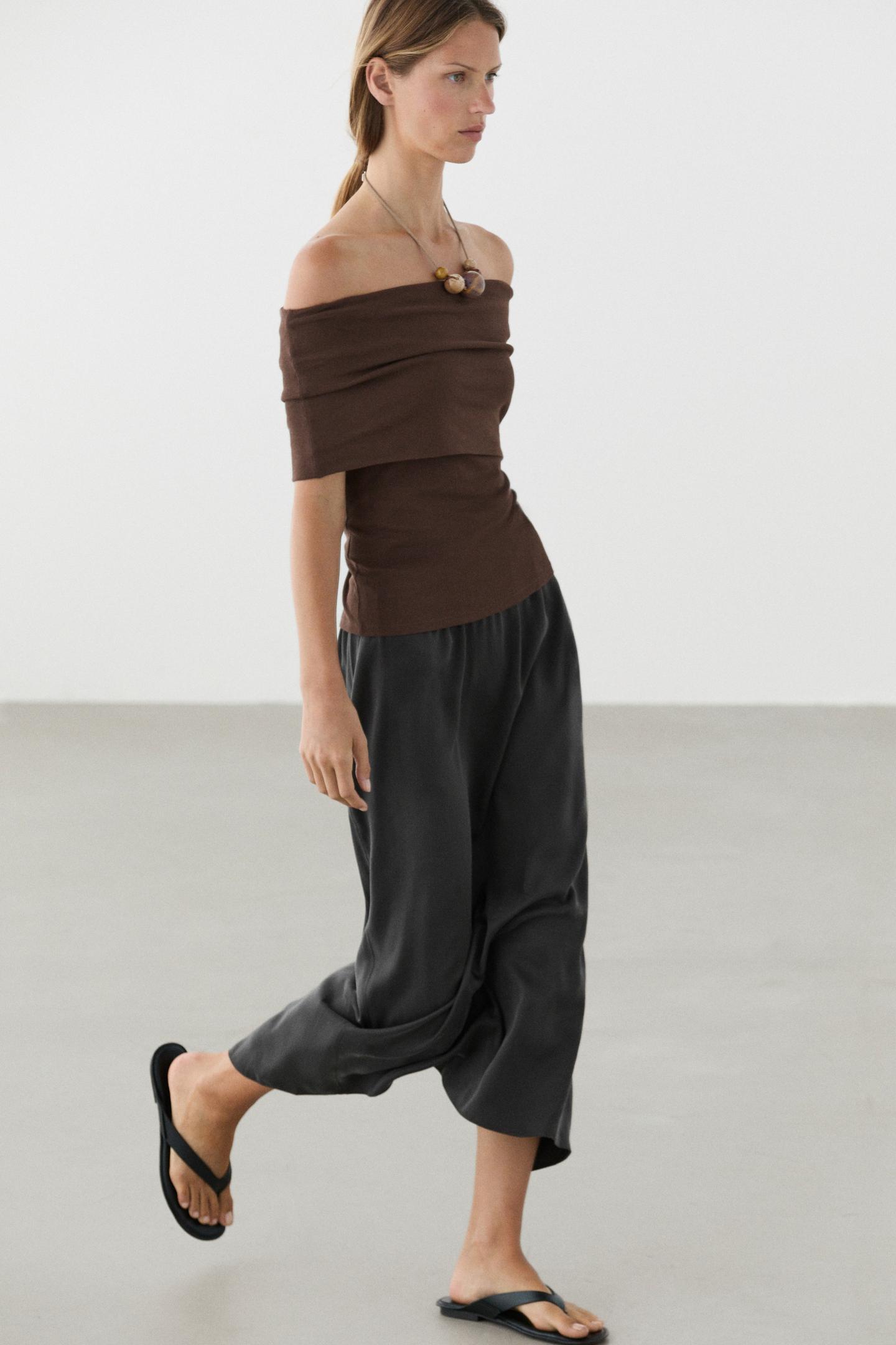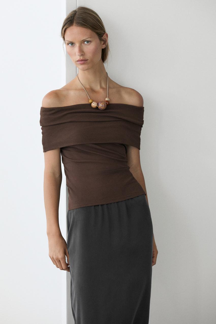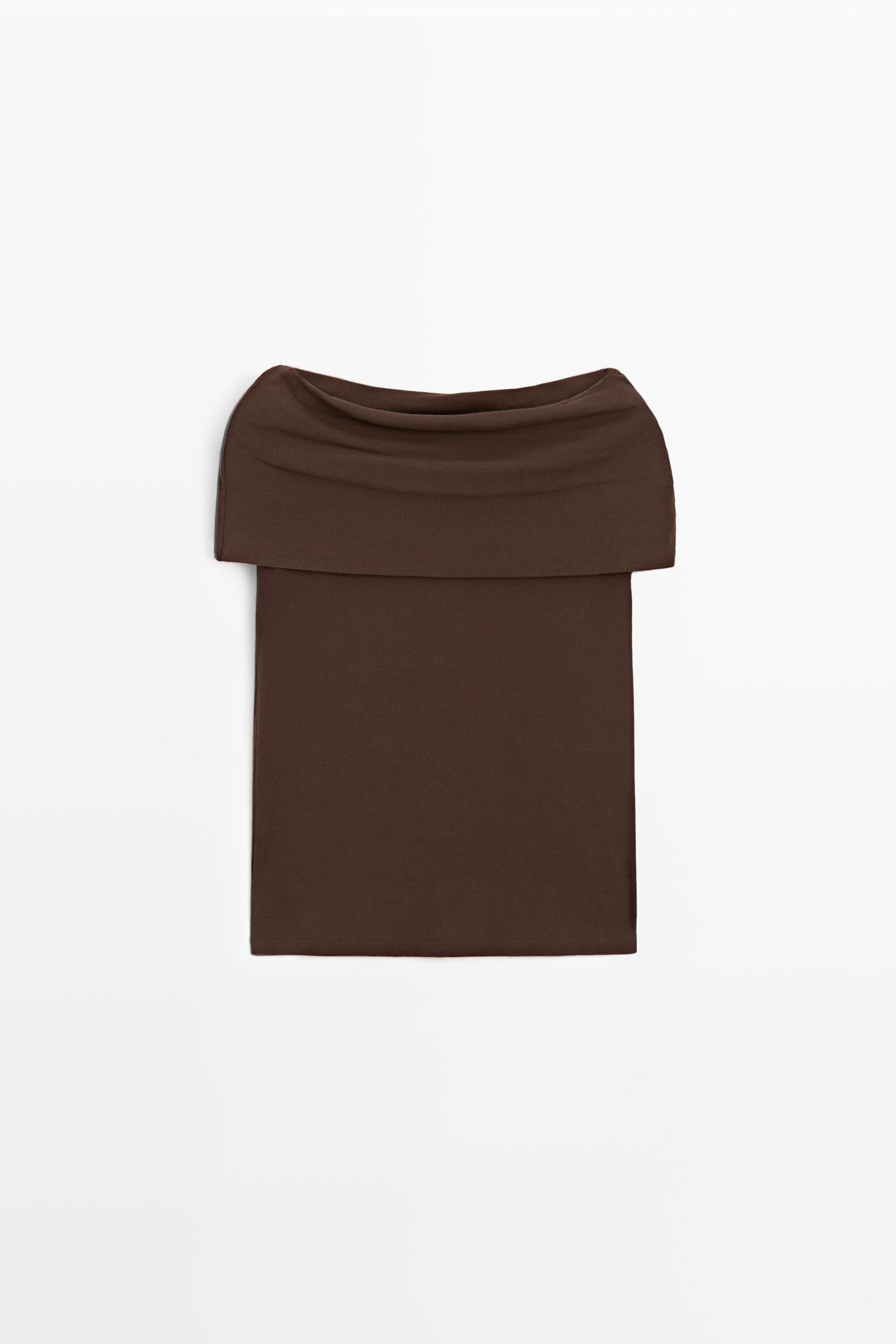 Massimo Dutti Хлопковый топ с открытыми плечами, коричневый