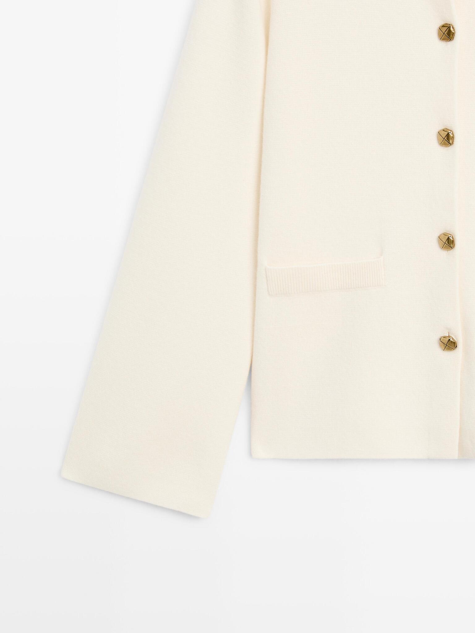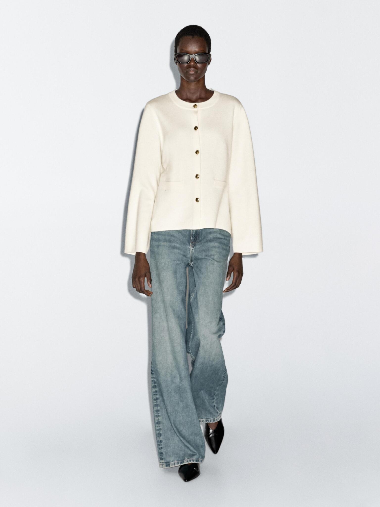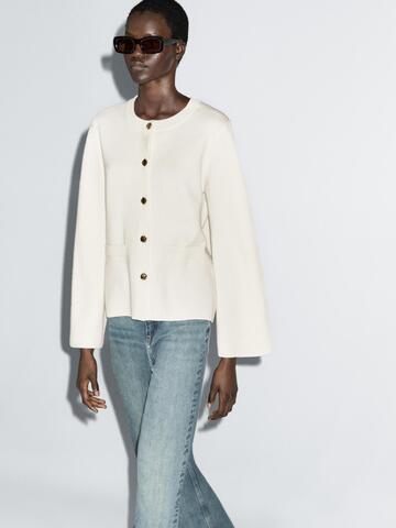 Massimo Dutti Кардиган из 100% шерсти, натуральный/кремовый