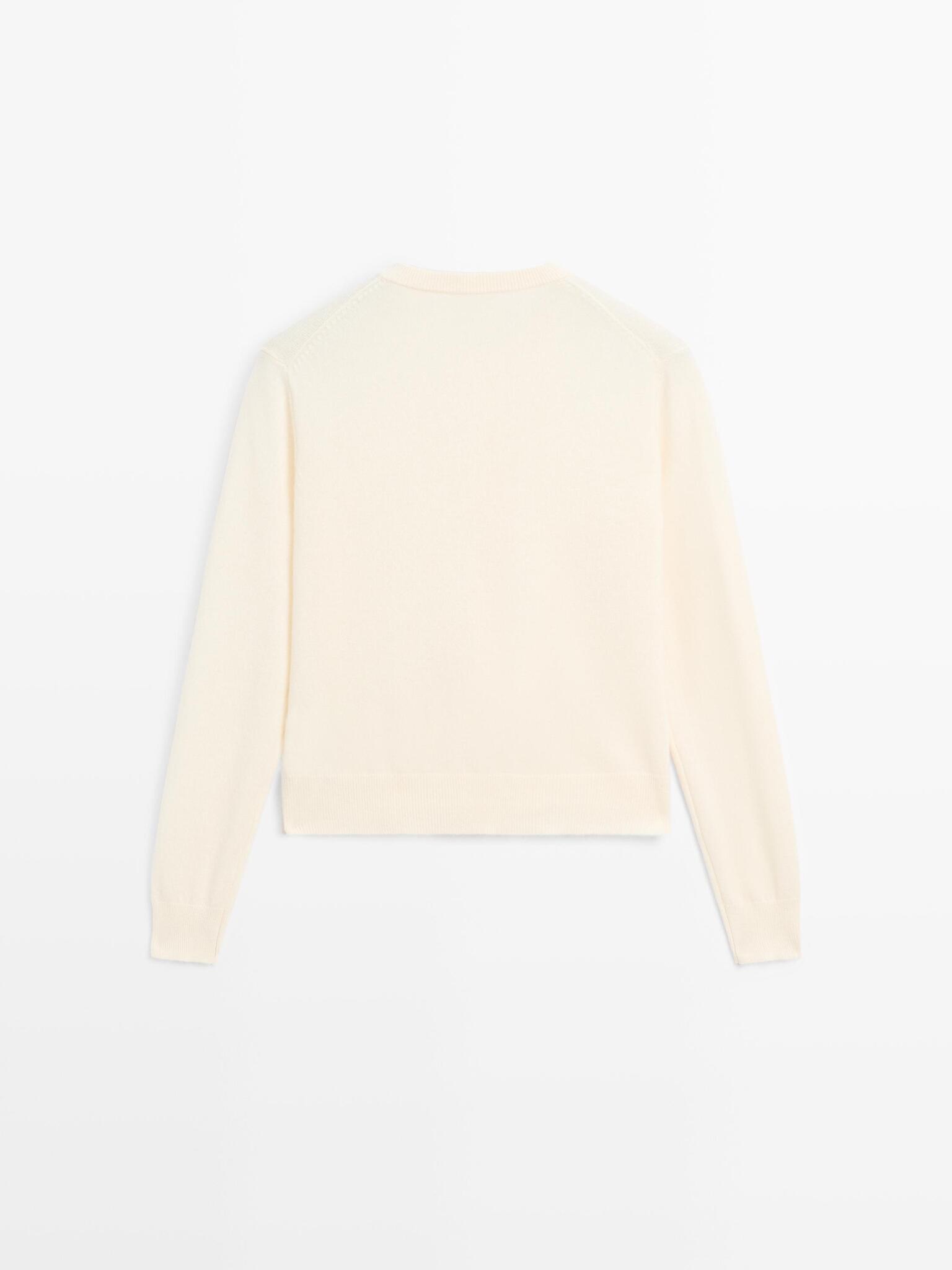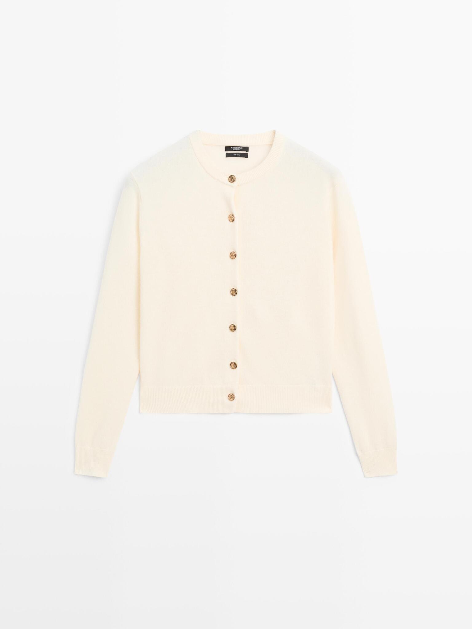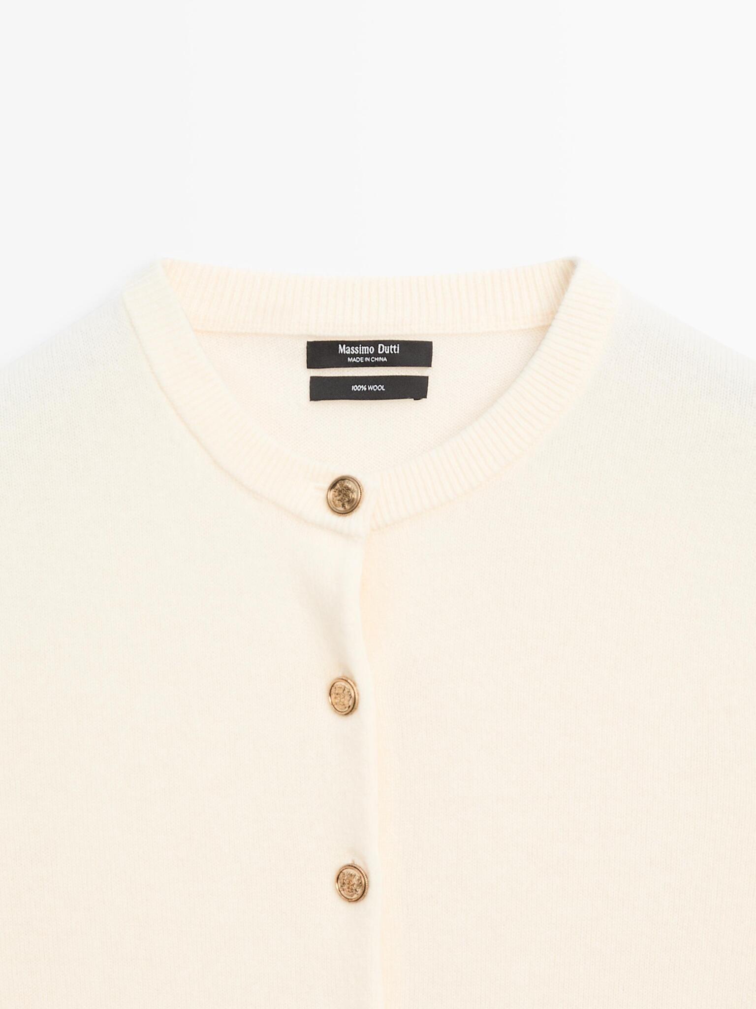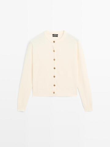 Massimo Dutti Кардиган из 100% шерсти с золотистыми пуговицами, натуральный/кремовый
