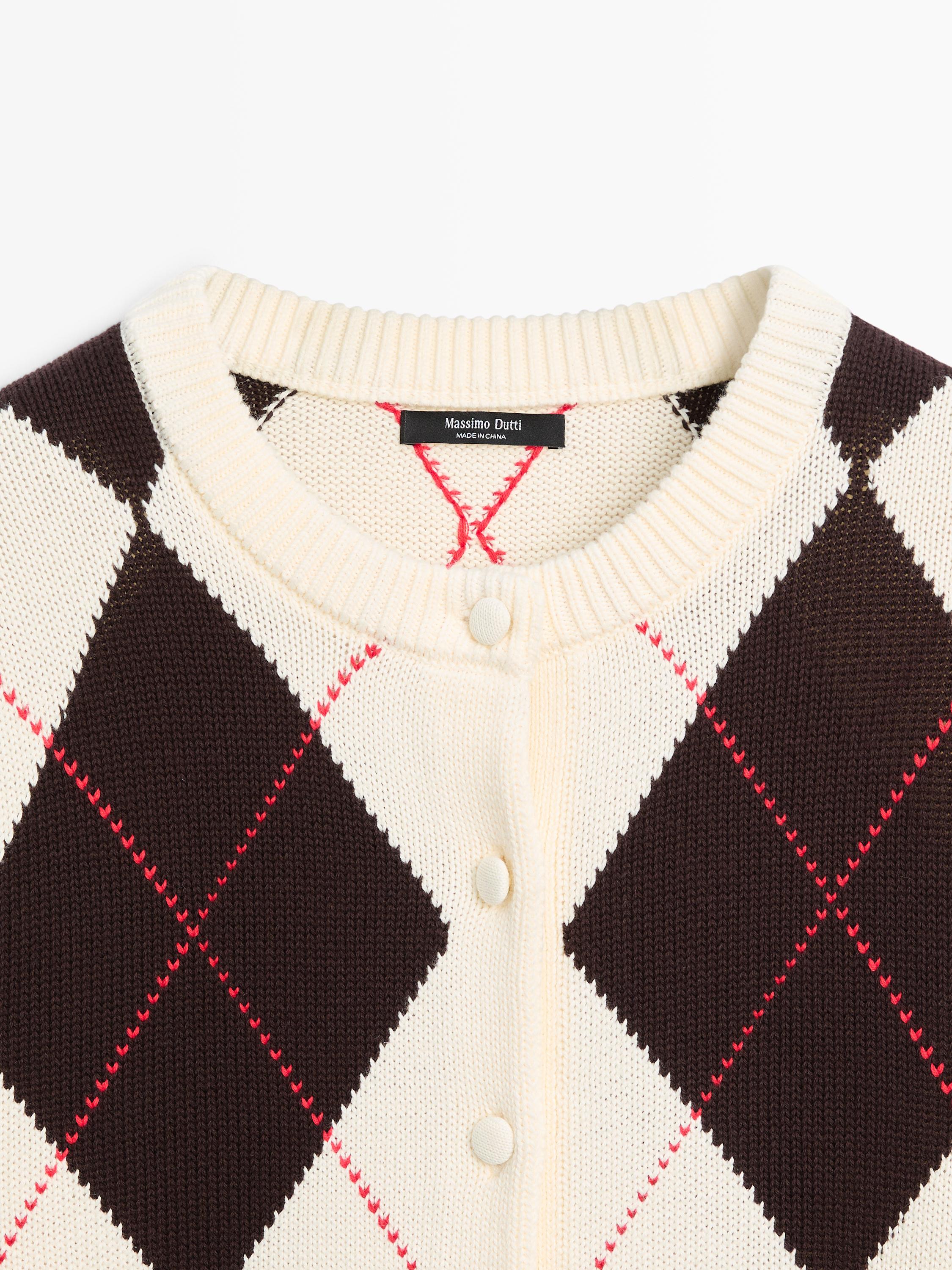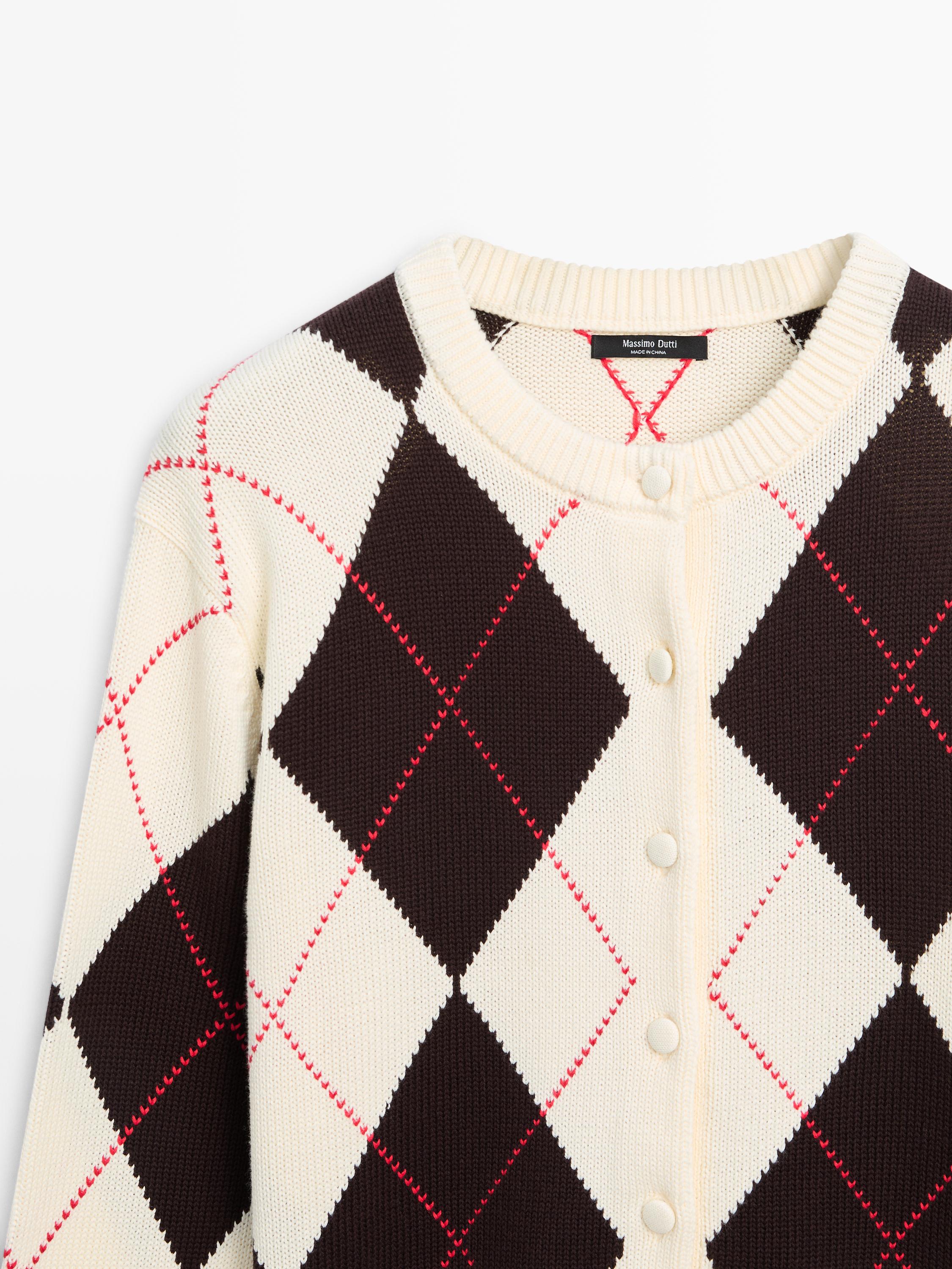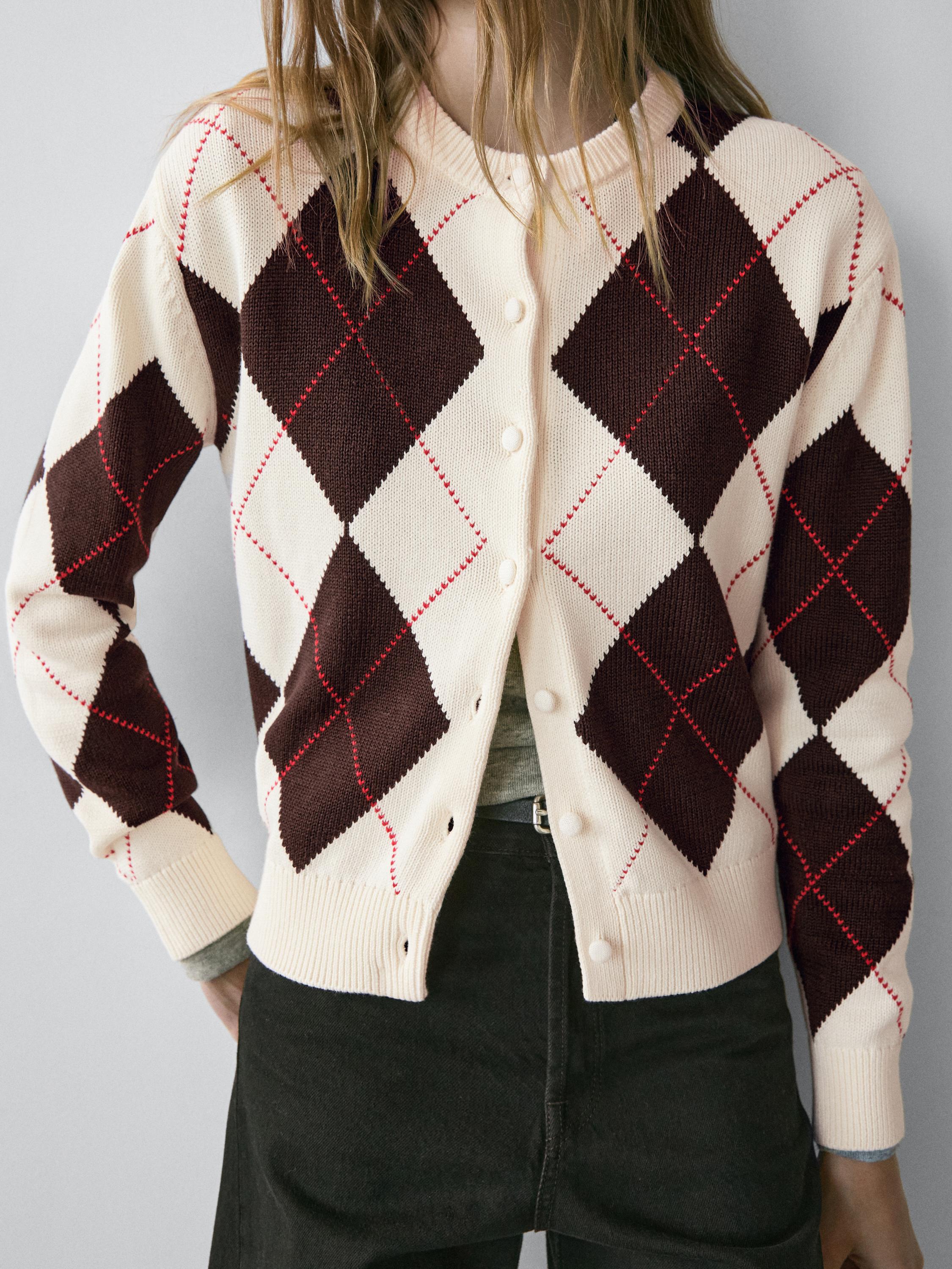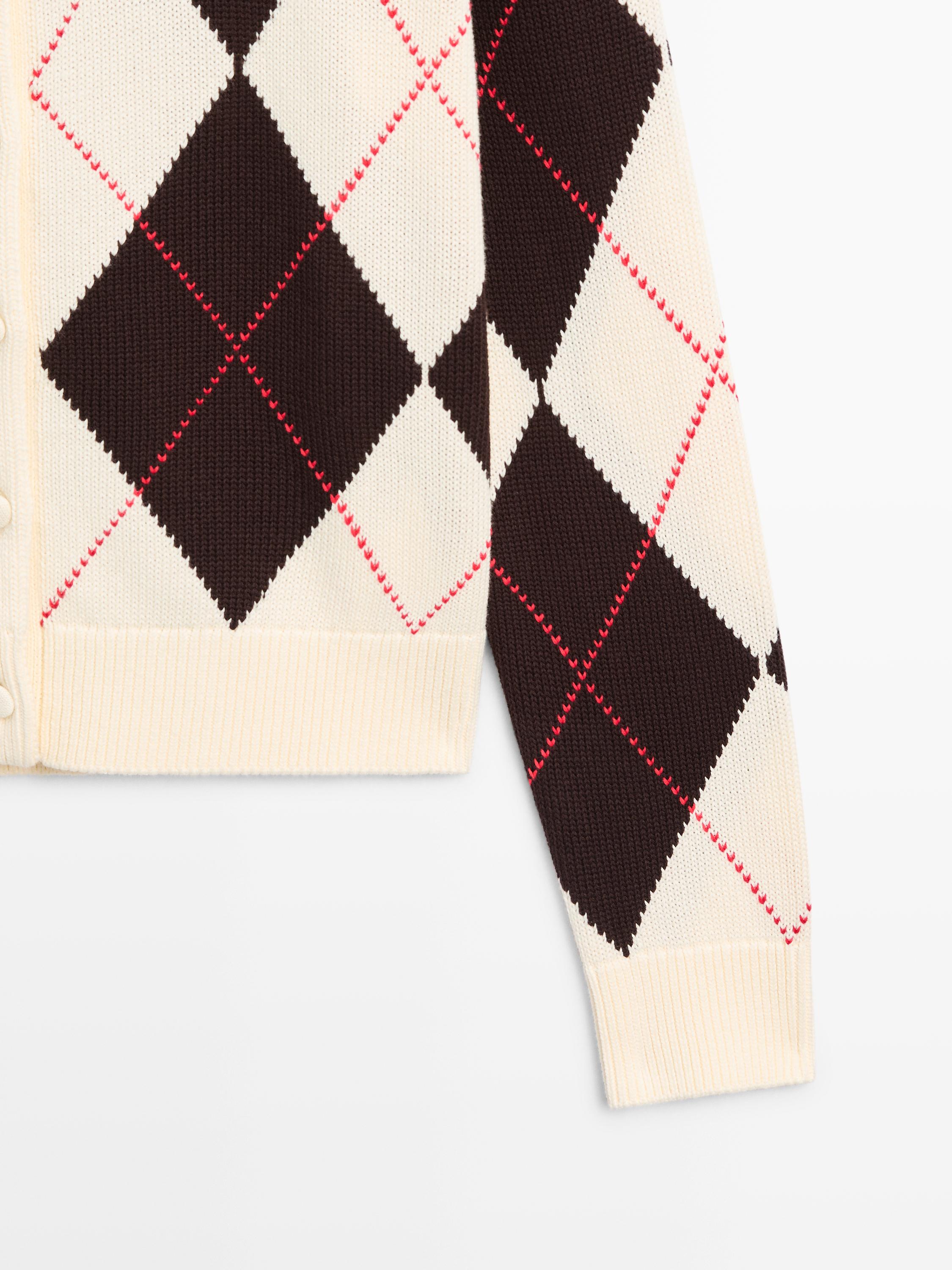 Massimo Dutti Кардиган из хлопка с узором «ромбы», натуральный/кремовый