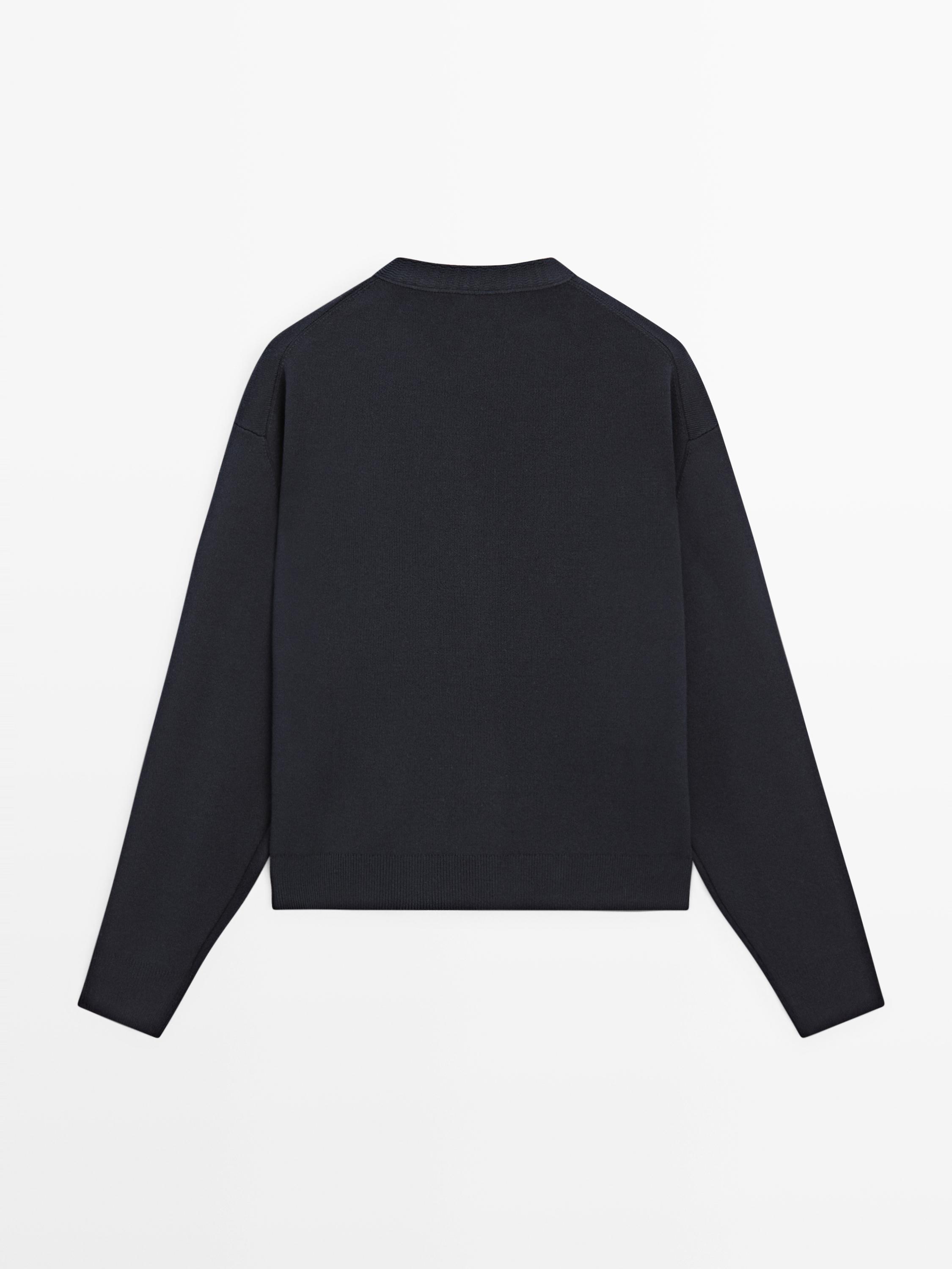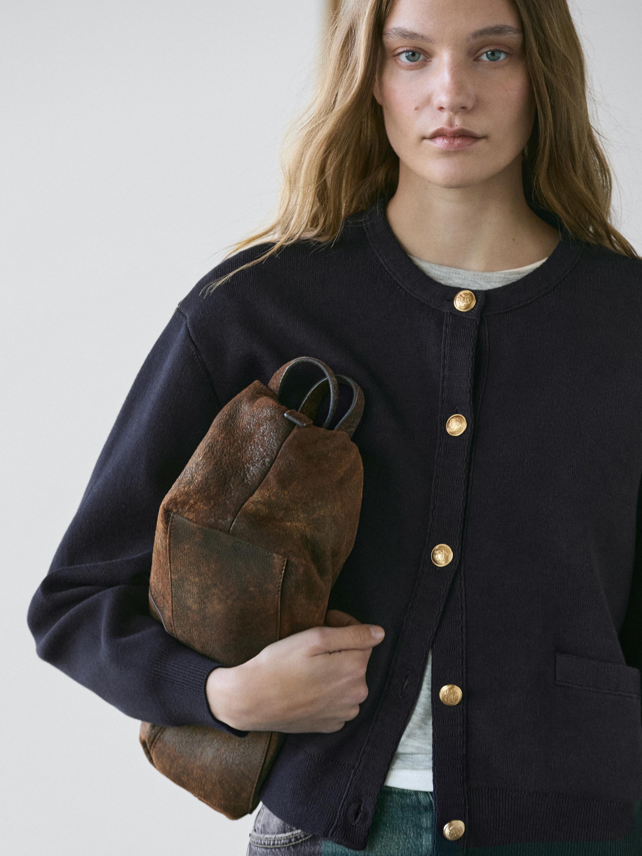 Massimo Dutti Кардиган из хлопкового трикотажа с золотистыми пуговицами, темно-синий