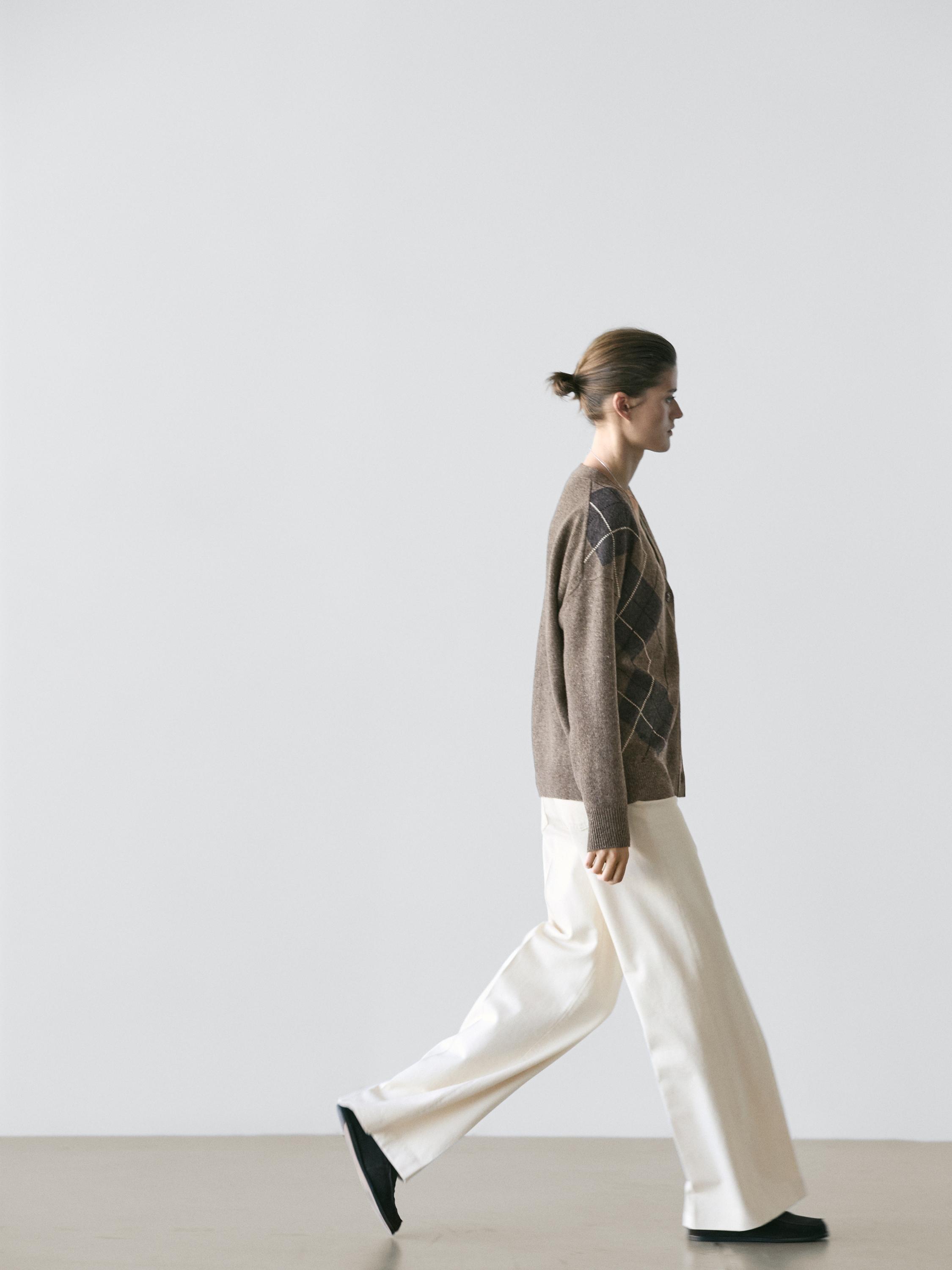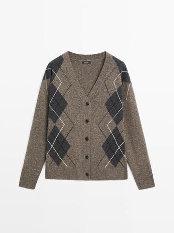 Massimo Dutti Кардиган из шерстяного трикотажа с узором «ромбы», кротово-коричневый