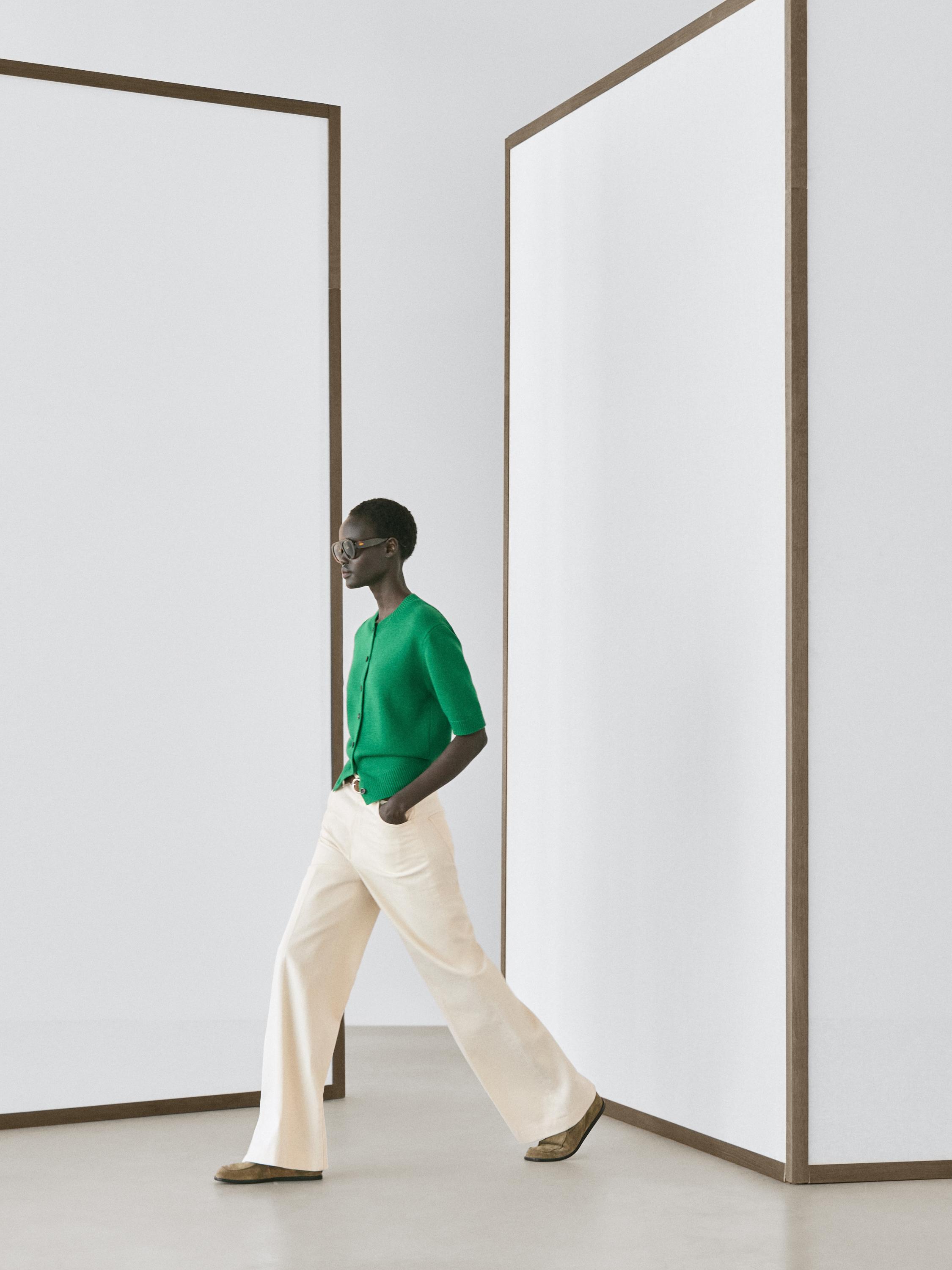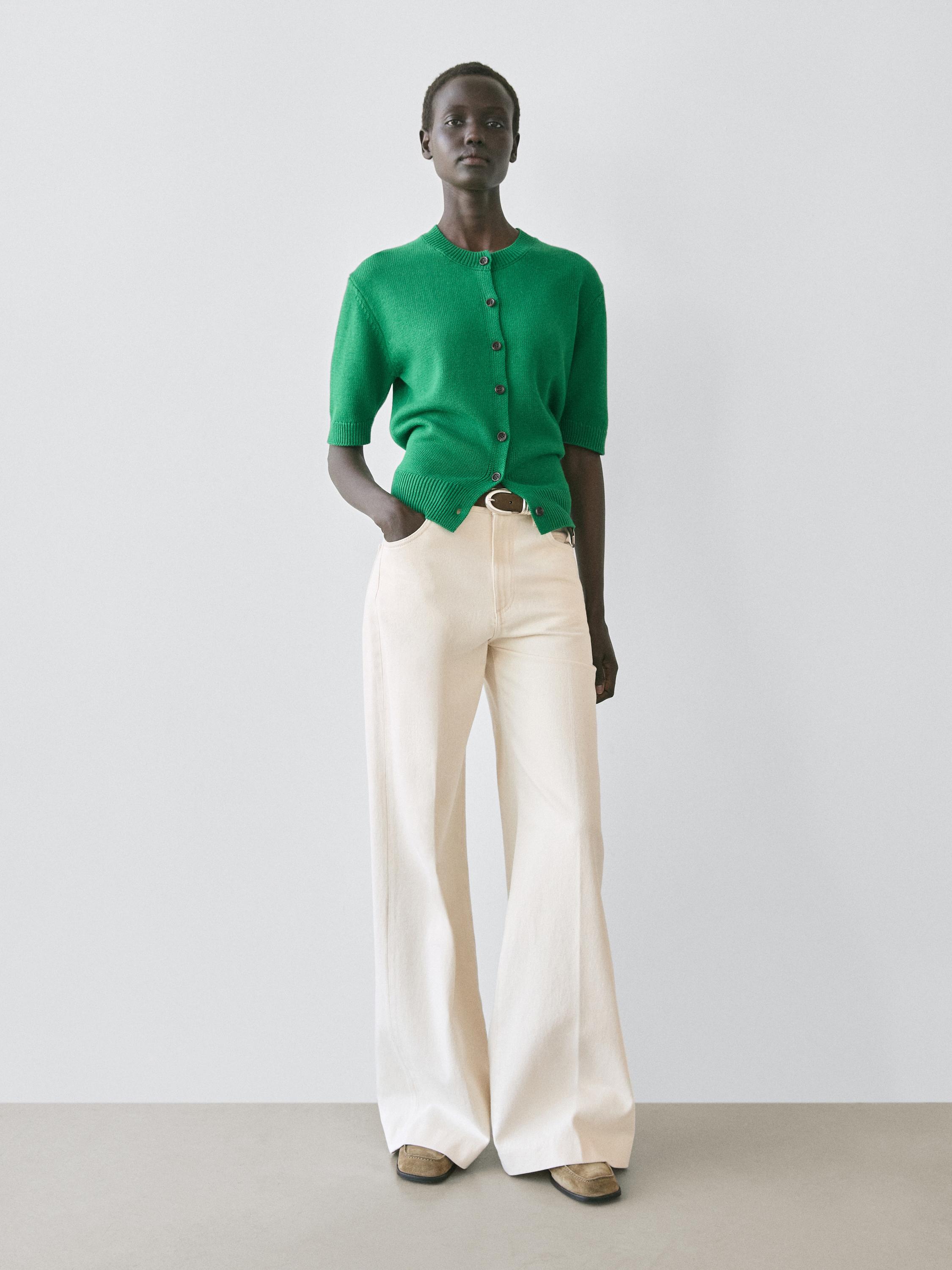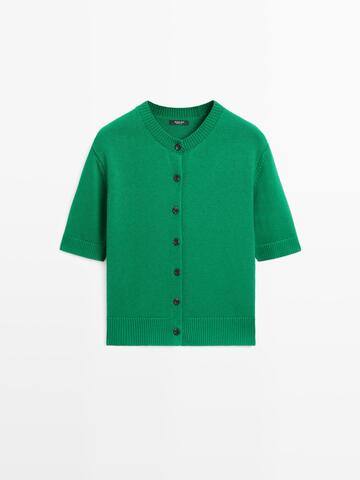 Massimo Dutti Кардиган из смесового хлопка с короткими рукавами, зеленый