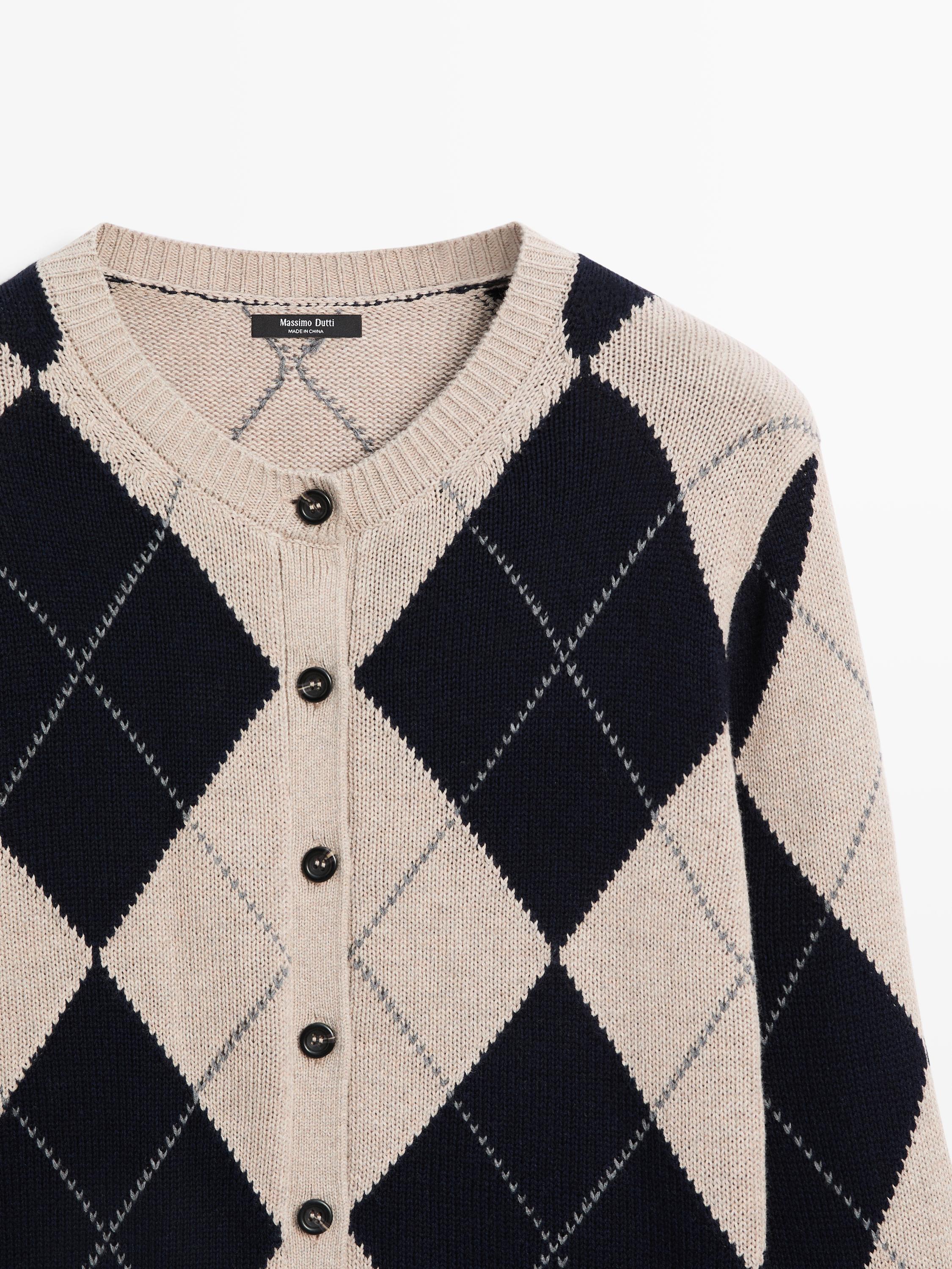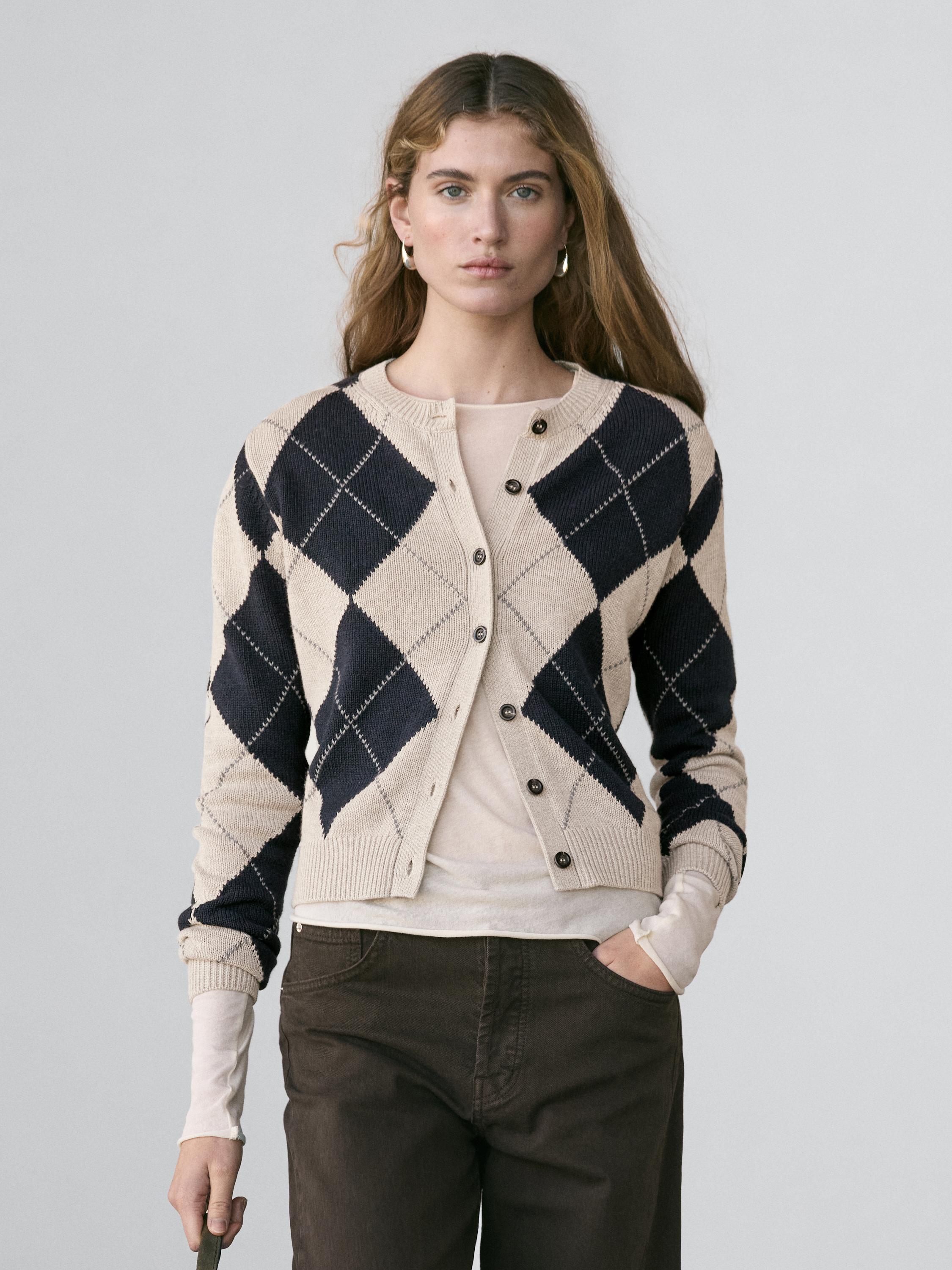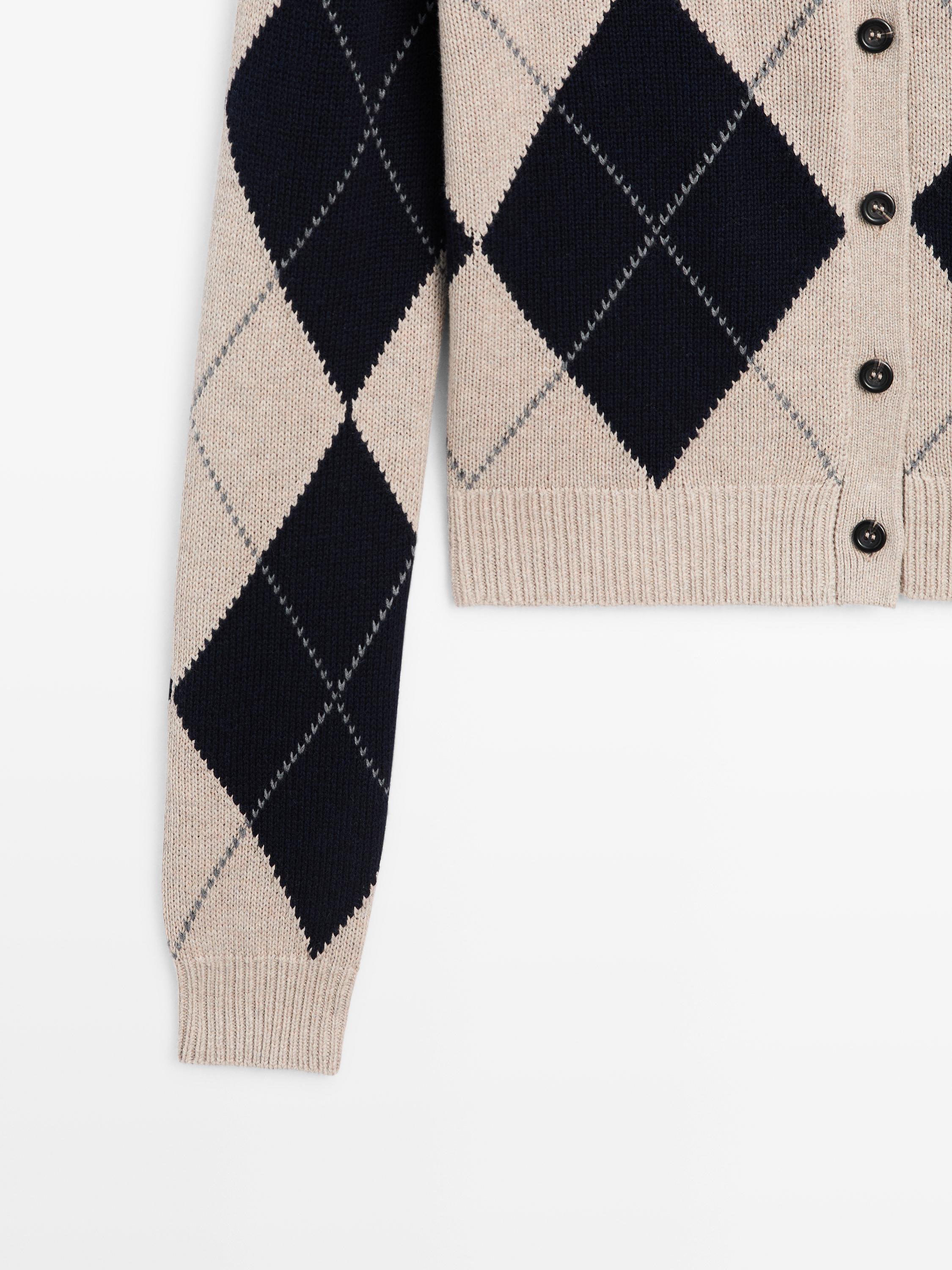 Massimo Dutti Кардиган из смесового хлопка с узором «ромбы», темно-синий