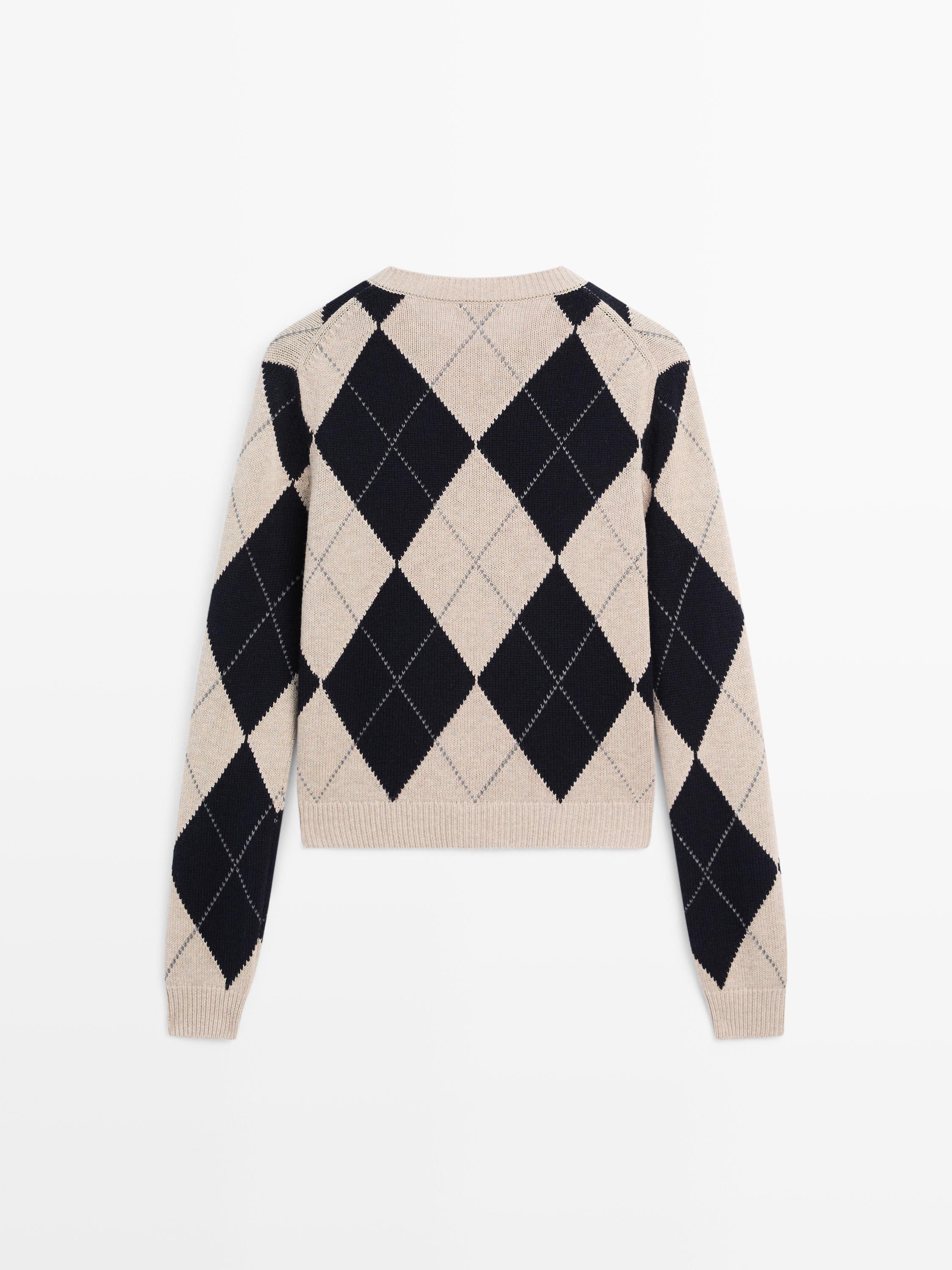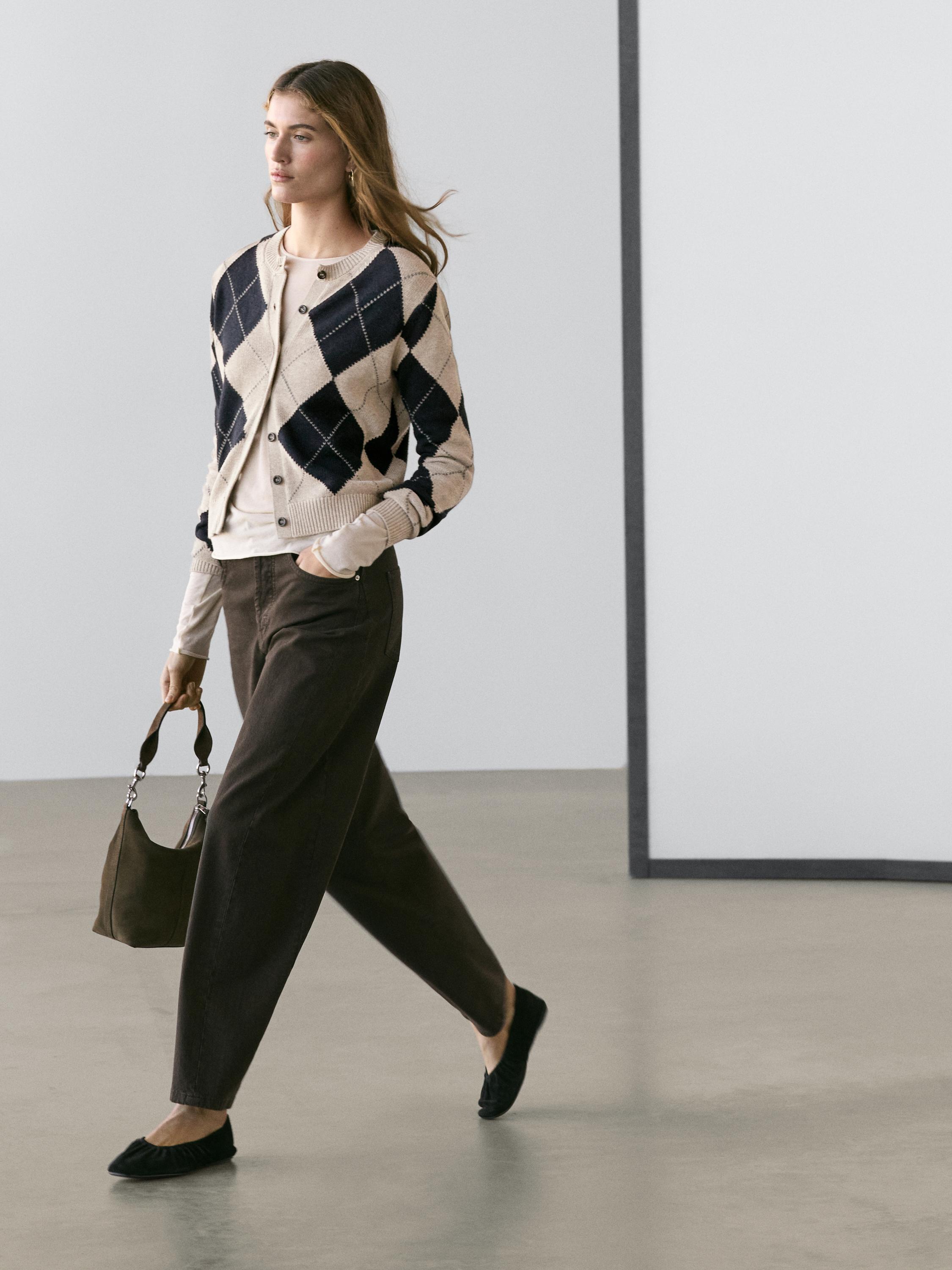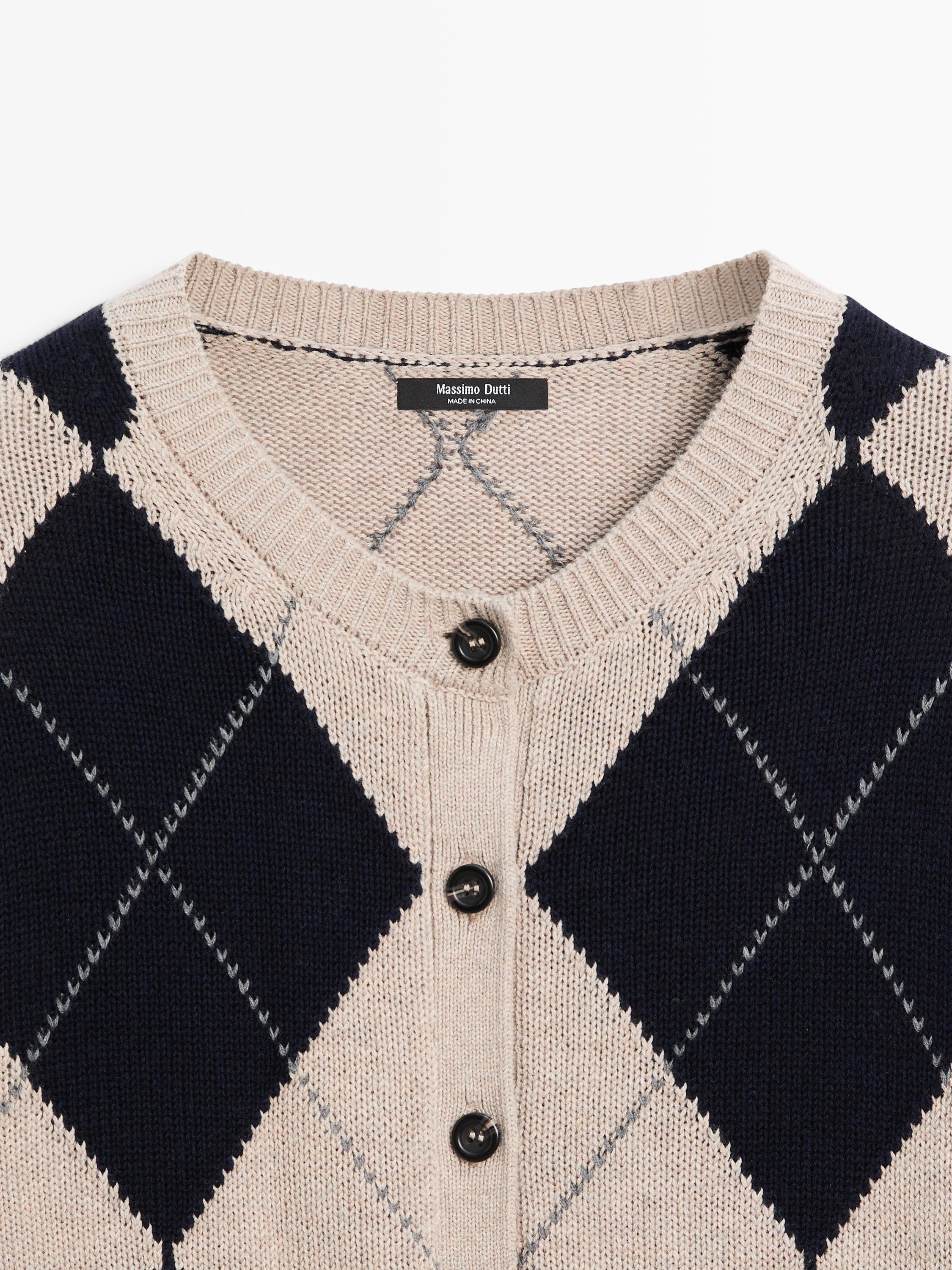 Massimo Dutti Кардиган из смесового хлопка с узором «ромбы», темно-синий