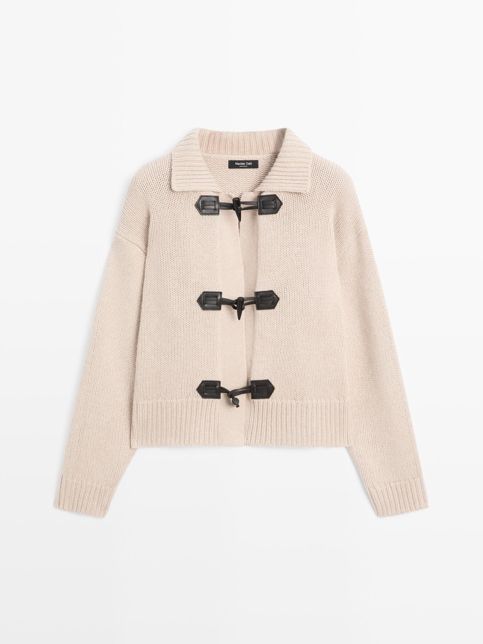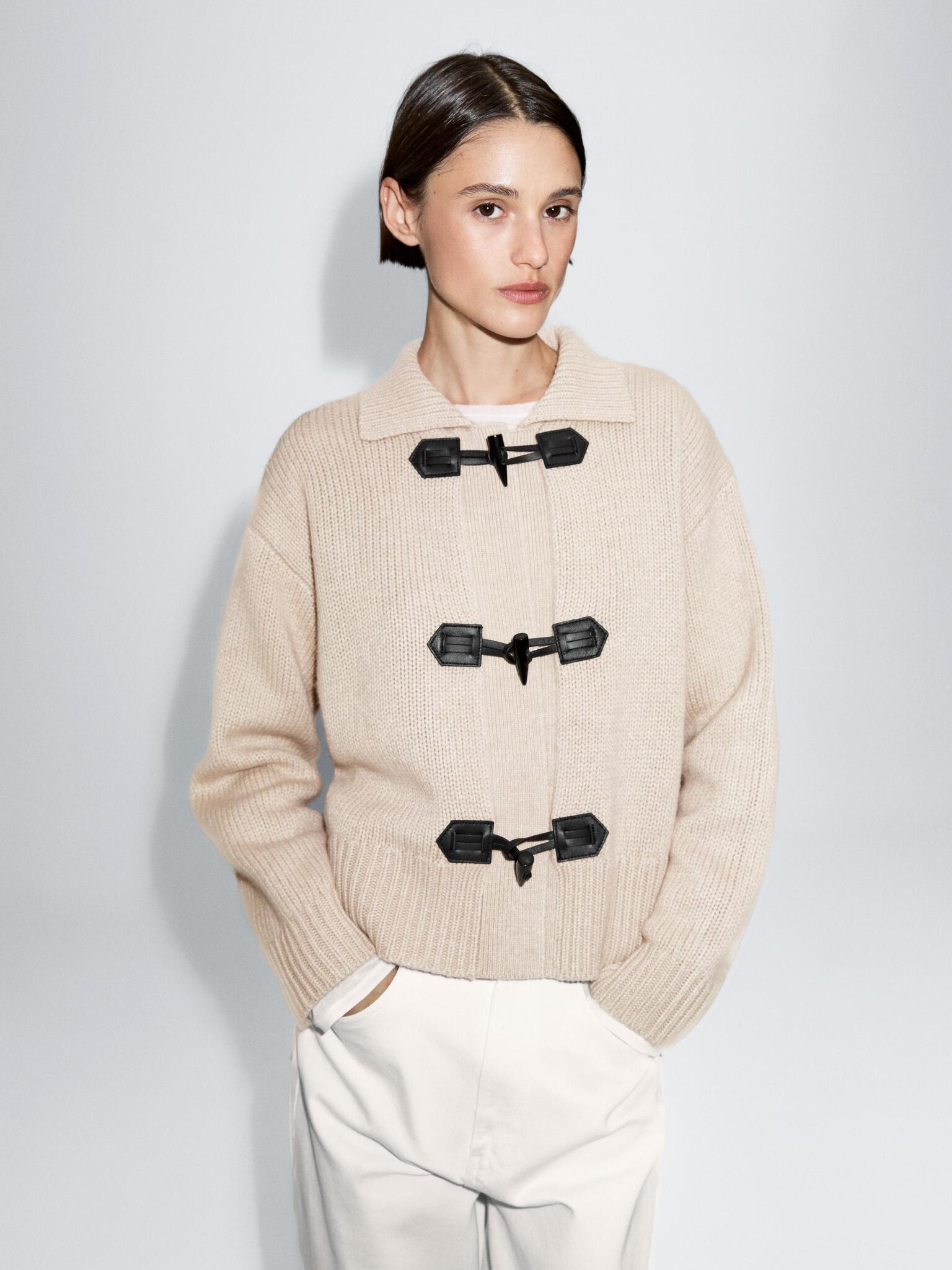 Massimo Dutti Кардиган из смесовой шерсти с пуговицами в форме рога, норка
