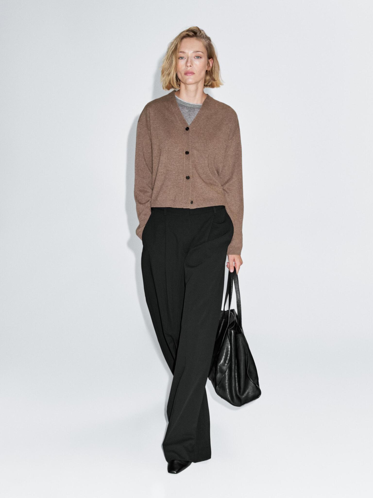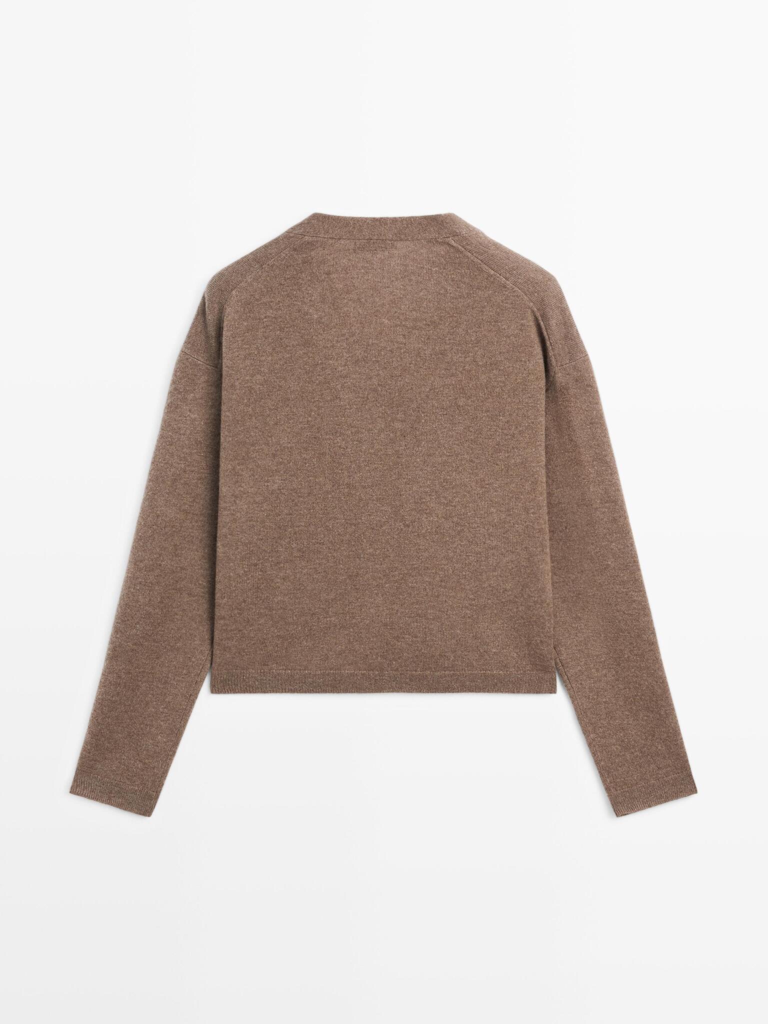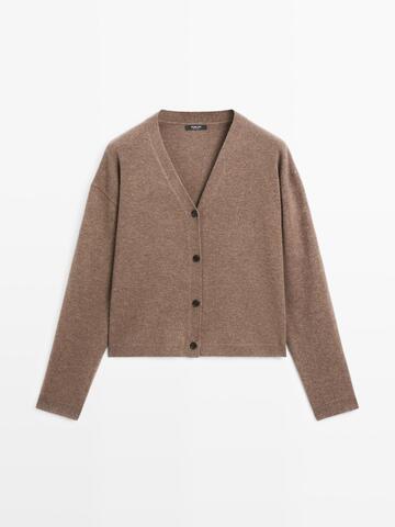 Massimo Dutti Кардиган из смесовой шерсти с V-образным вырезом, карамельный