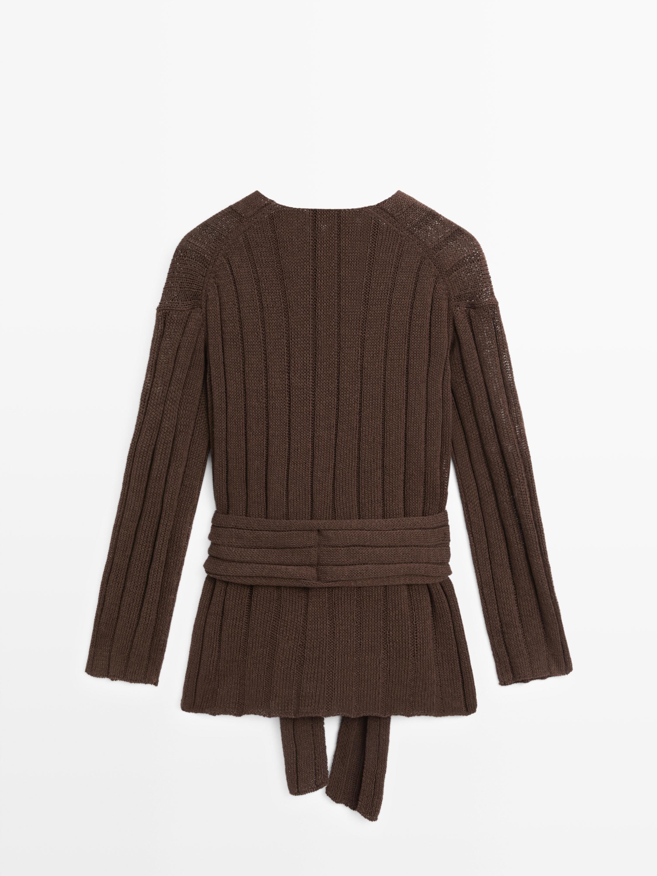 Massimo Dutti Кардиган с деталью на поясе, шоколадный