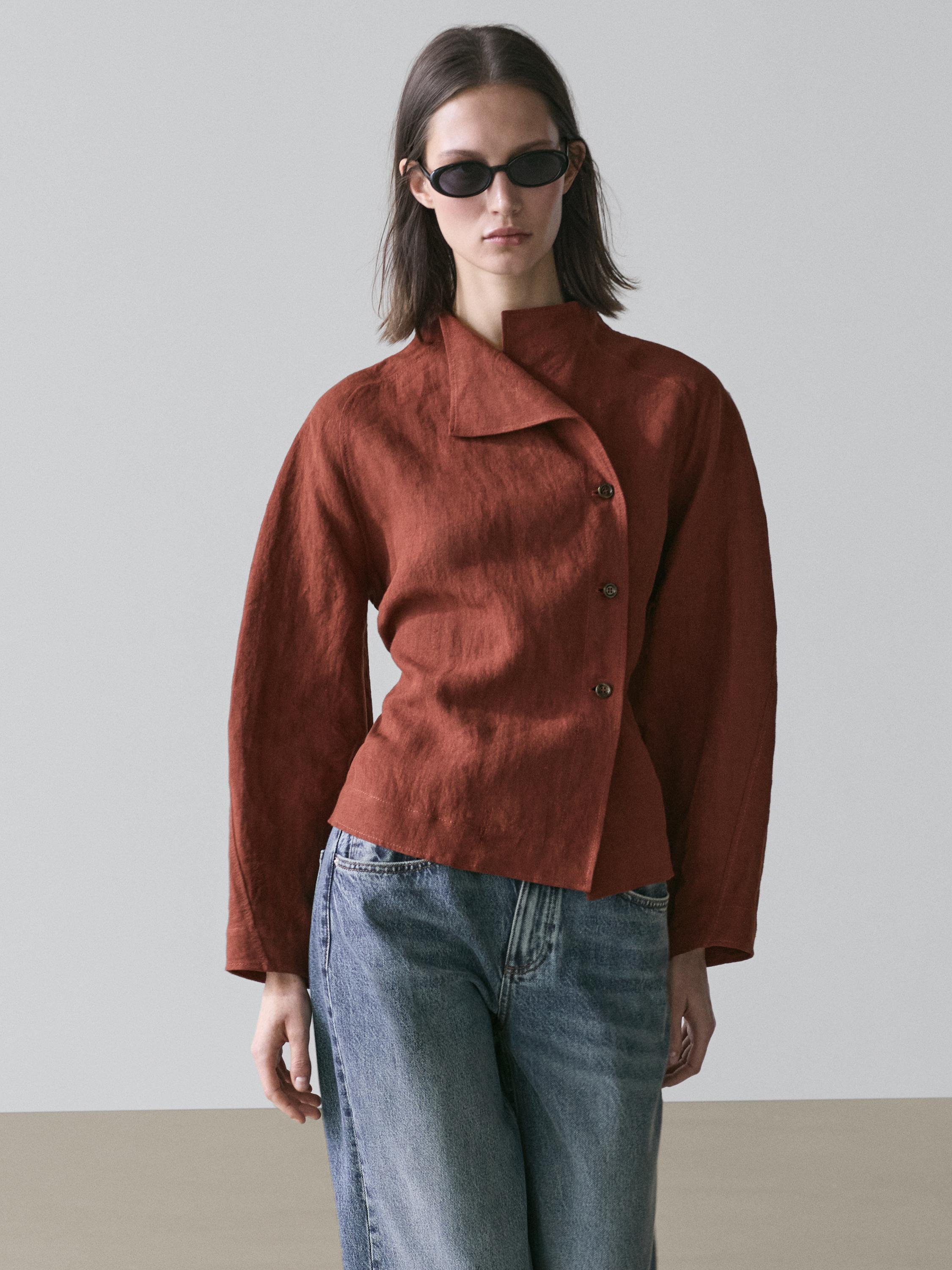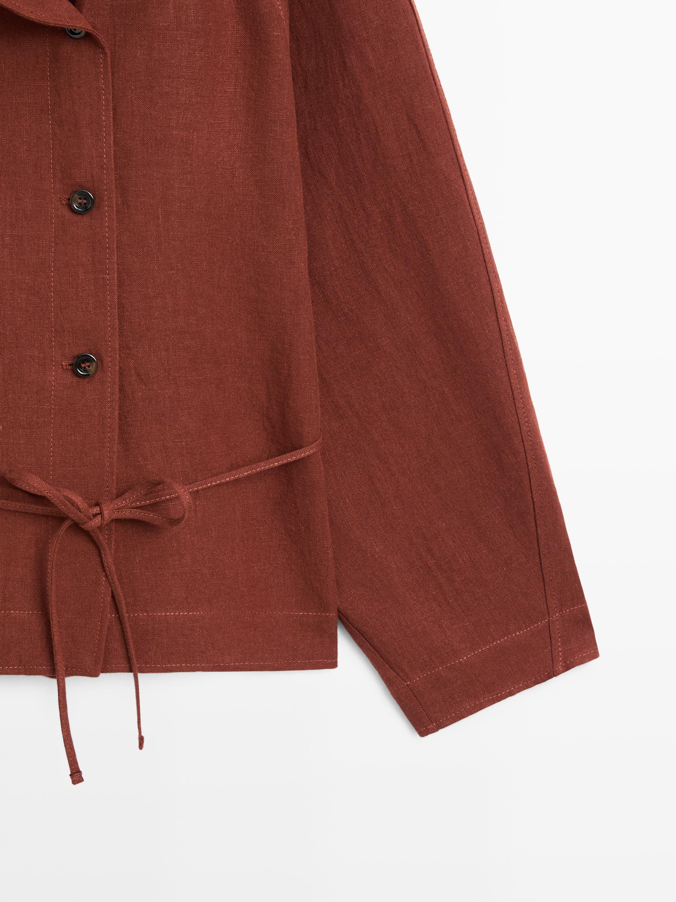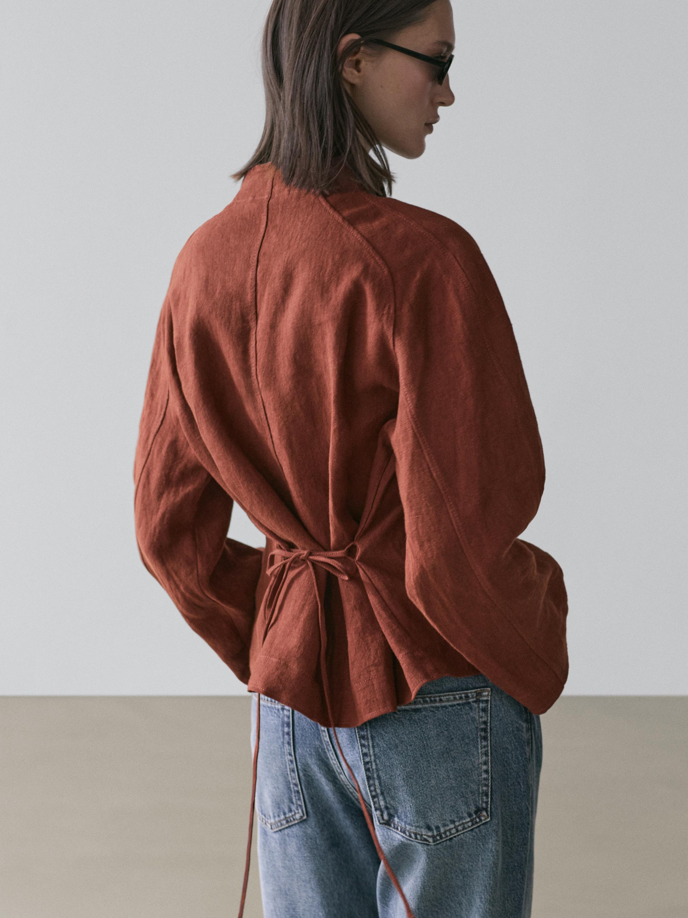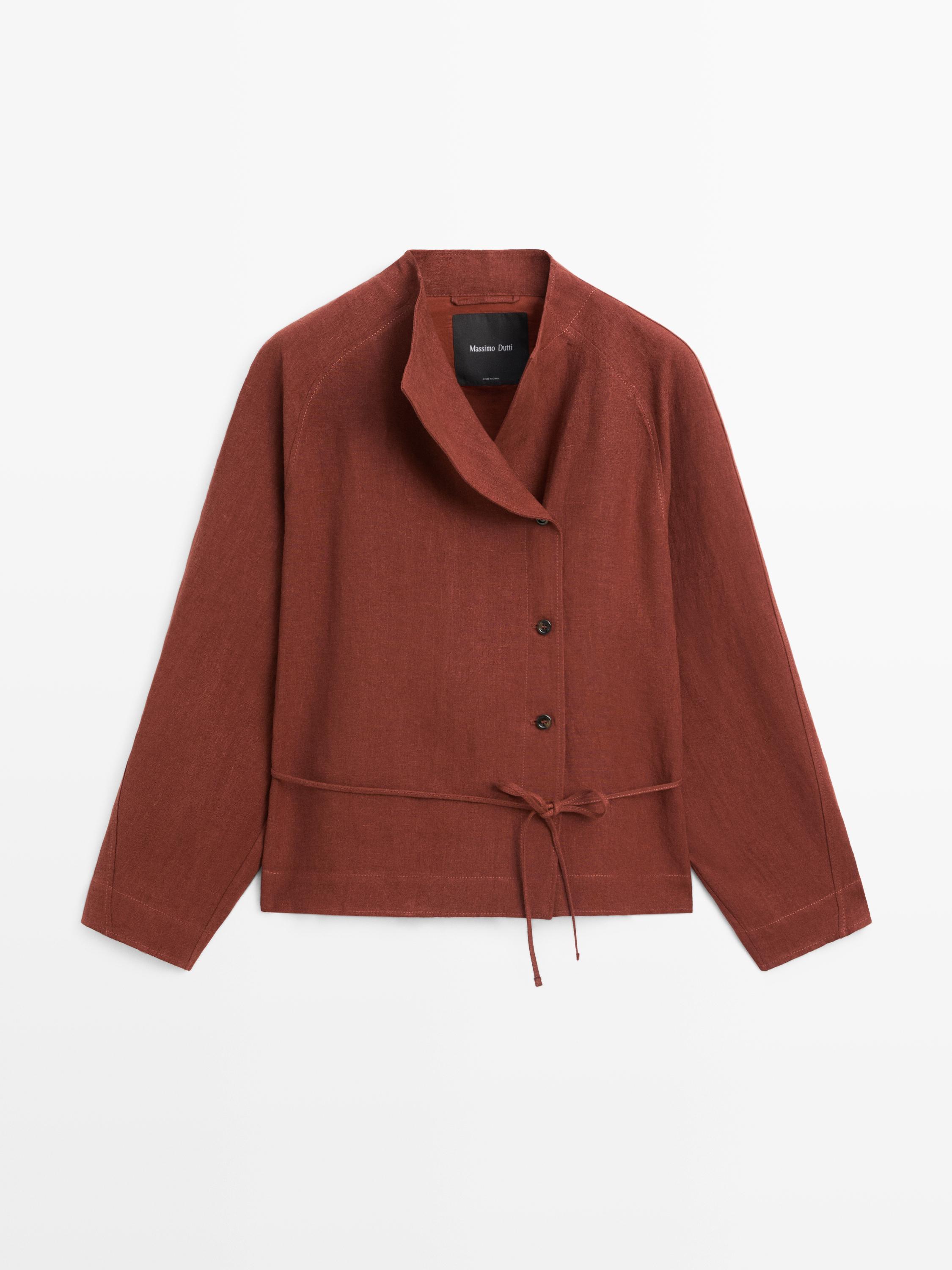 Massimo Dutti Кимоно из 100% льна с завязками и пуговицами, черепичный