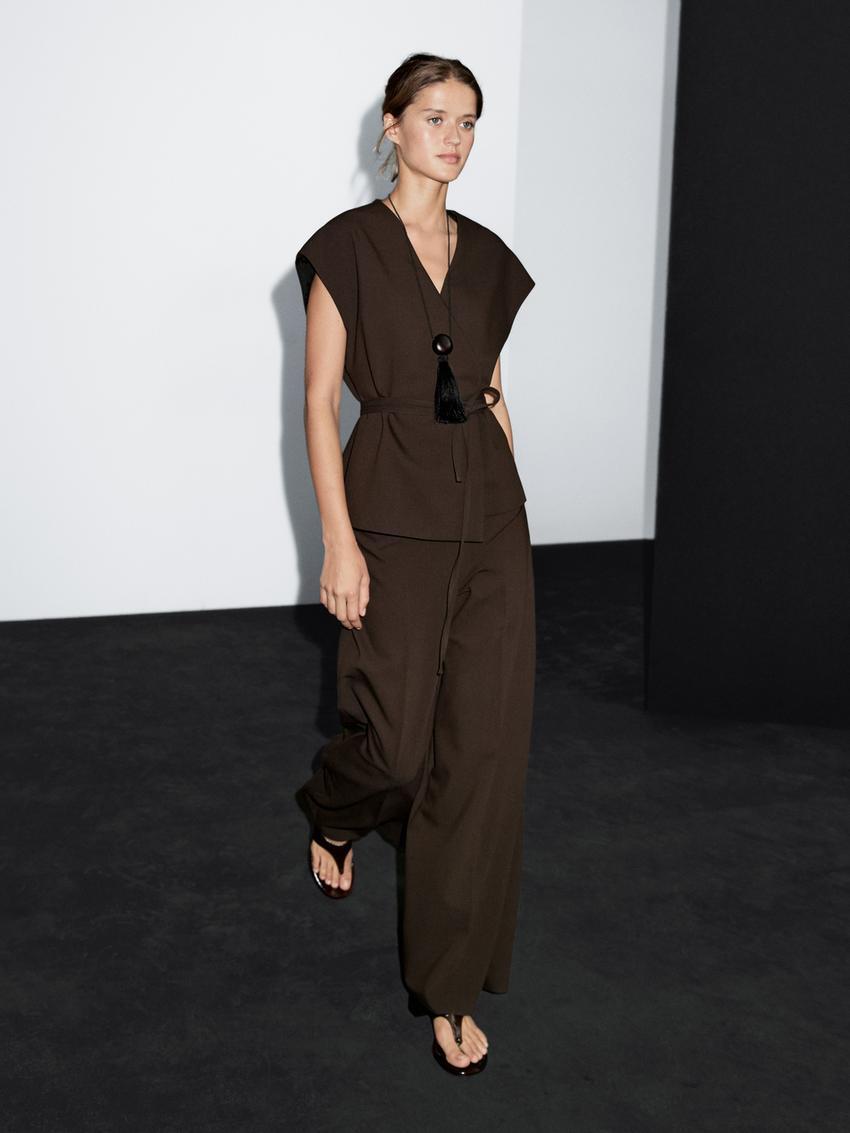 Massimo Dutti Кимоно-кроссовер с завязками, шоколадный