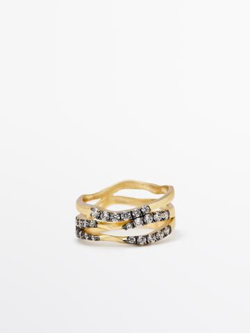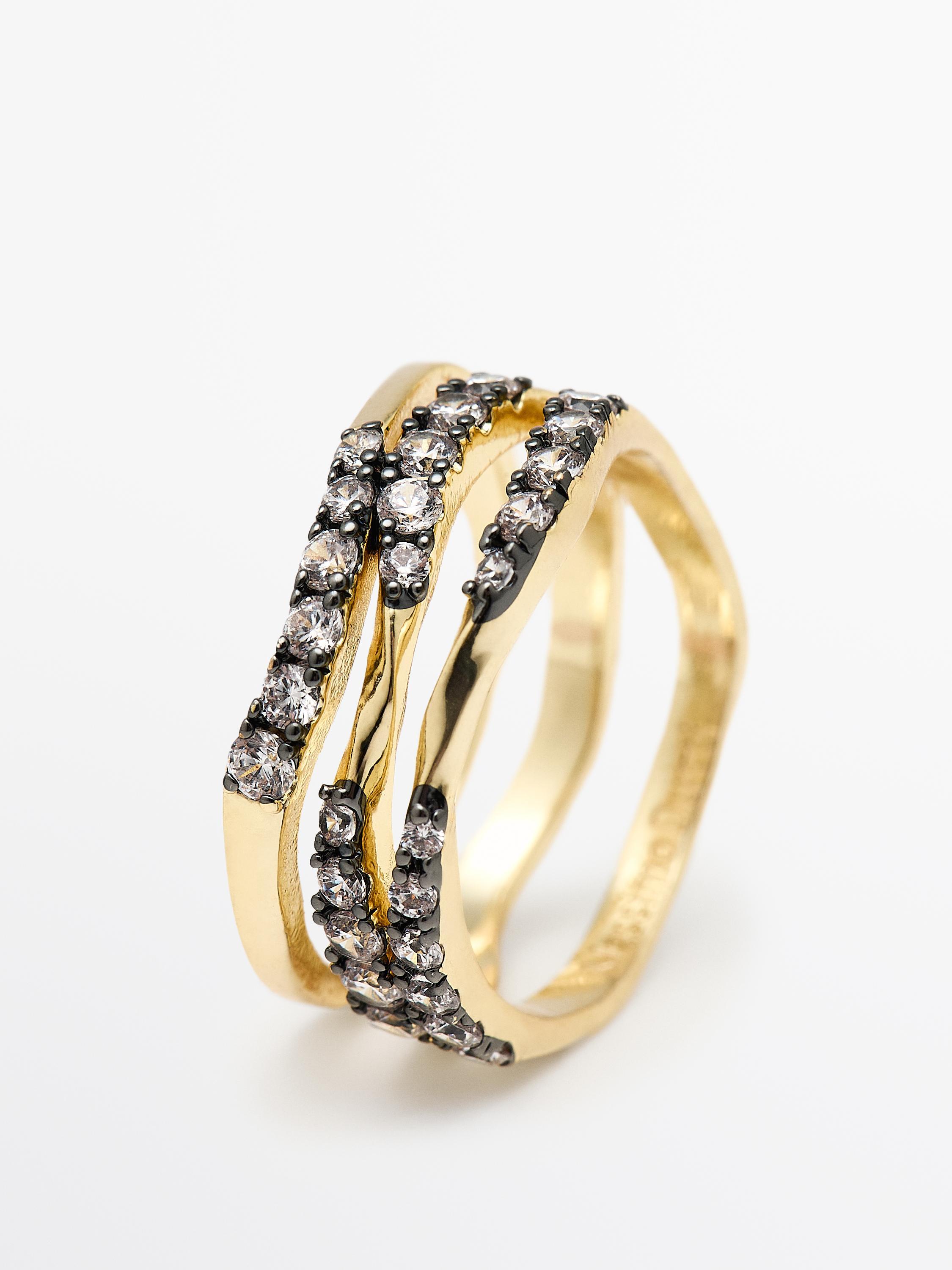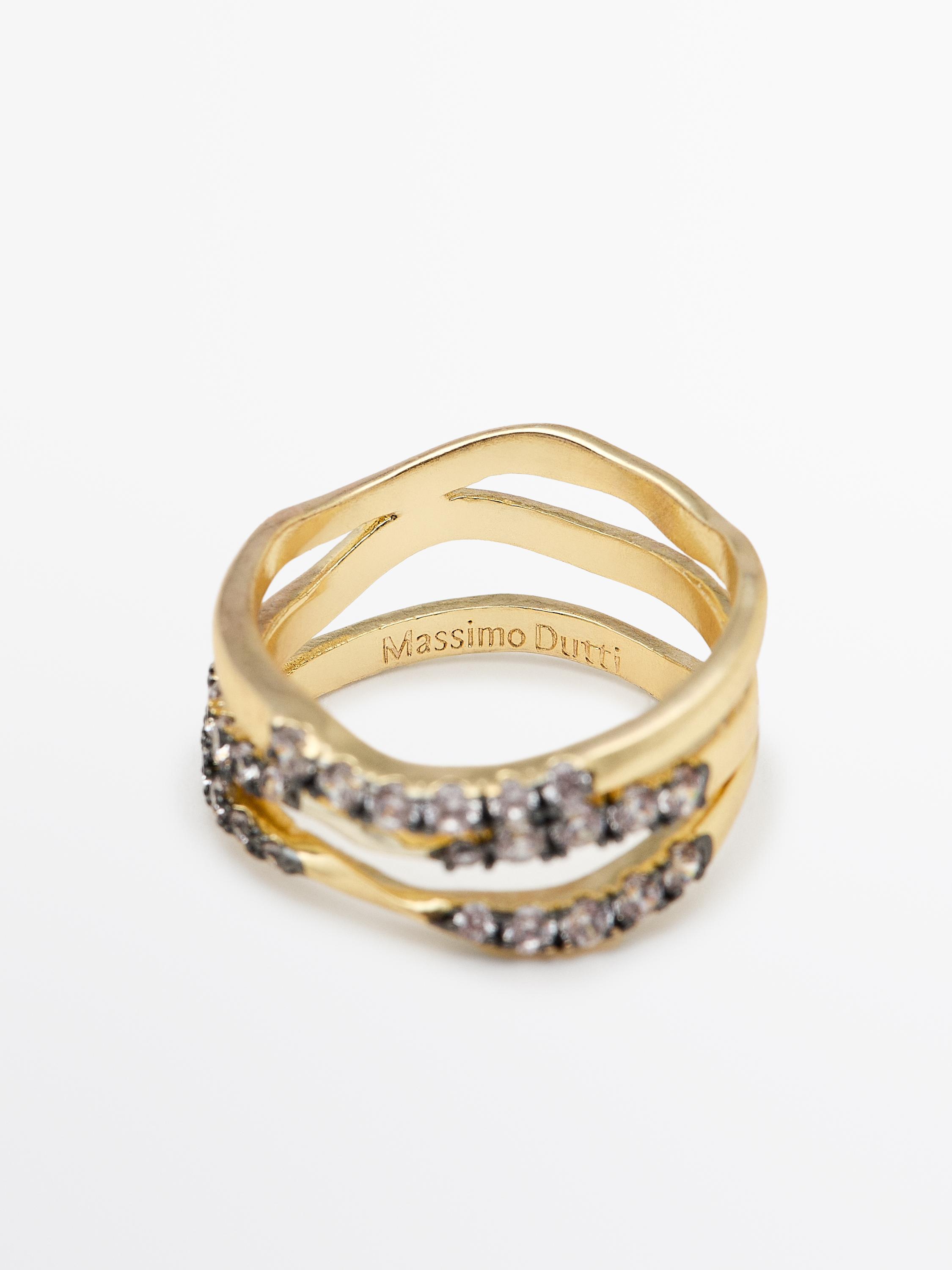Massimo Dutti Кольцо со стразами, золотистый