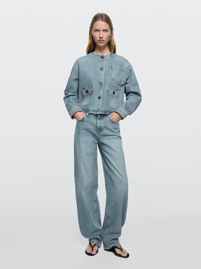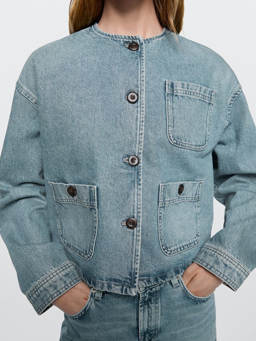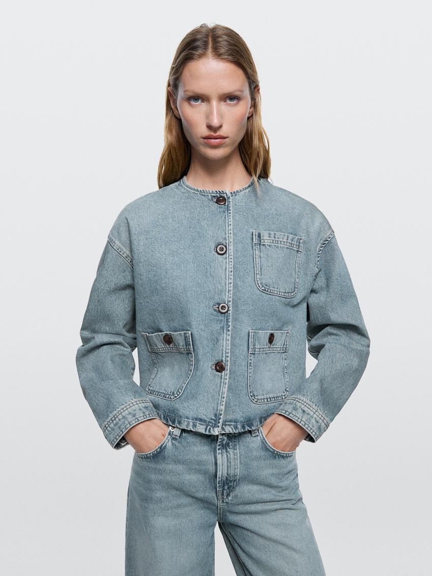 Massimo Dutti Короткая джинсовая куртка, голубой