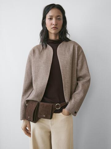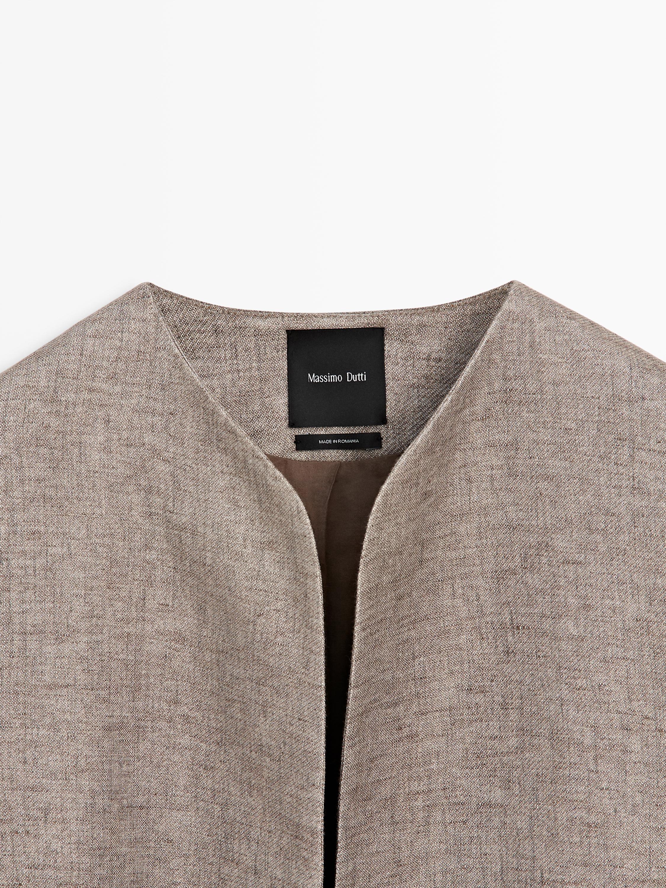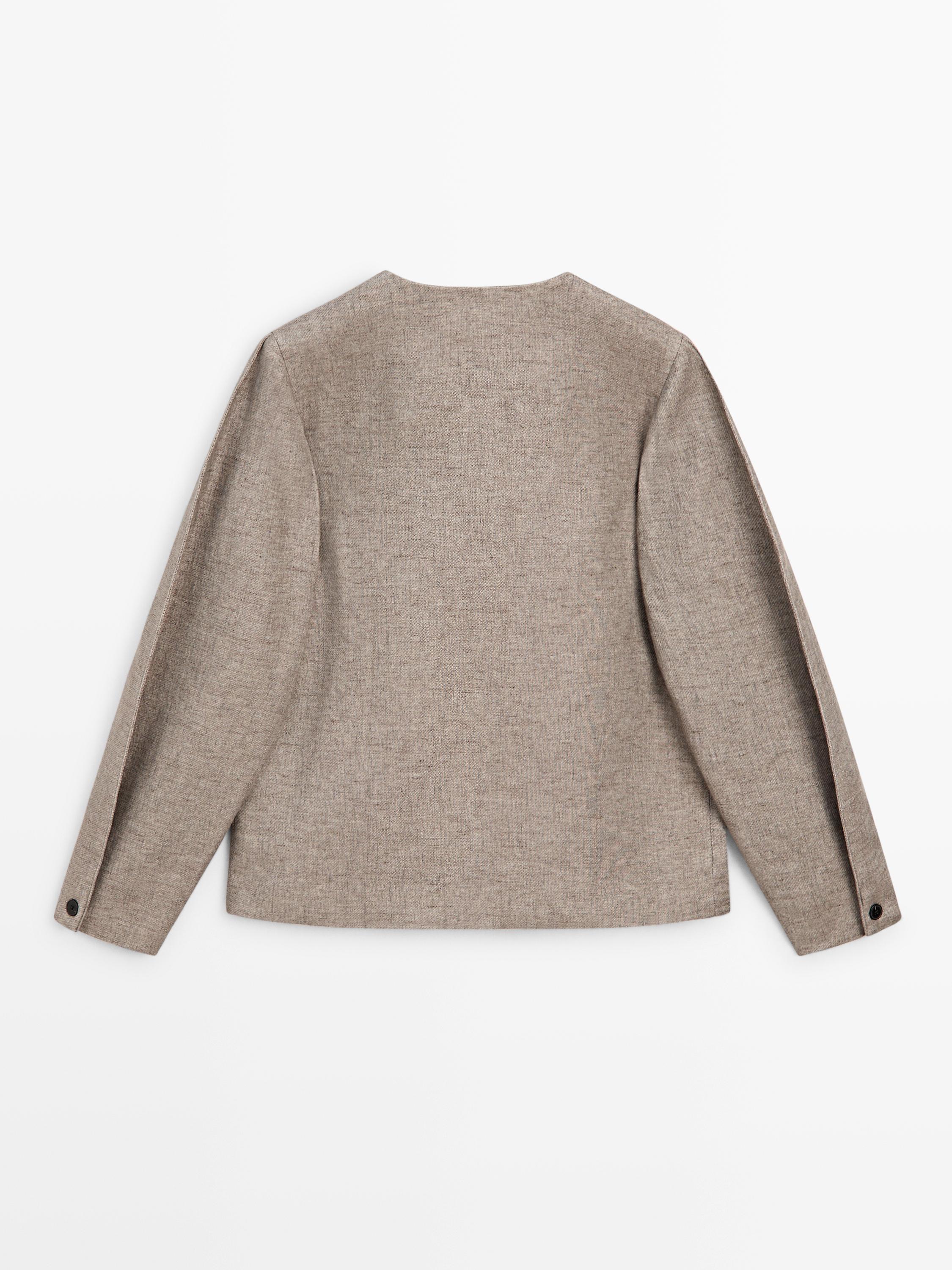 Massimo Dutti Короткая куртка из смесового льна, кротово-коричневый